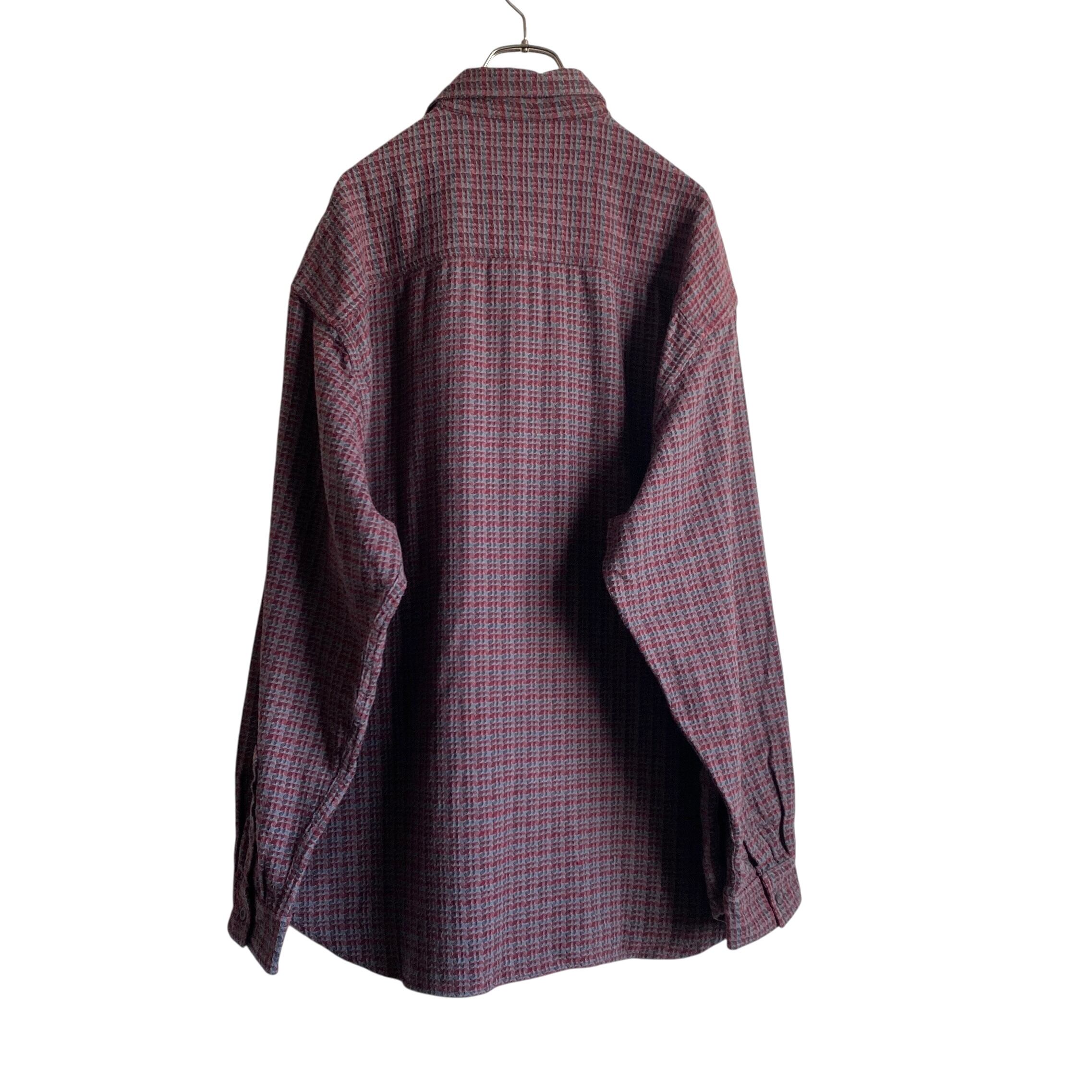 肉厚でモチっとしたコットンフランネル素材に、レッド×グレー×ブラックが好配色の織柄パターン、ガバッと羽織れるオーバーサイズシルエットが格好良い一着。