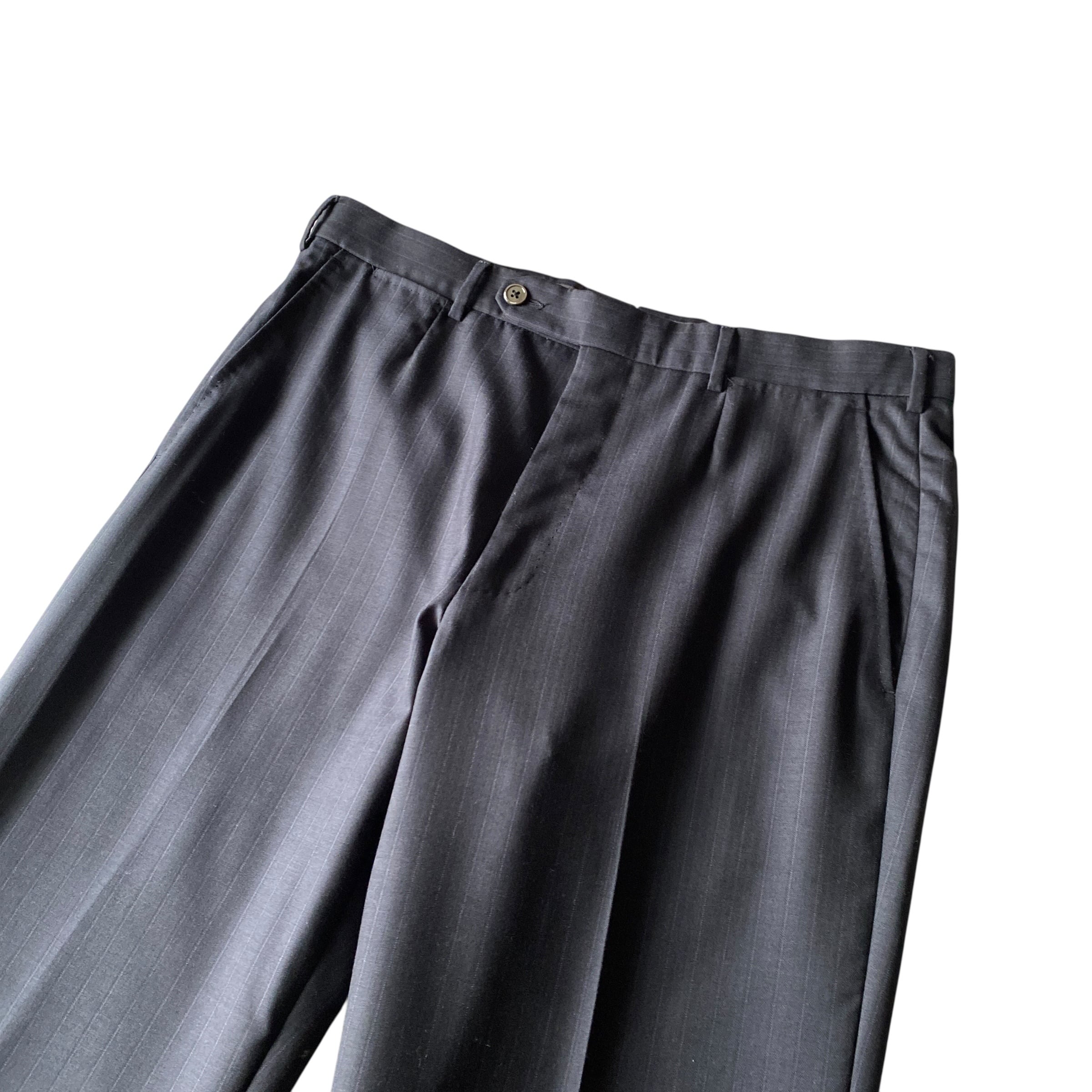 言うまでもなく極上の生地に、チャコールグレーベースのチョークストライプ、程よくゆったりとしたストレートシルエットが非常に素晴らしい一本。