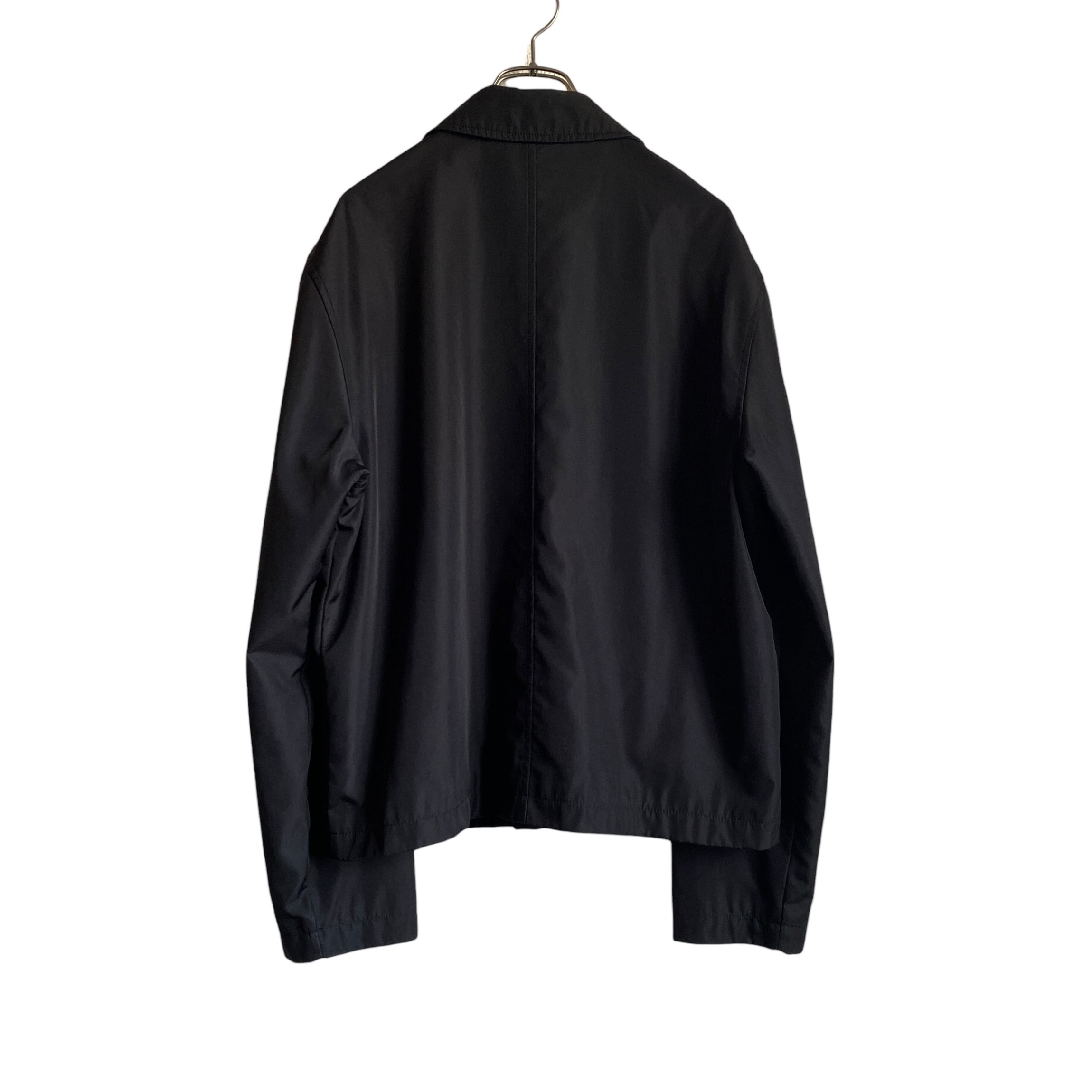 鈍い光沢があり、高級感のあるマイクロポリエステル生地に、YKKのデカメタルジップ、ブラックカラー、ほどよくゆとりのある短丈ボックスシルエットが非常に格好良い一着。