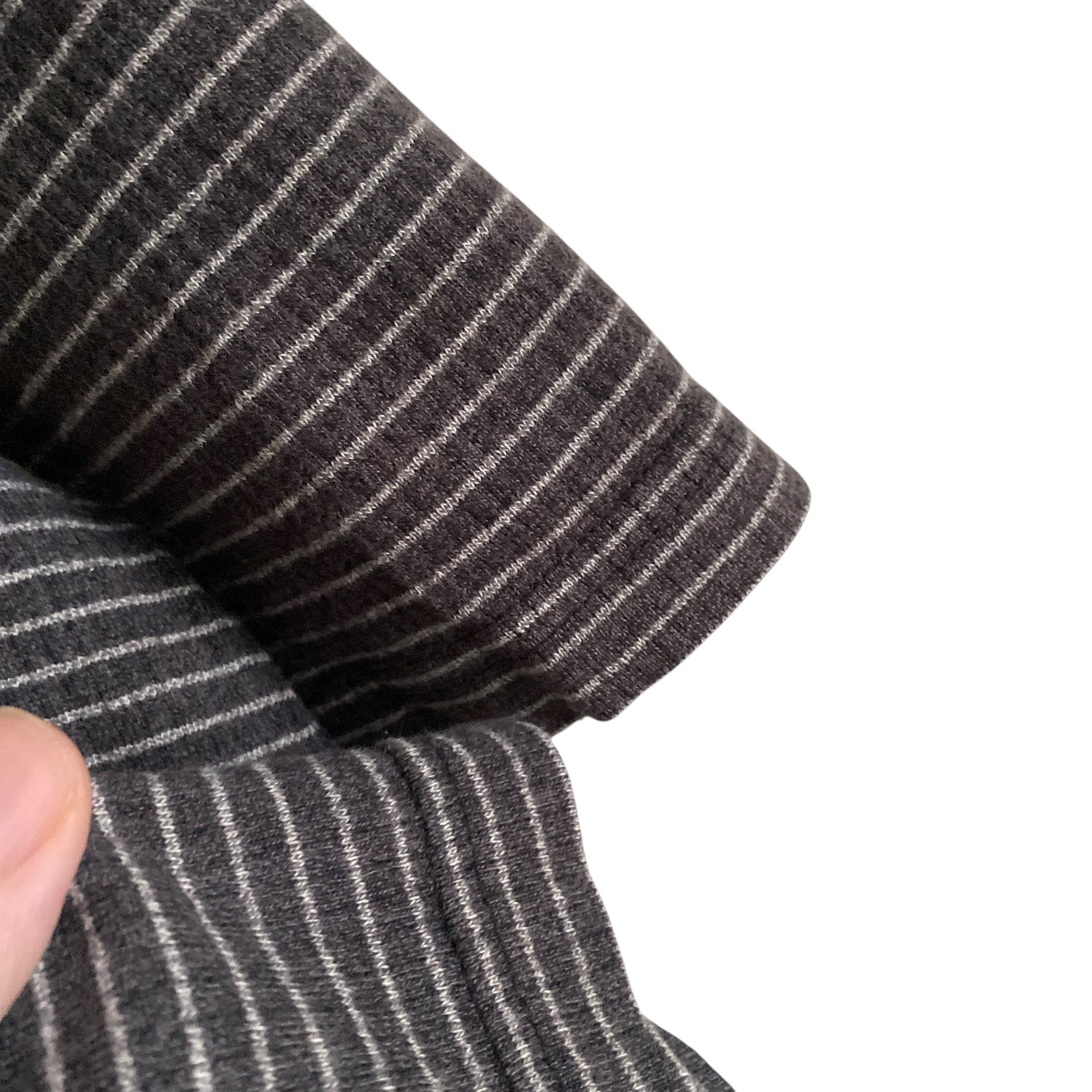 良い感じにフェードしたチャコール×ライトグレーの好配色ボーダーに、丸みのあるボックス目なシルエットが非常に格好良い一着。