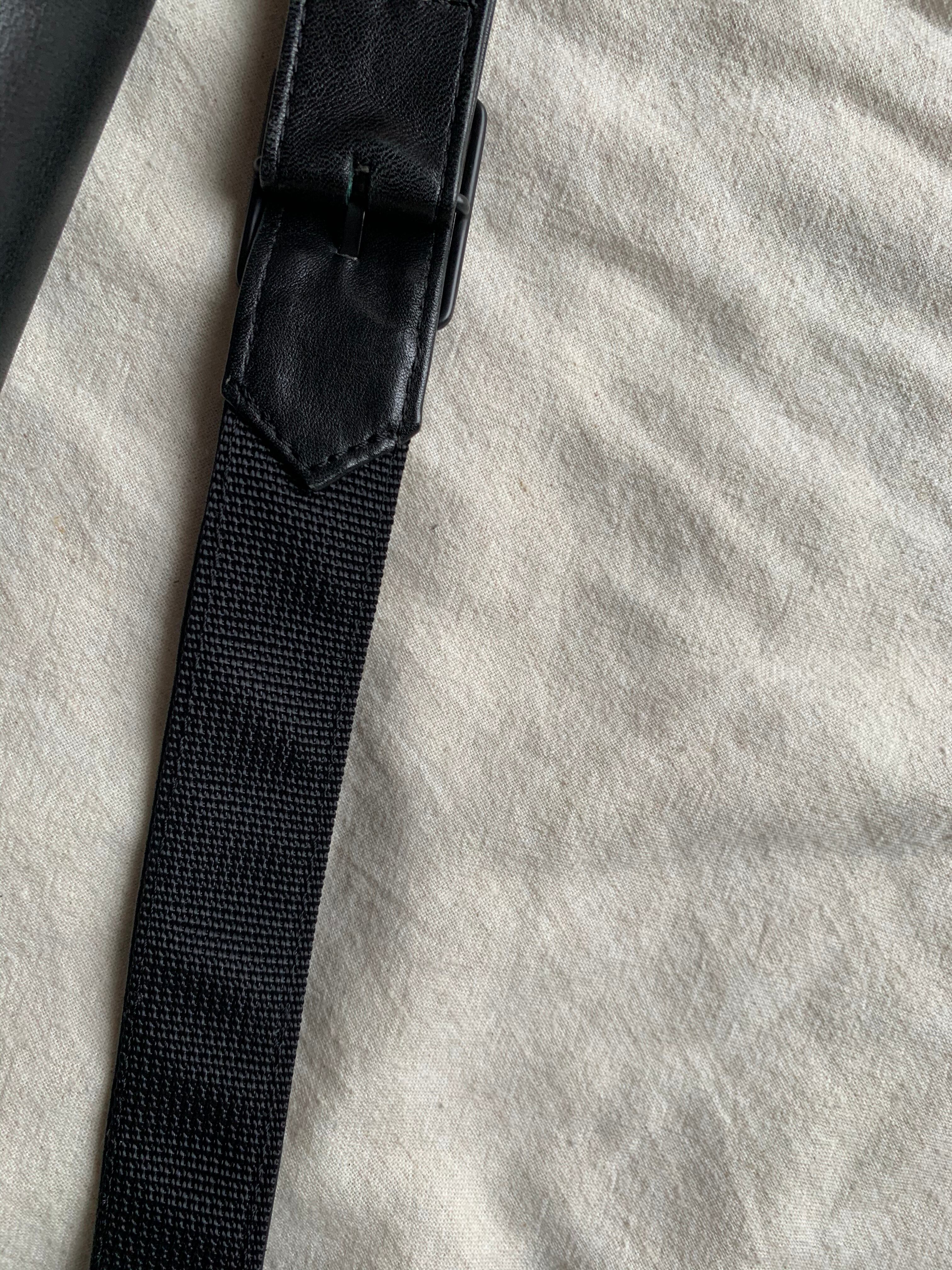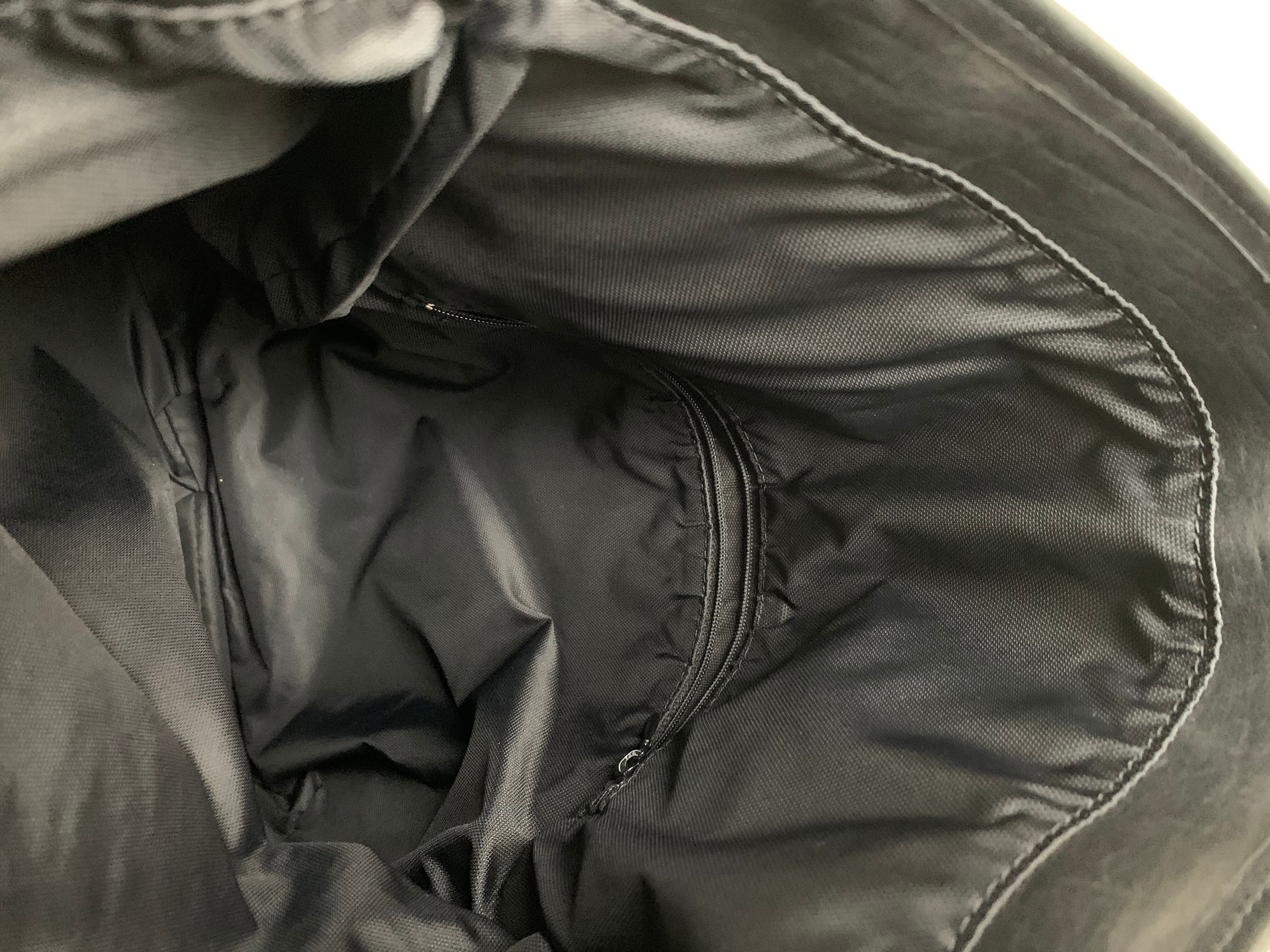 ジッパーやボタンなどではなく、ロールトップ仕様なのも面白く、90年代のヘルムートラングにもありそうなデザインです。