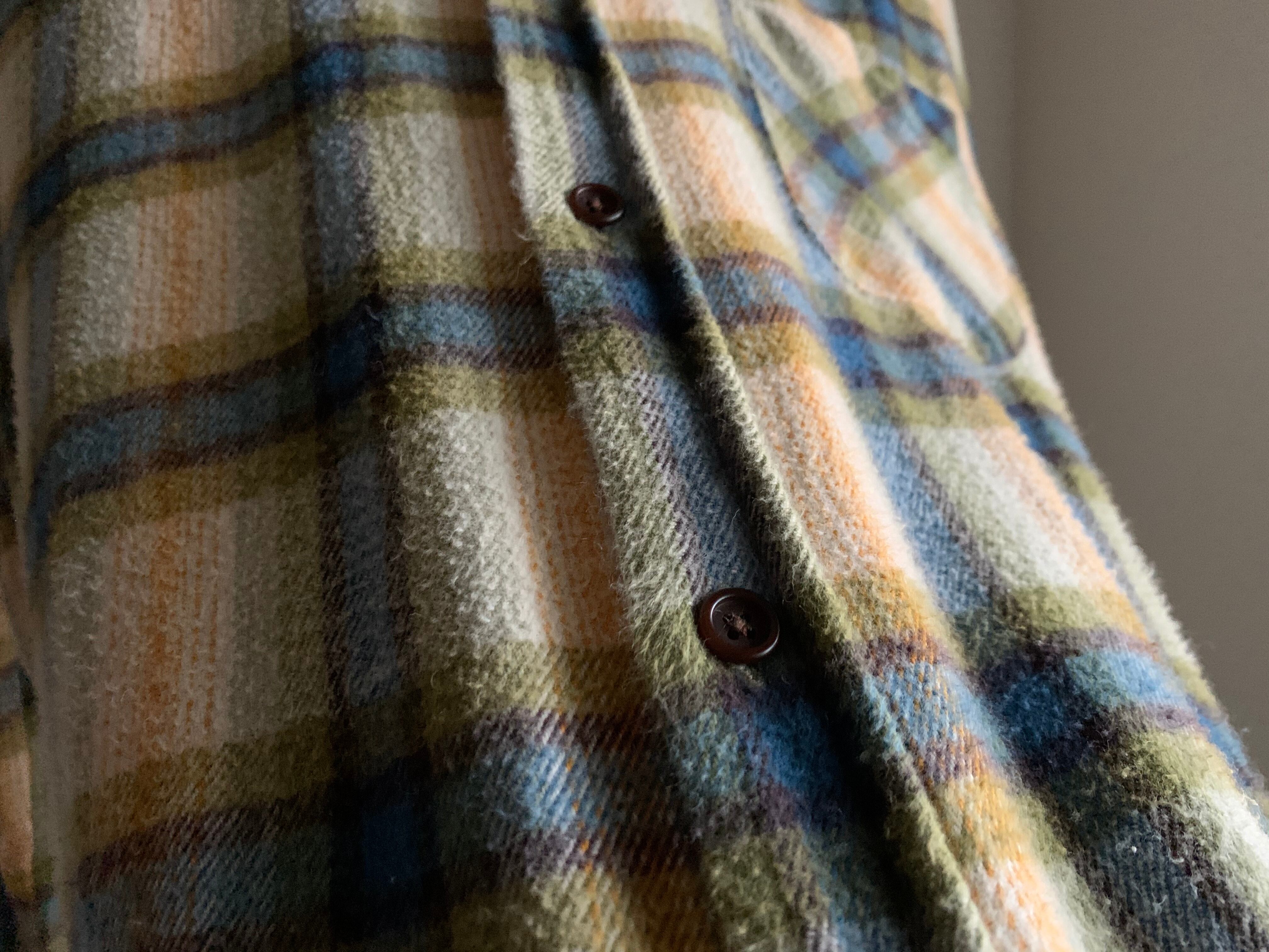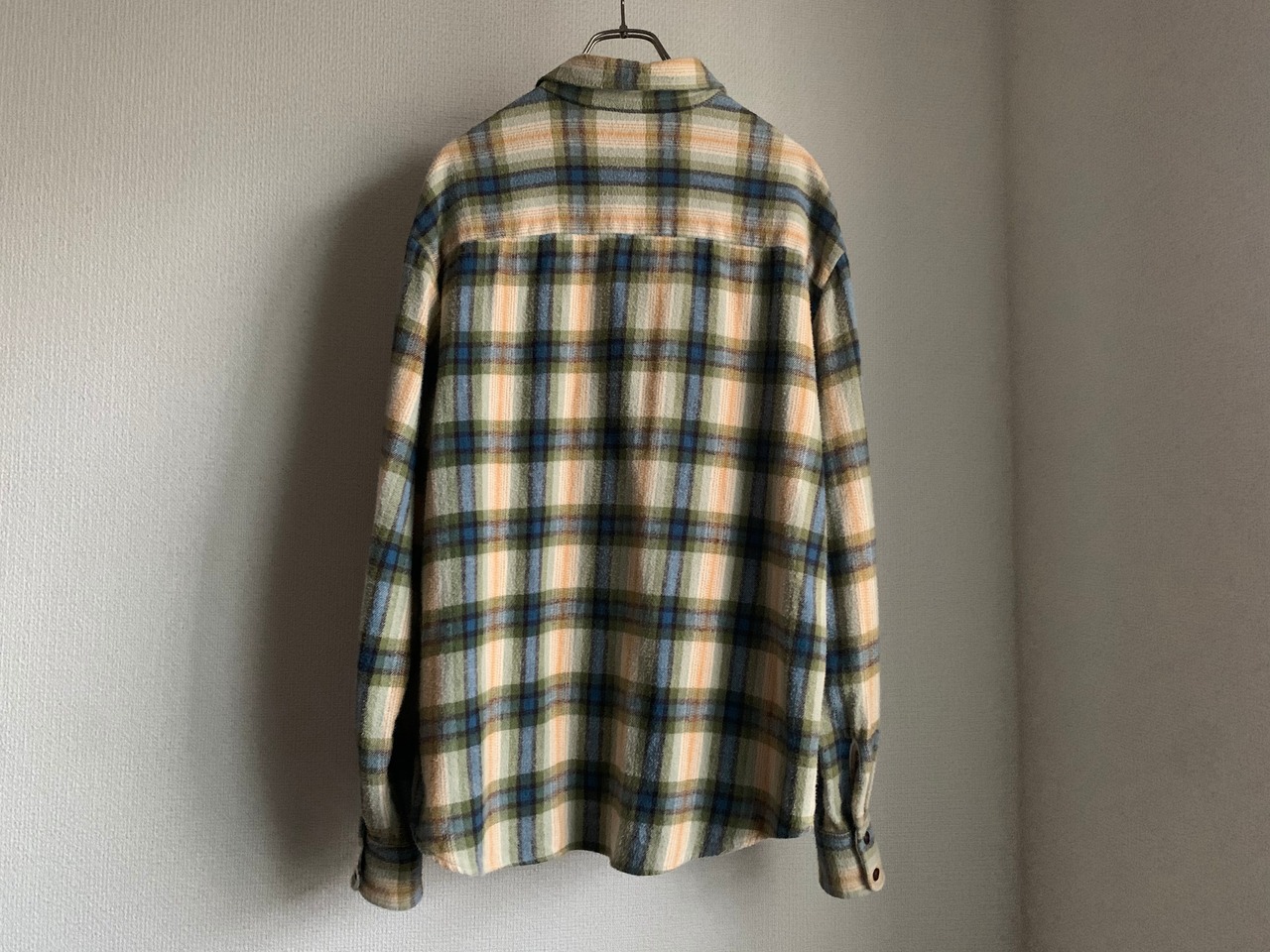 ヴィンテージのネル生地を使ったThe Americanな一着ですが、ヴィンテージのネルシャツには絶対にないベージュベースの配色が素晴らしいです。