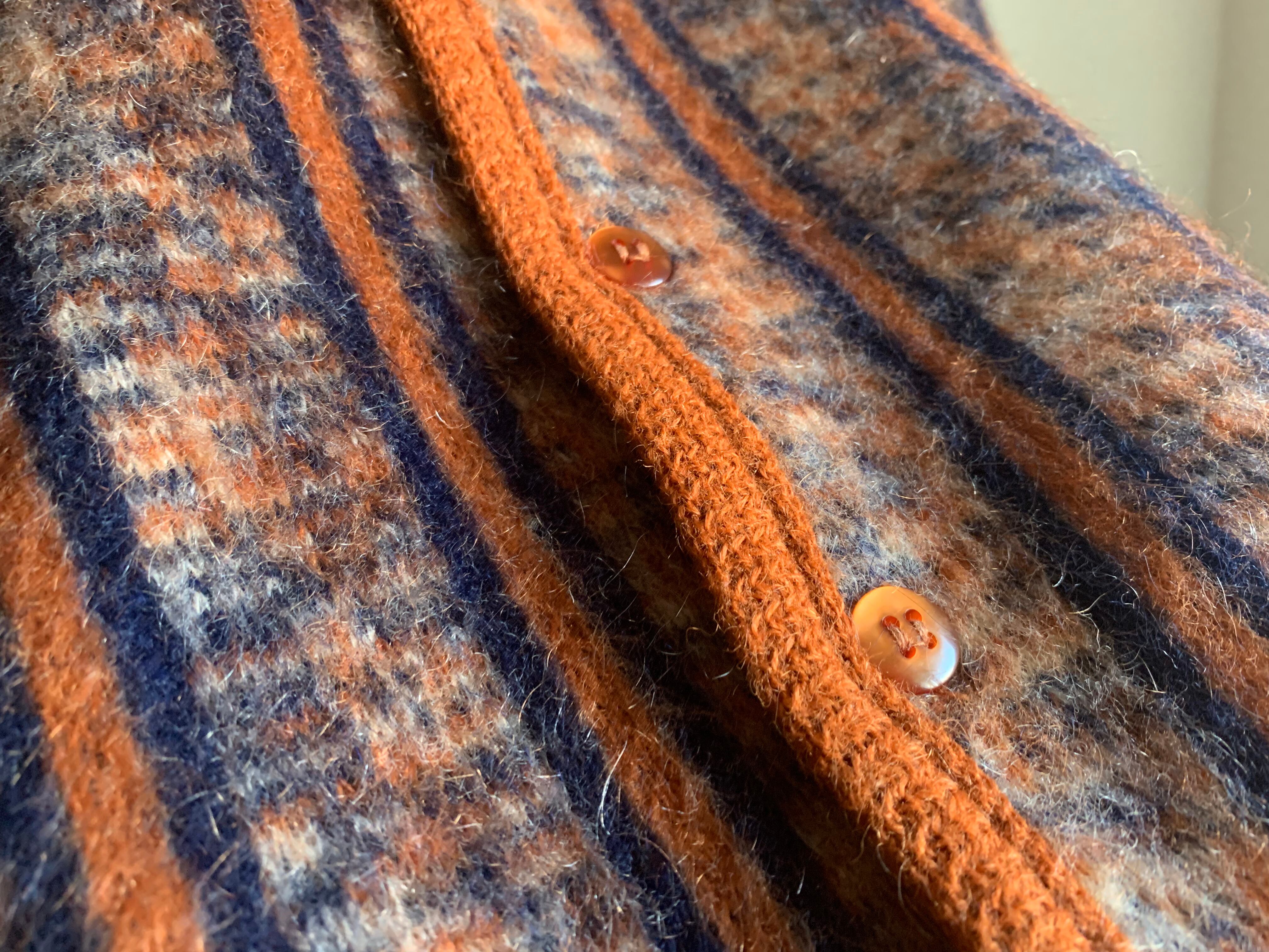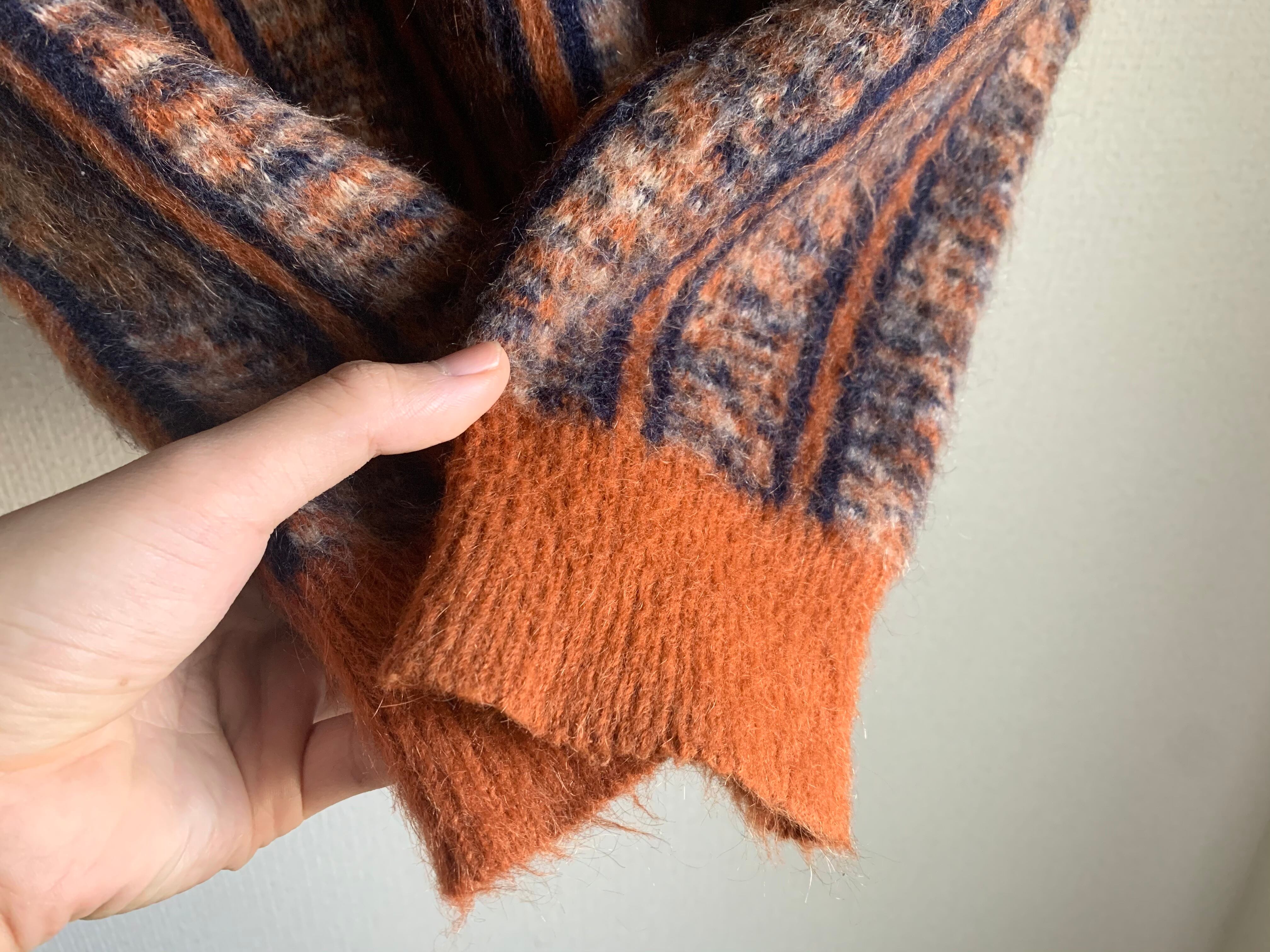 カートコバーンの影響で、世の中的には単色やmix系、次点でアーガイル柄などが人気ですが、こういった良配色、良パターンのものも人と被らないので良いです。