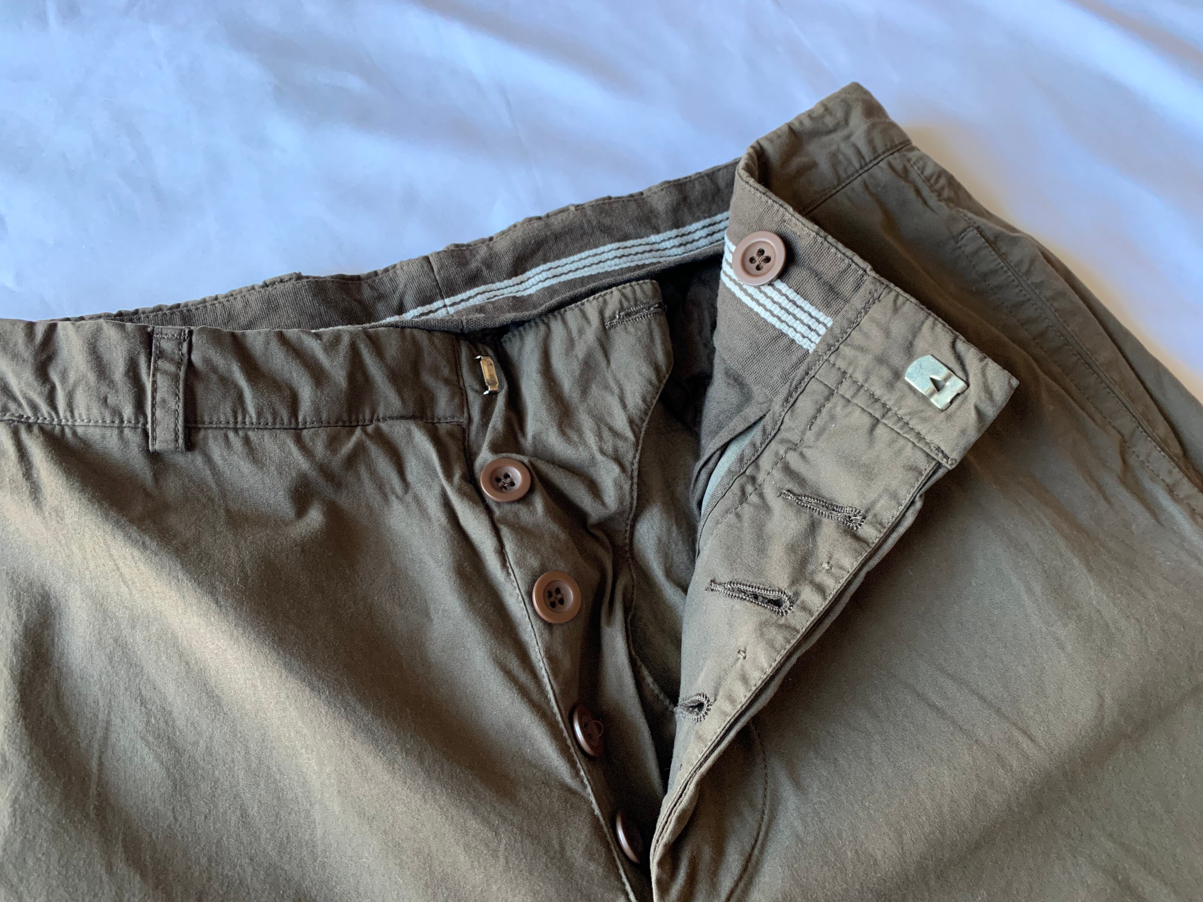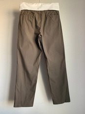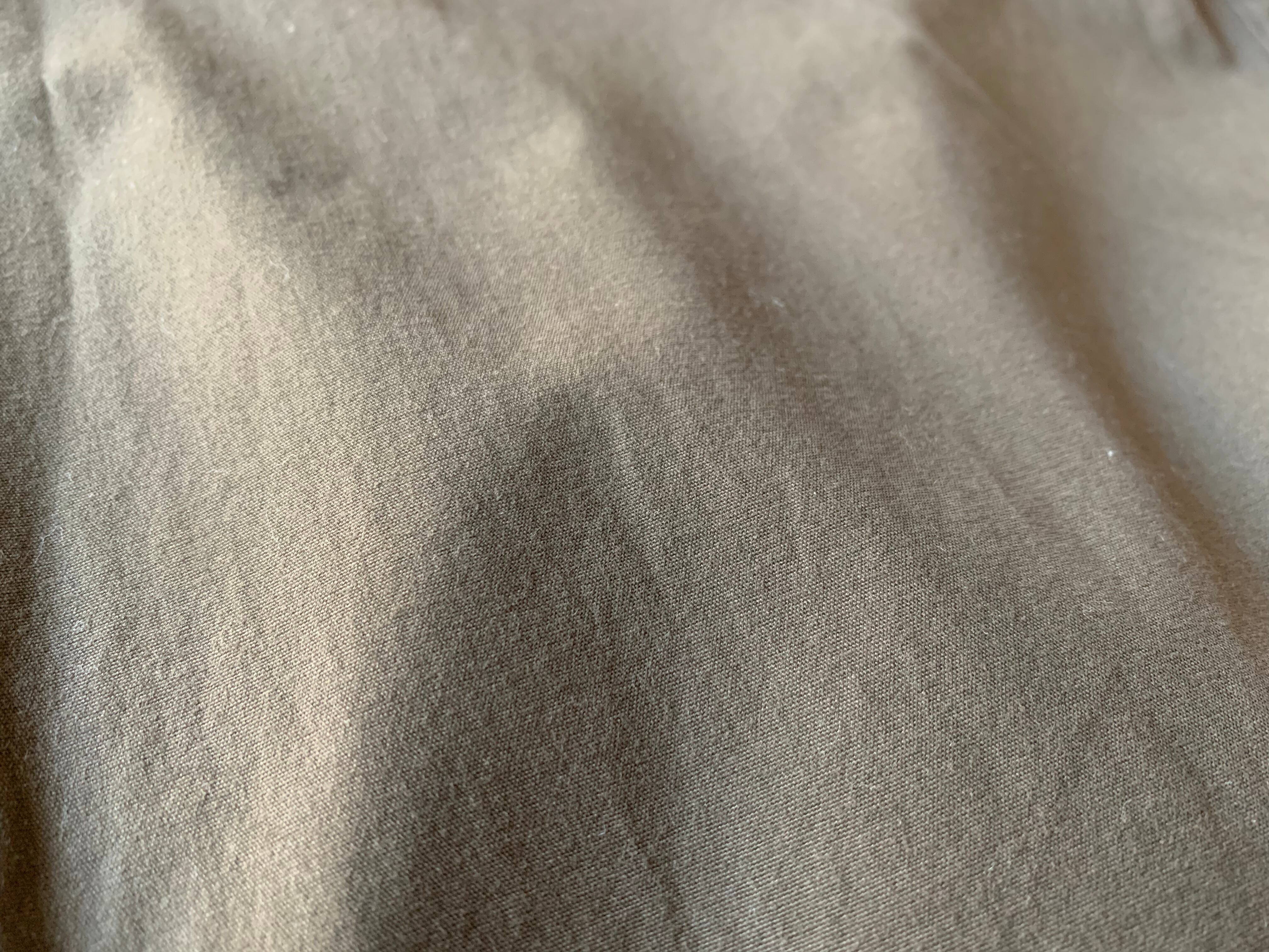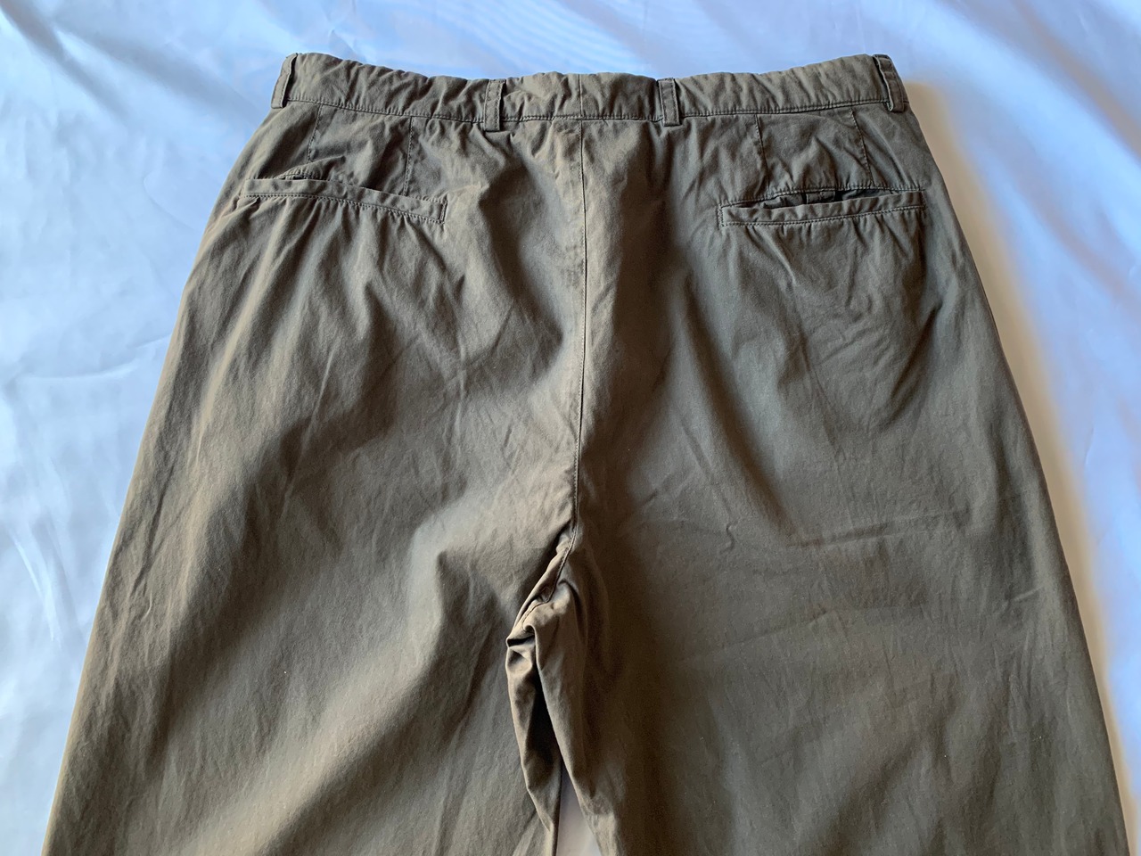 超高密度に織られたライトオンスのカサっとしたコットン生地(ウレタンが10は入りますがなぜか伸縮性はありません)に、太くも細くもない絶妙なストレートシルエット、モカブラウンに少しカーキを足したような絶妙な色目と個人的に完璧な一本。