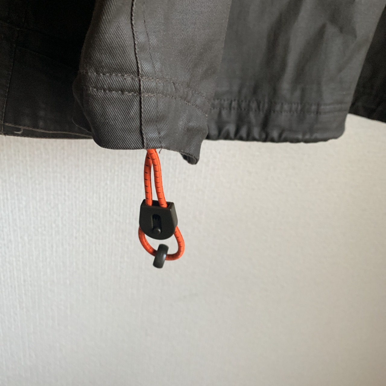 ウレタンコーティングされたコットンの風合いがヴィンテージライクでとても雰囲気が良く、コーティングで沈んだオリーブとオレンジのコントラストが抜群です。