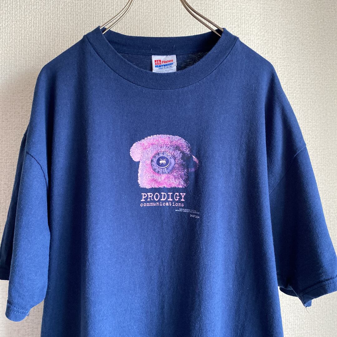 フロントに小さめのプリント1発の一見シンプルな一枚ですが、ネイビーボディにピンクの電話プリントが程よくキッチュでインパクト抜群なので、着てみるとかなり満足感のある一着です。