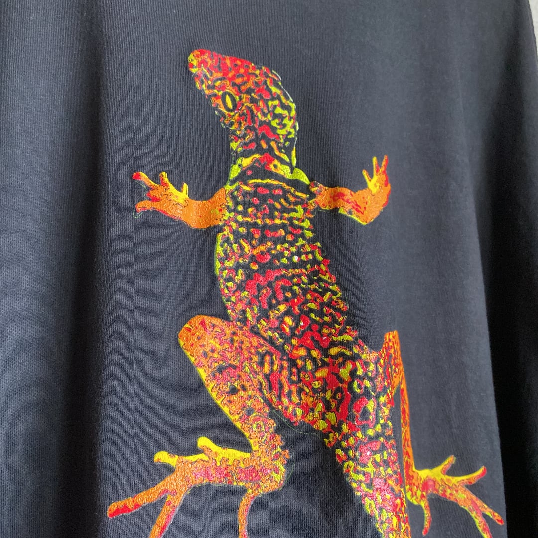 ブラックのボディに色鮮やかなトカゲのプリントがよく映えます。