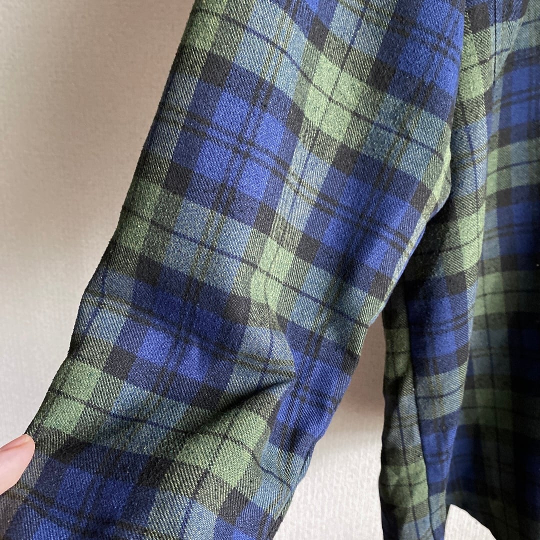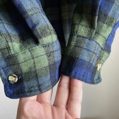 ブラックウォッチと呼ばれるブラック、ブルー、グリーンからなるトラディショナルなタータンチェック柄が渋い一着。