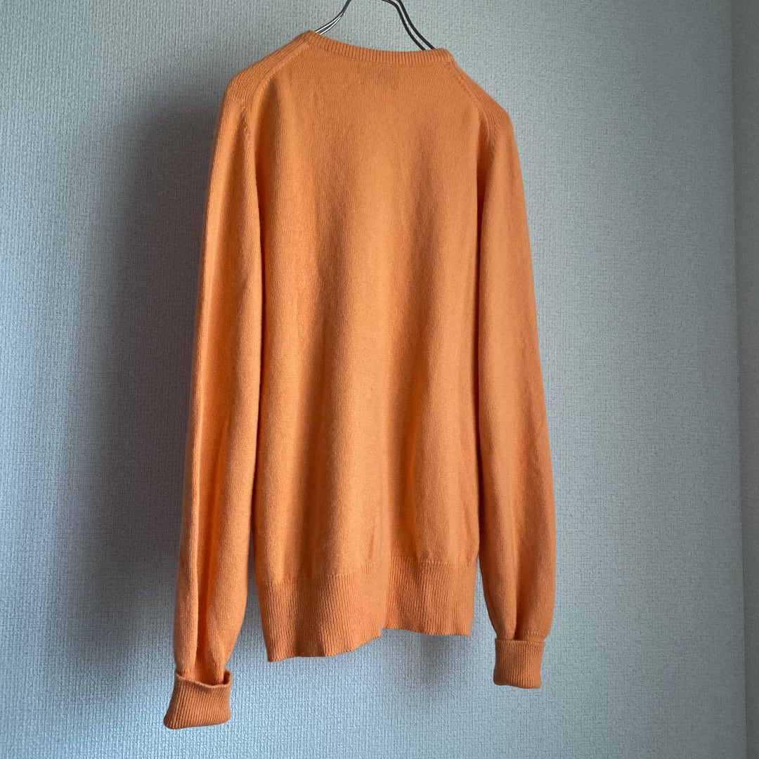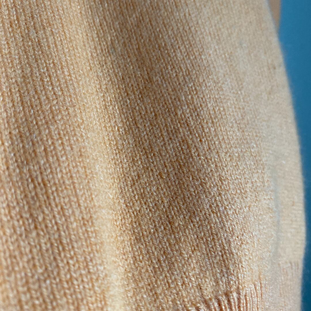何本もの糸を重ねた太糸を使用した極上の手触りのカシミヤ素材に、淡く柔らかな優しいオレンジカラーが非常に上品で良い雰囲気の逸品。