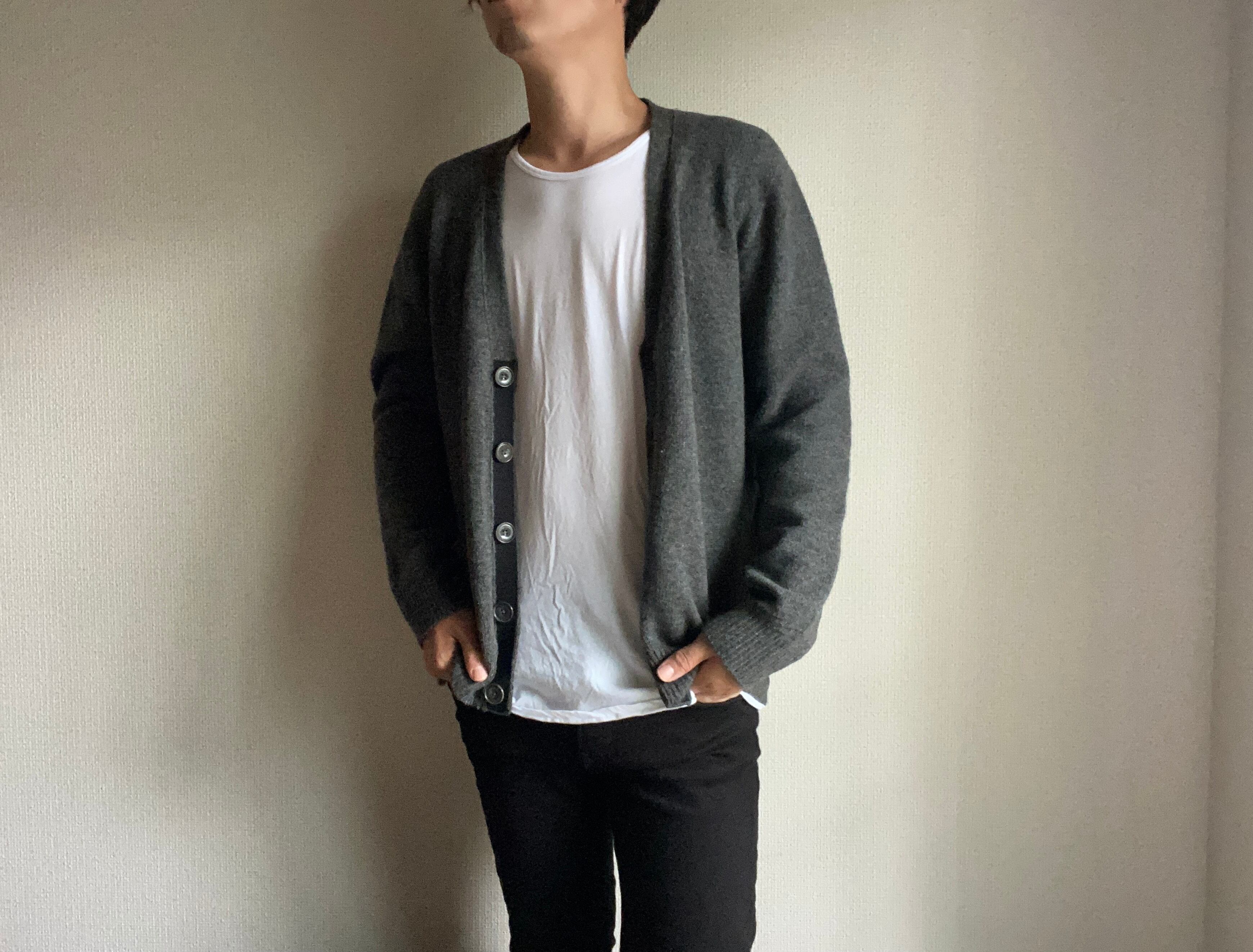 スラックスからデニム、ミリタリーパンツなど何にでも合わせやすい一着ですので、質の高いカシミヤのカーディガンをお探しだった方は是非いかがでしょうか?