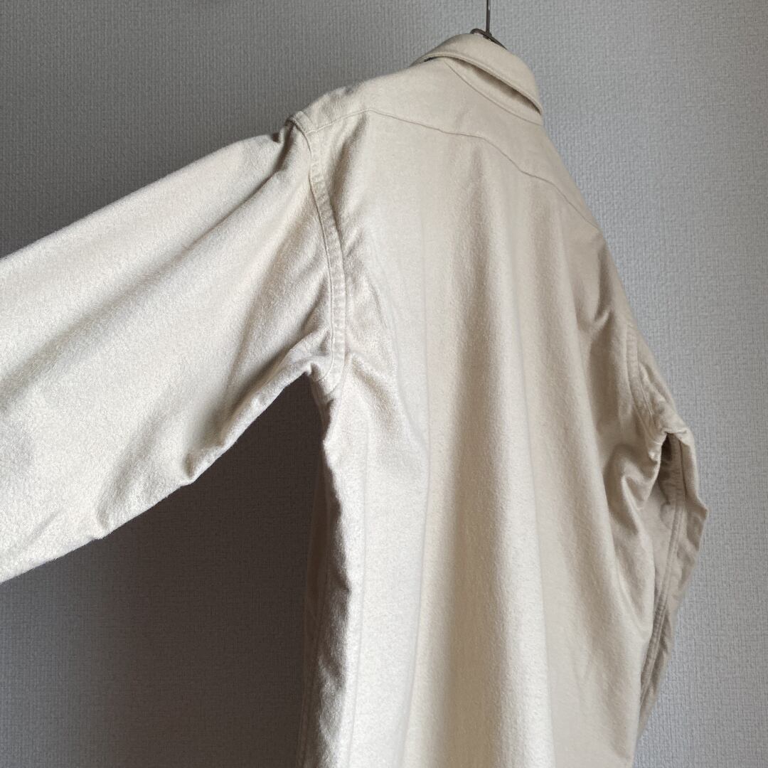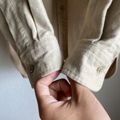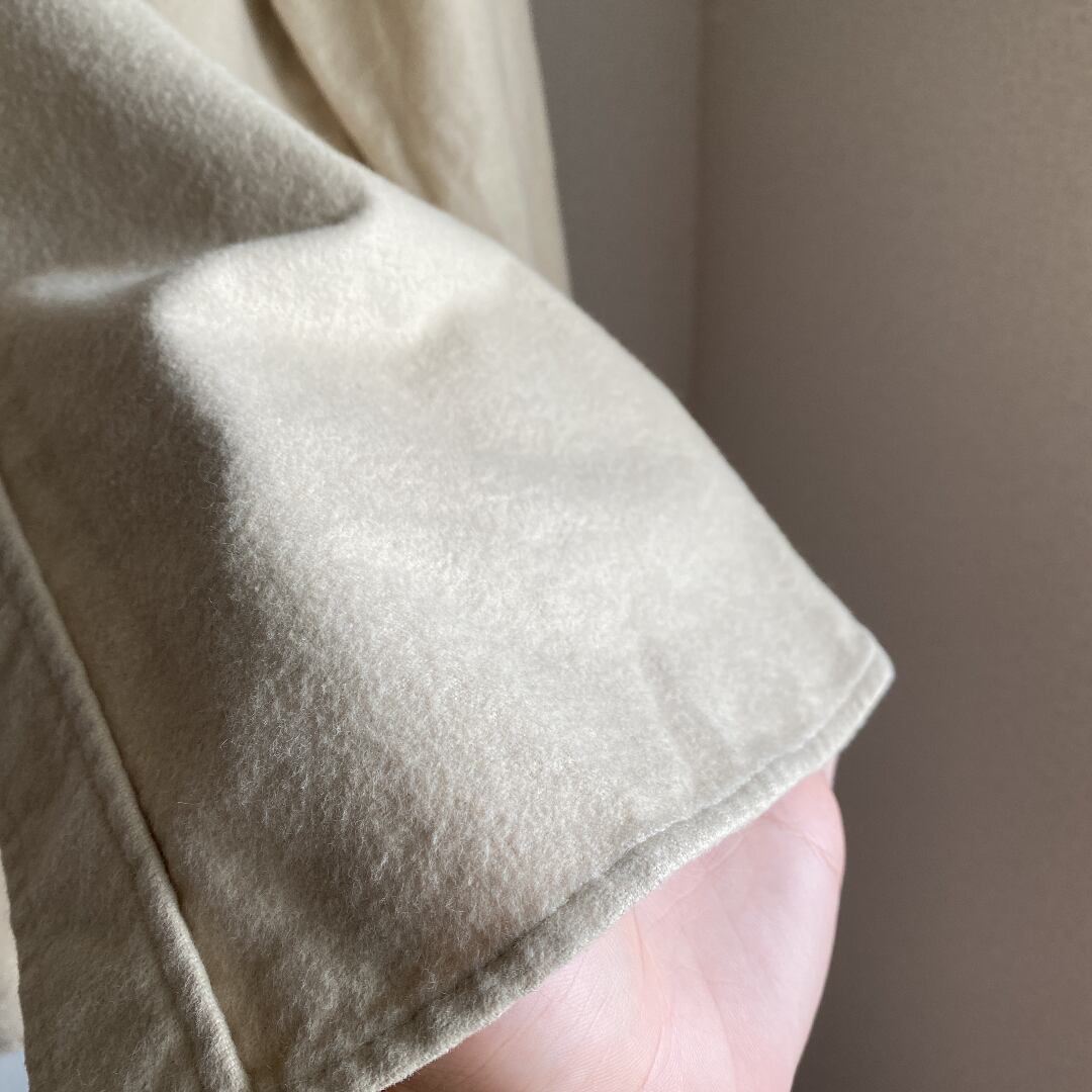 シャモアクロスのシャツは派手な色の物が多い中、こちらは落ち着いた優しい色目のベージュで合わせやすいです。