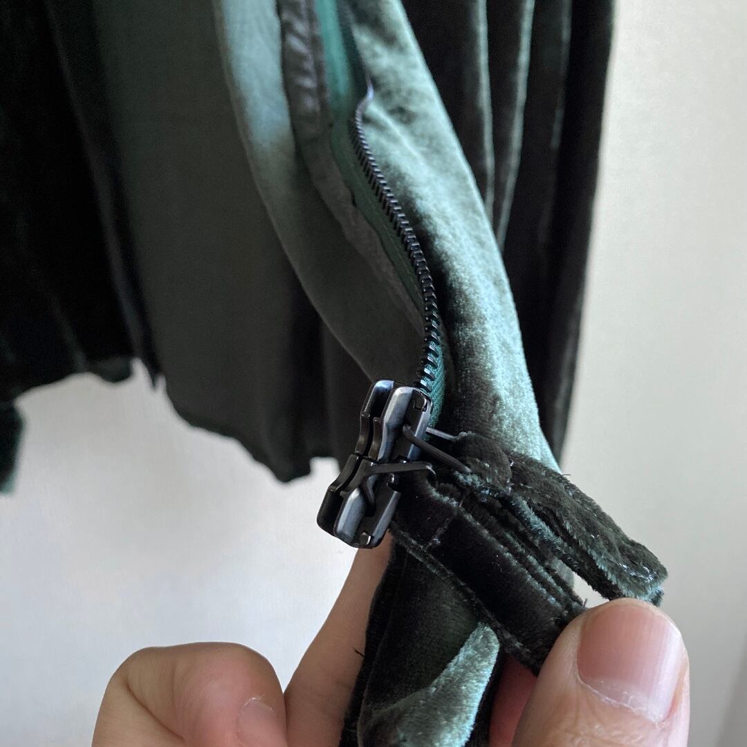 カラーは深い深いグリーンで、ベロアの光沢感と相まって奥行きのある佇まい。