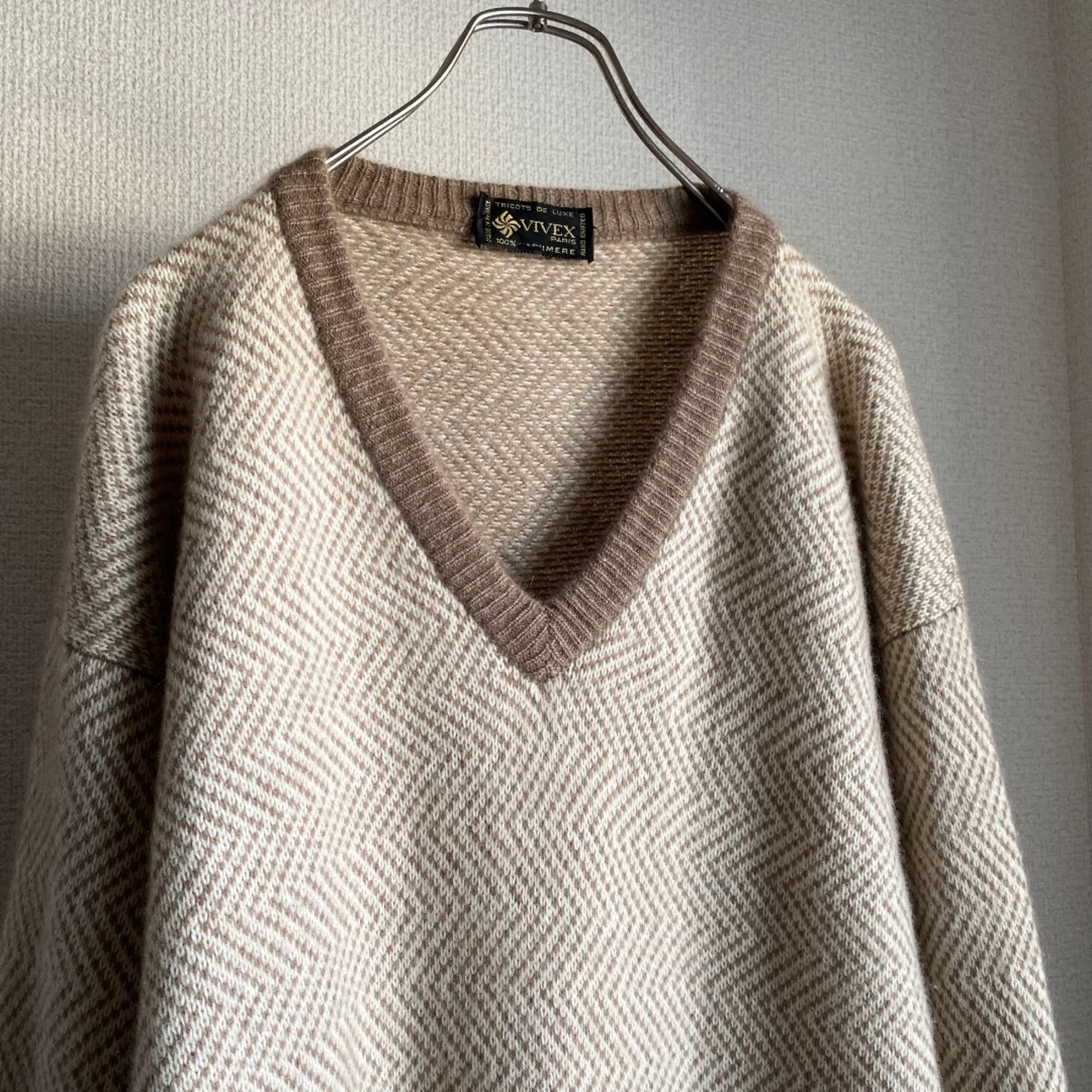 70年代フランス製VIVEXのVネックカシミヤセーターになります。