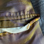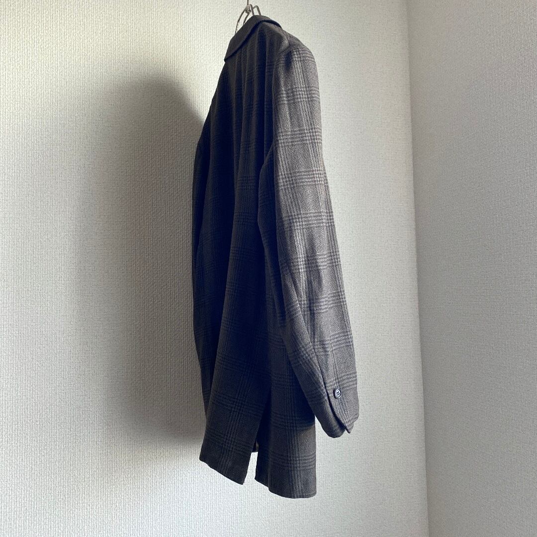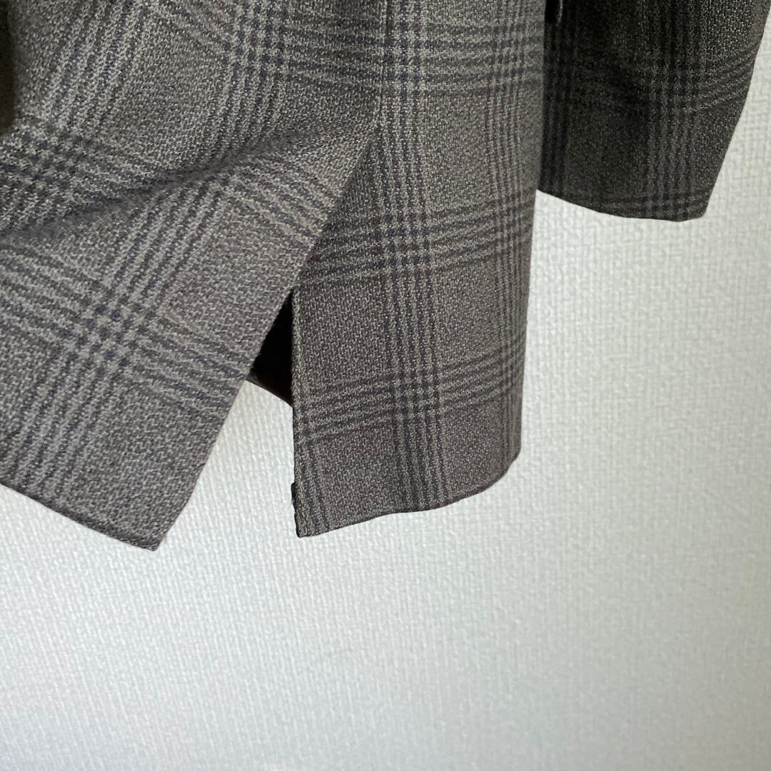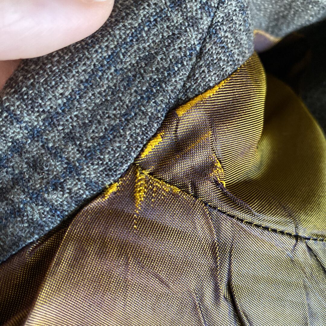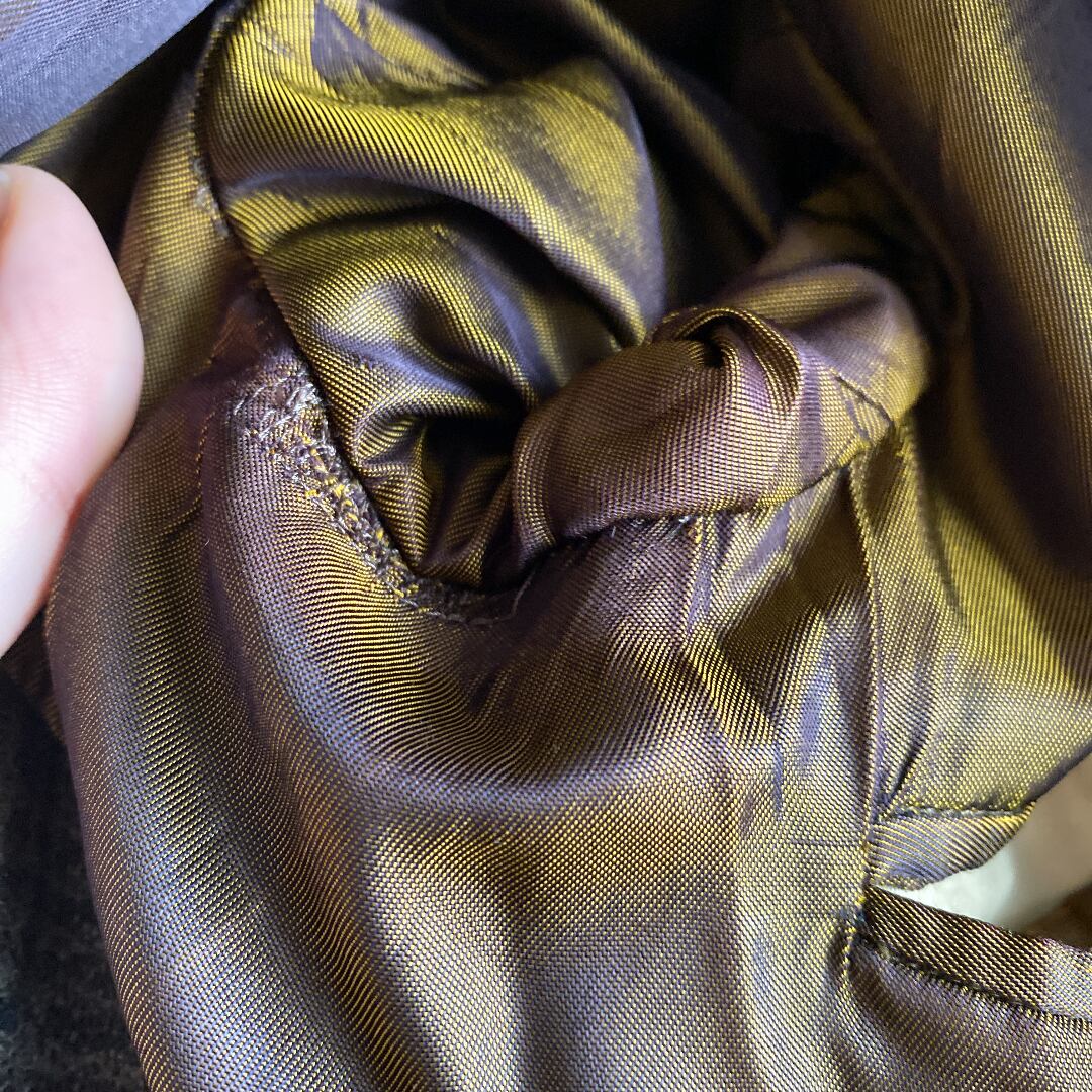 もちっとしたウールボディに、グレーブラウン系の同色チェック柄、鈍い玉虫ゴールドの裏地が非常に格好良く雰囲気の良い一着。