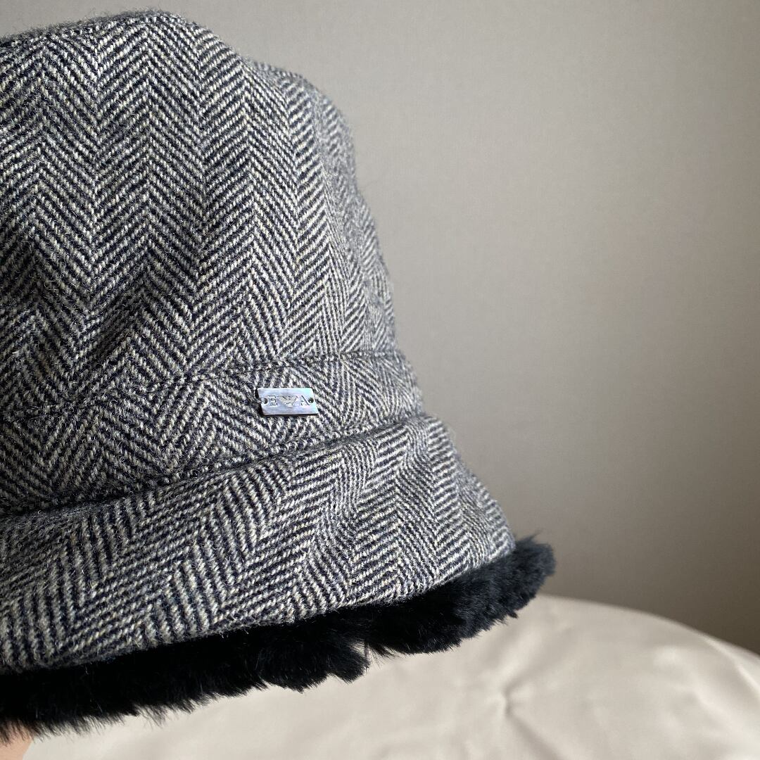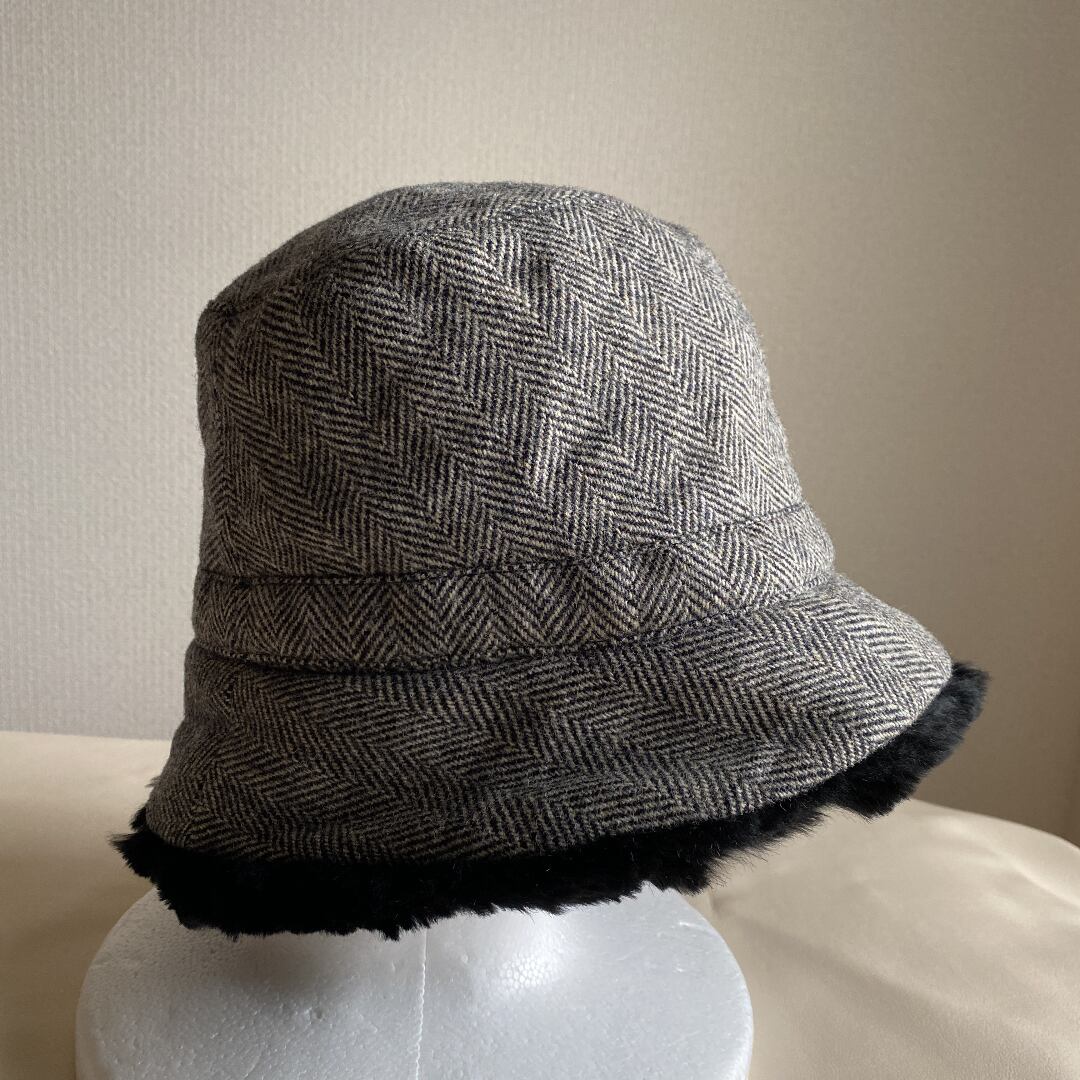 ヘリンボーンウールにラビットファーを組み合わせた、クラシカルかつラグジュアリーな雰囲気がかわいい逸品。