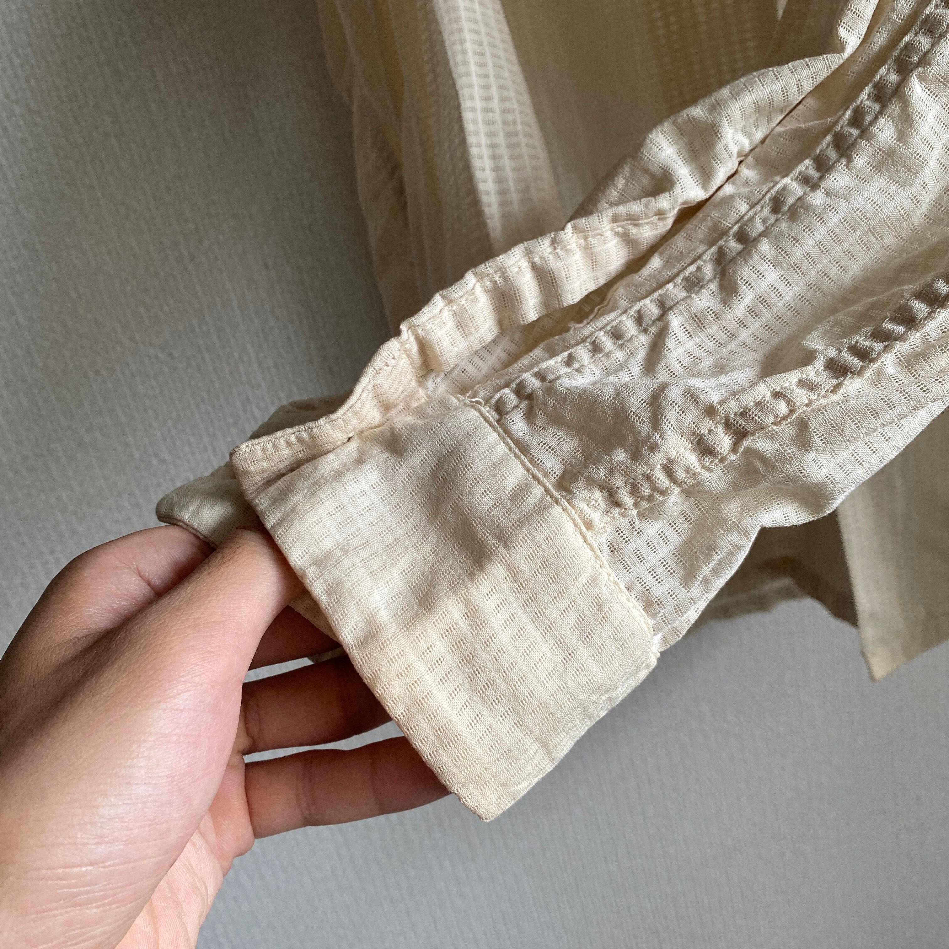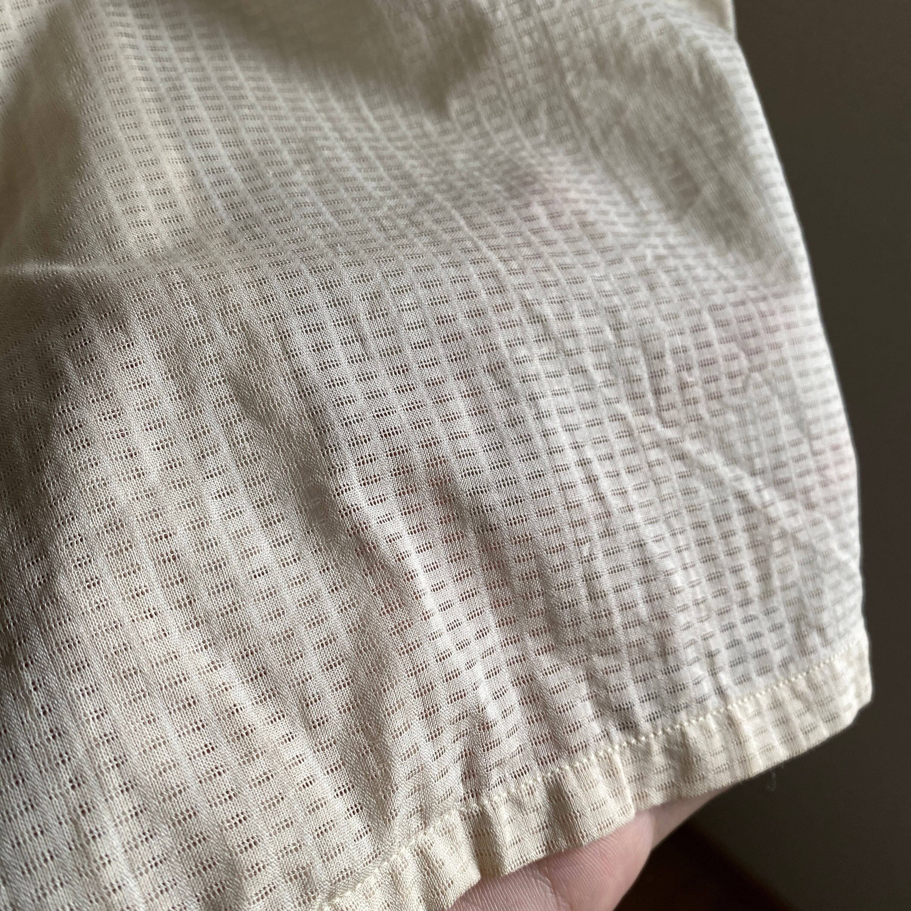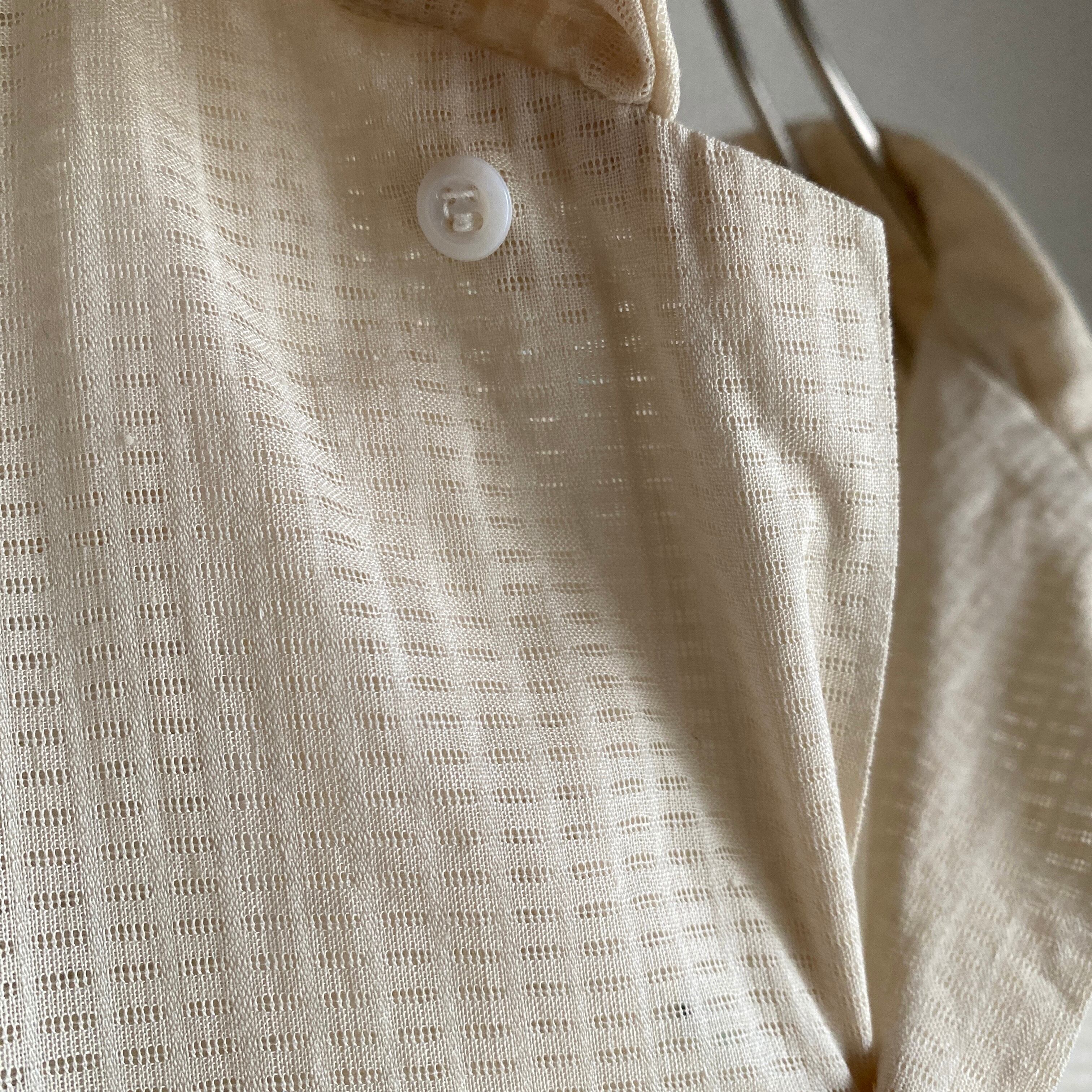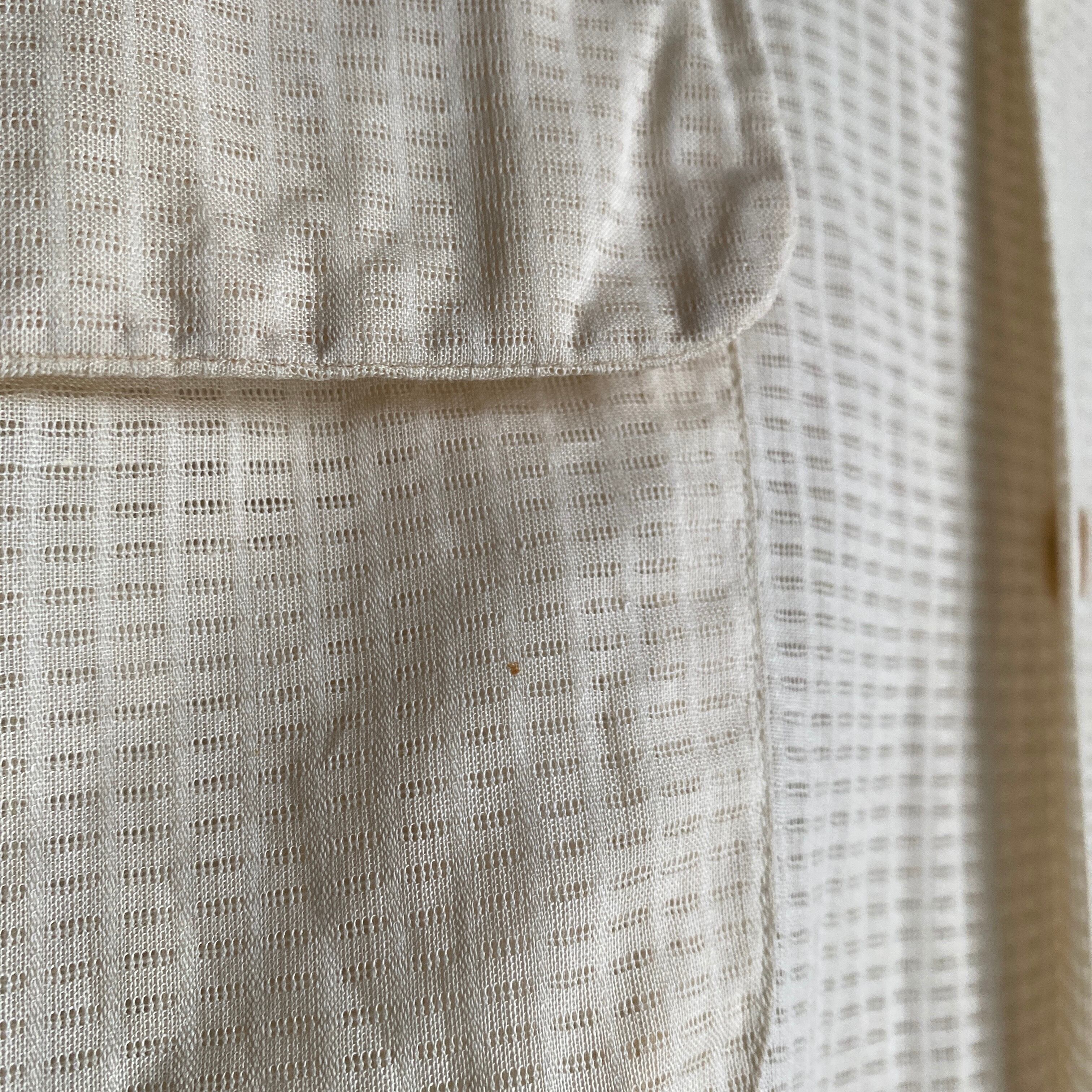この年代では定番の、フラップポケット付きのボックスシルエットの開襟シャツですが、こちらはメッシュコットンのボディを使用した珍しい一着。