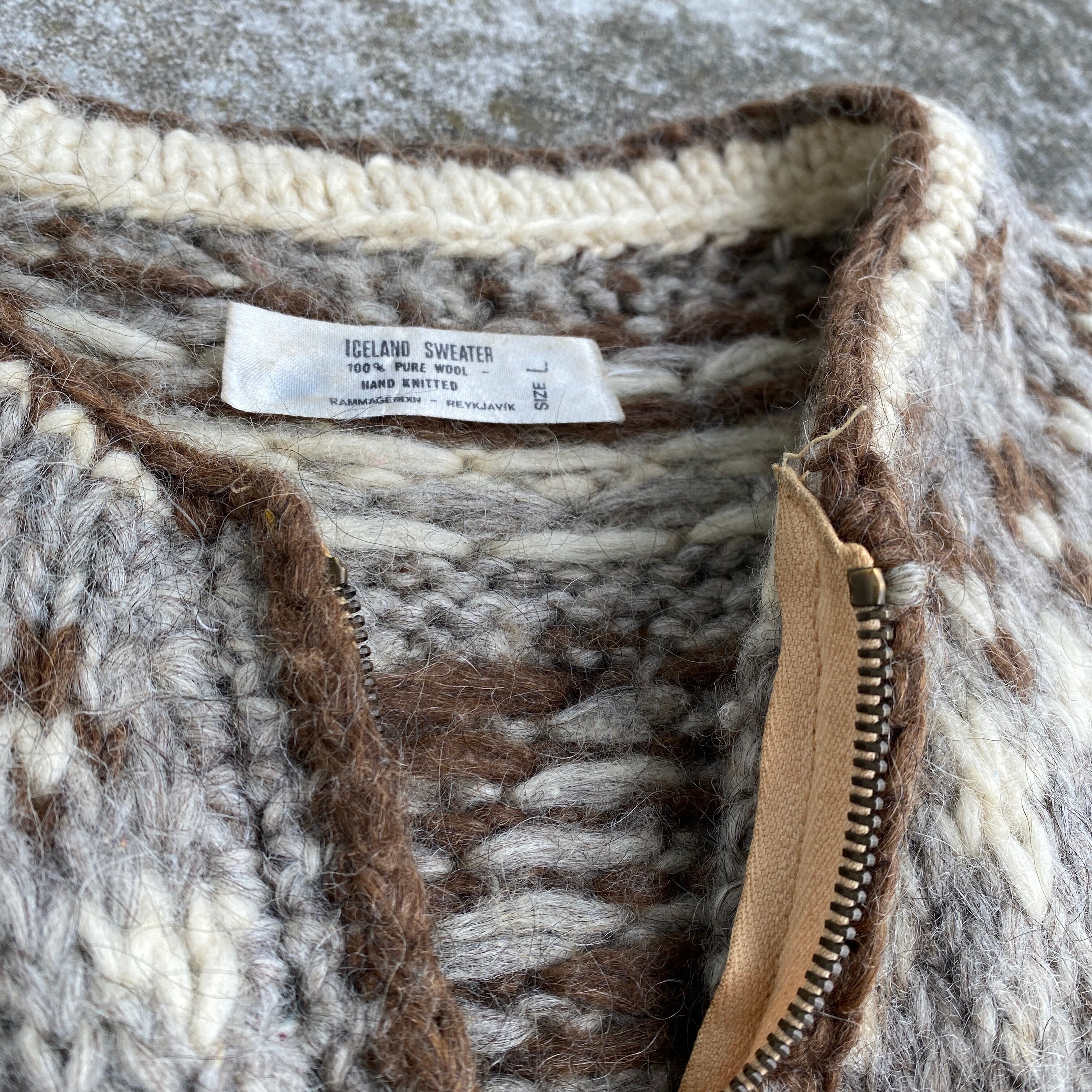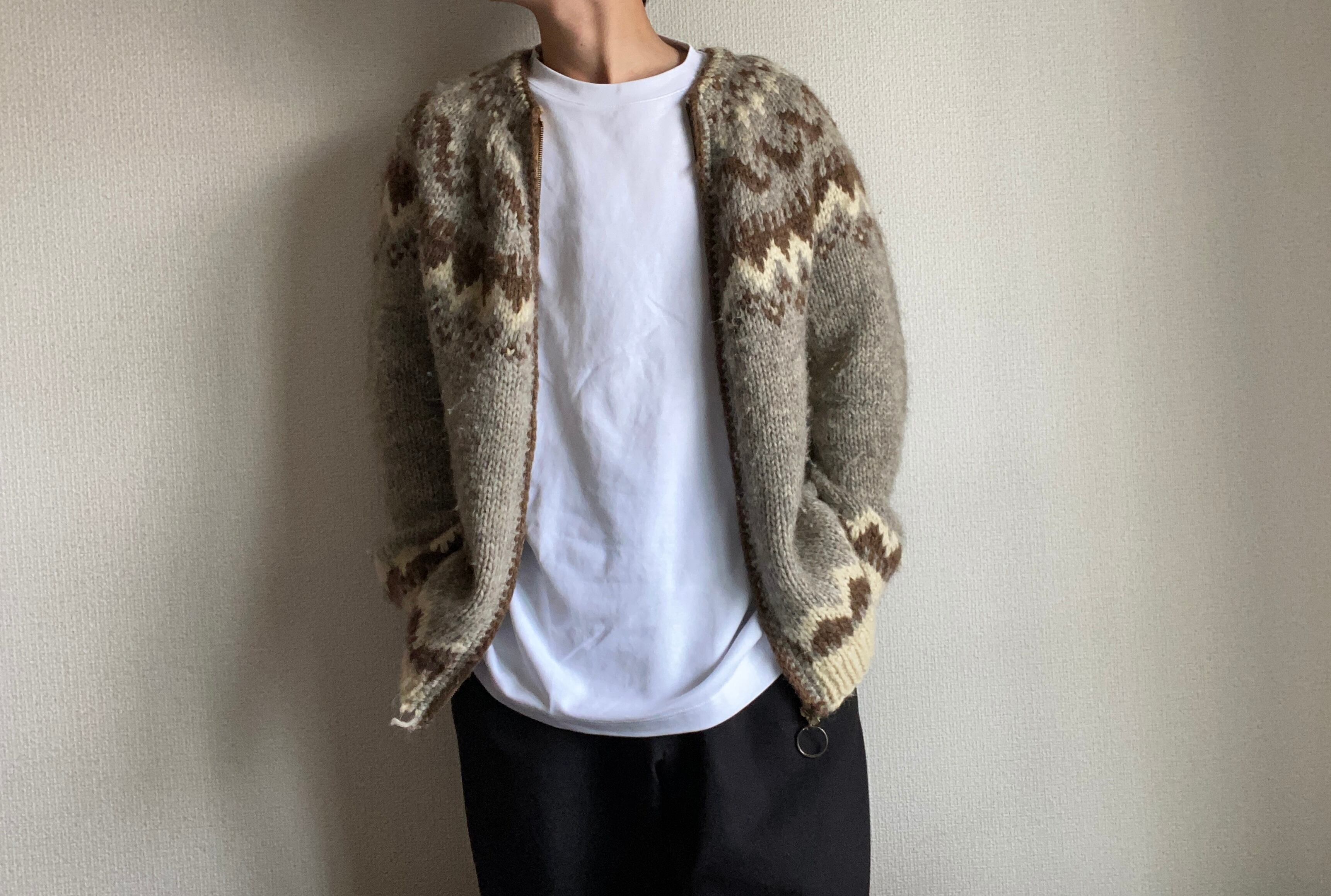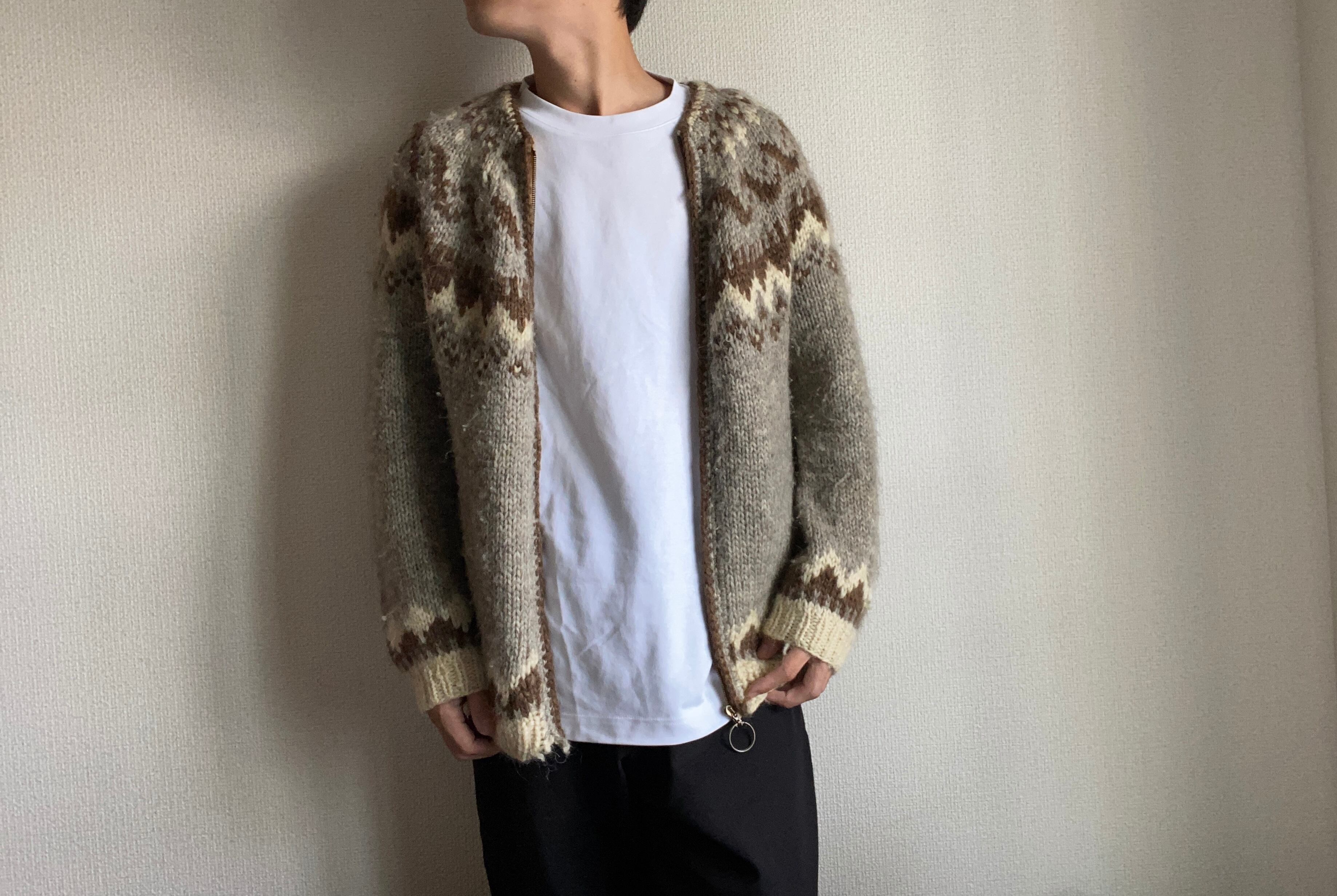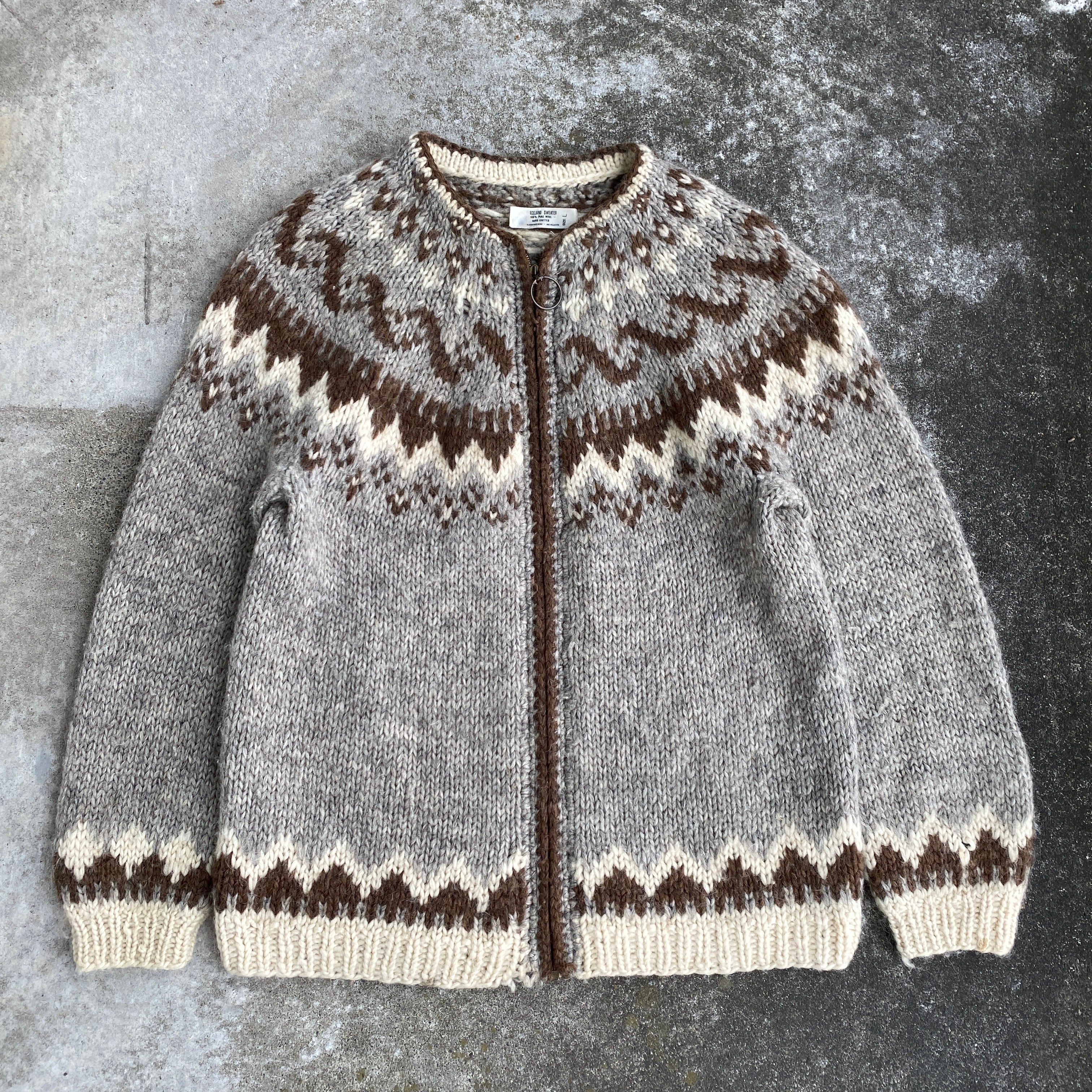 ヴィンテージアイスランド製ノルディックパターンハンドニットジップカーディガンになります。