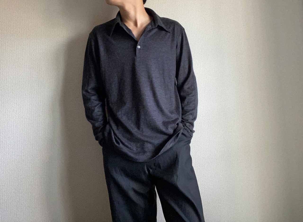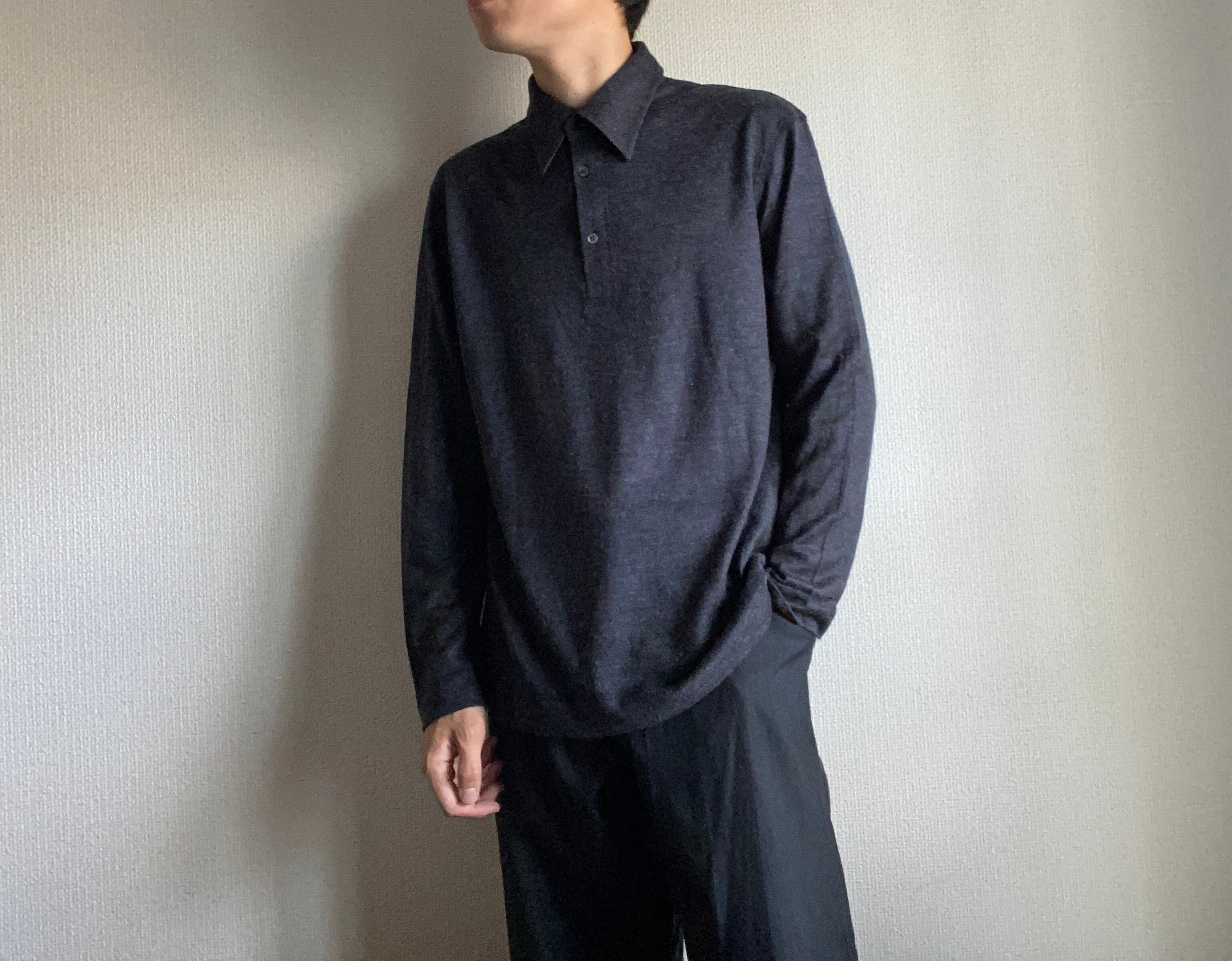一見ベーシックですが、大きめの襟やリブの付かないストンと落ちる袖、裾のシルエットなど、ゴルチエデザインらしいモードな