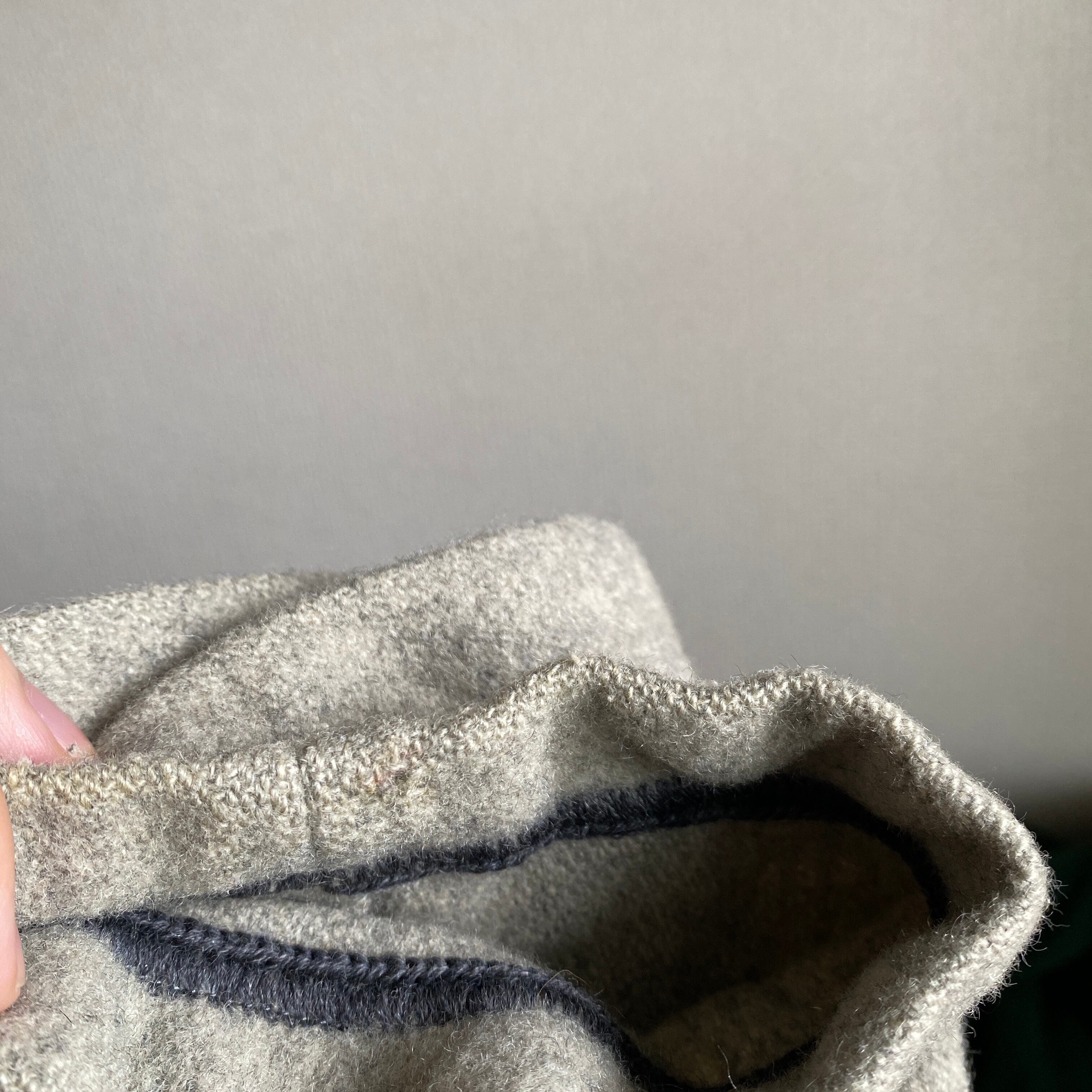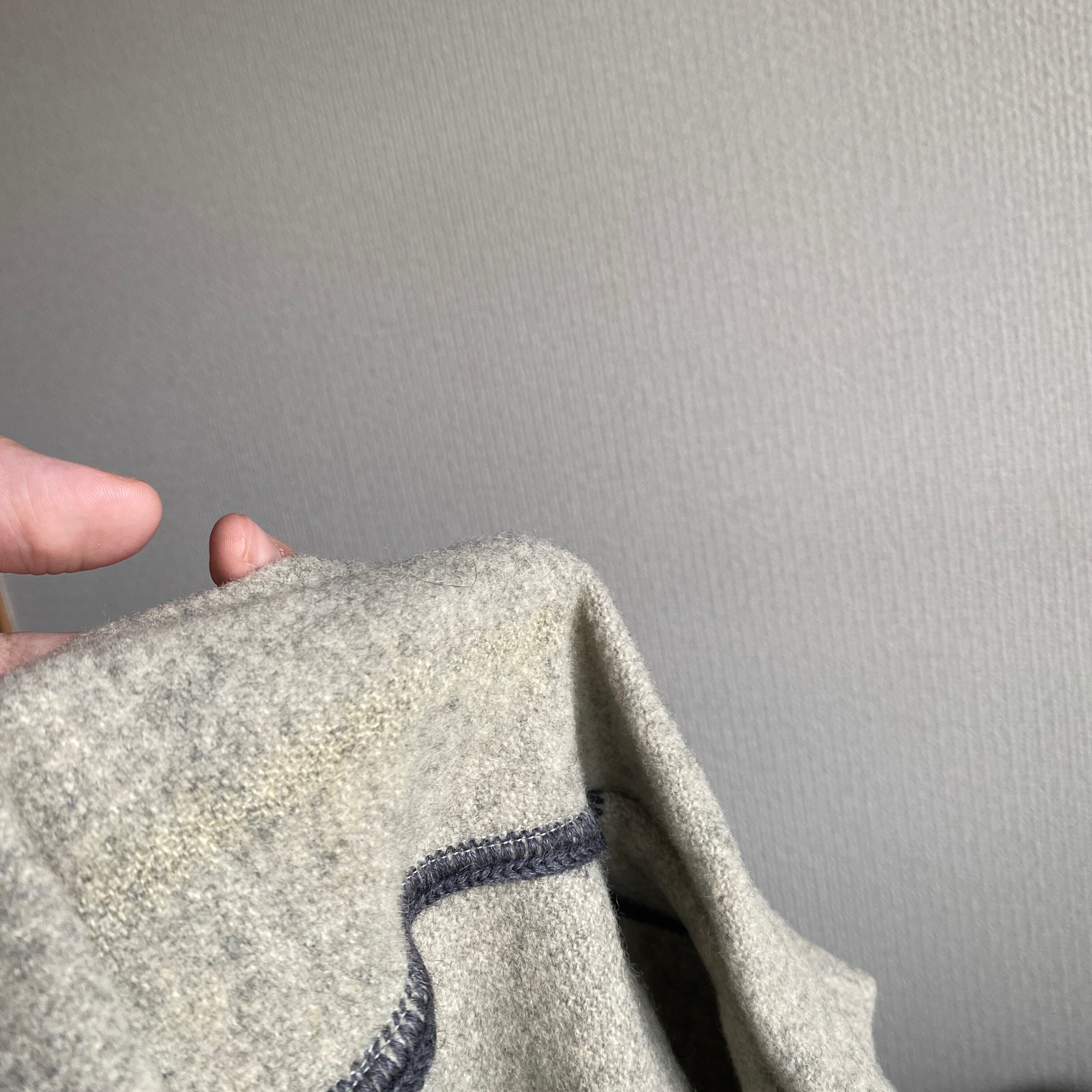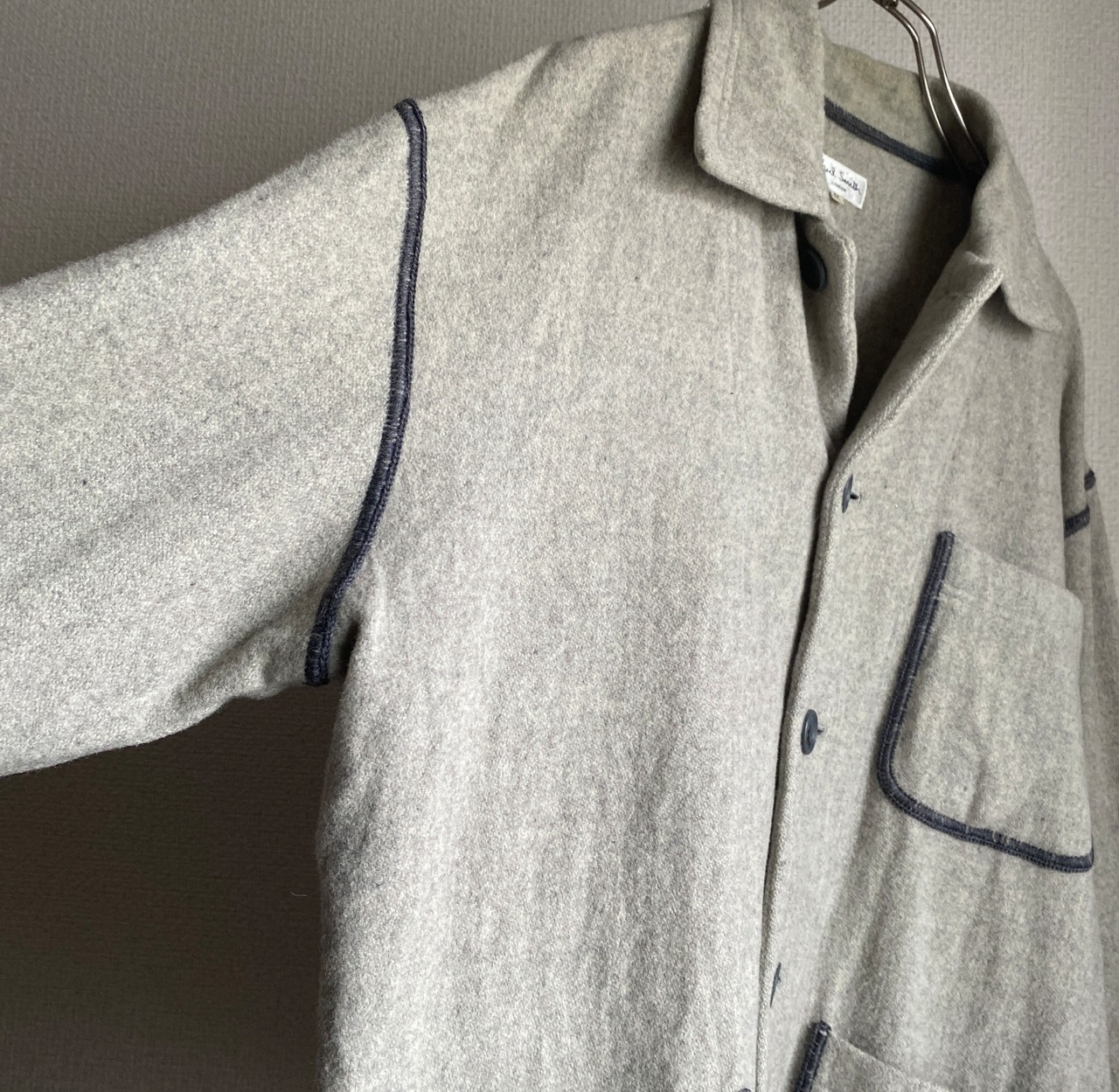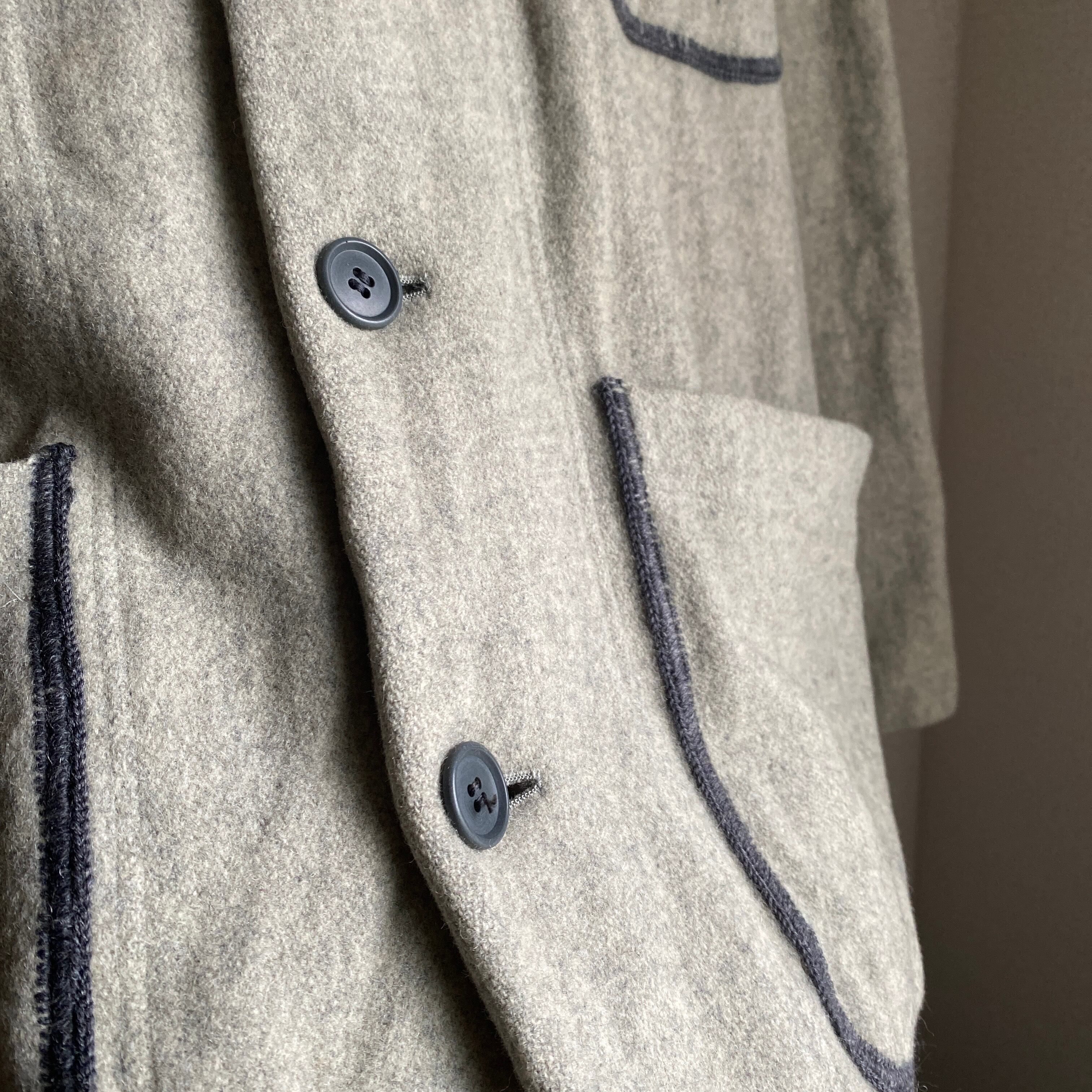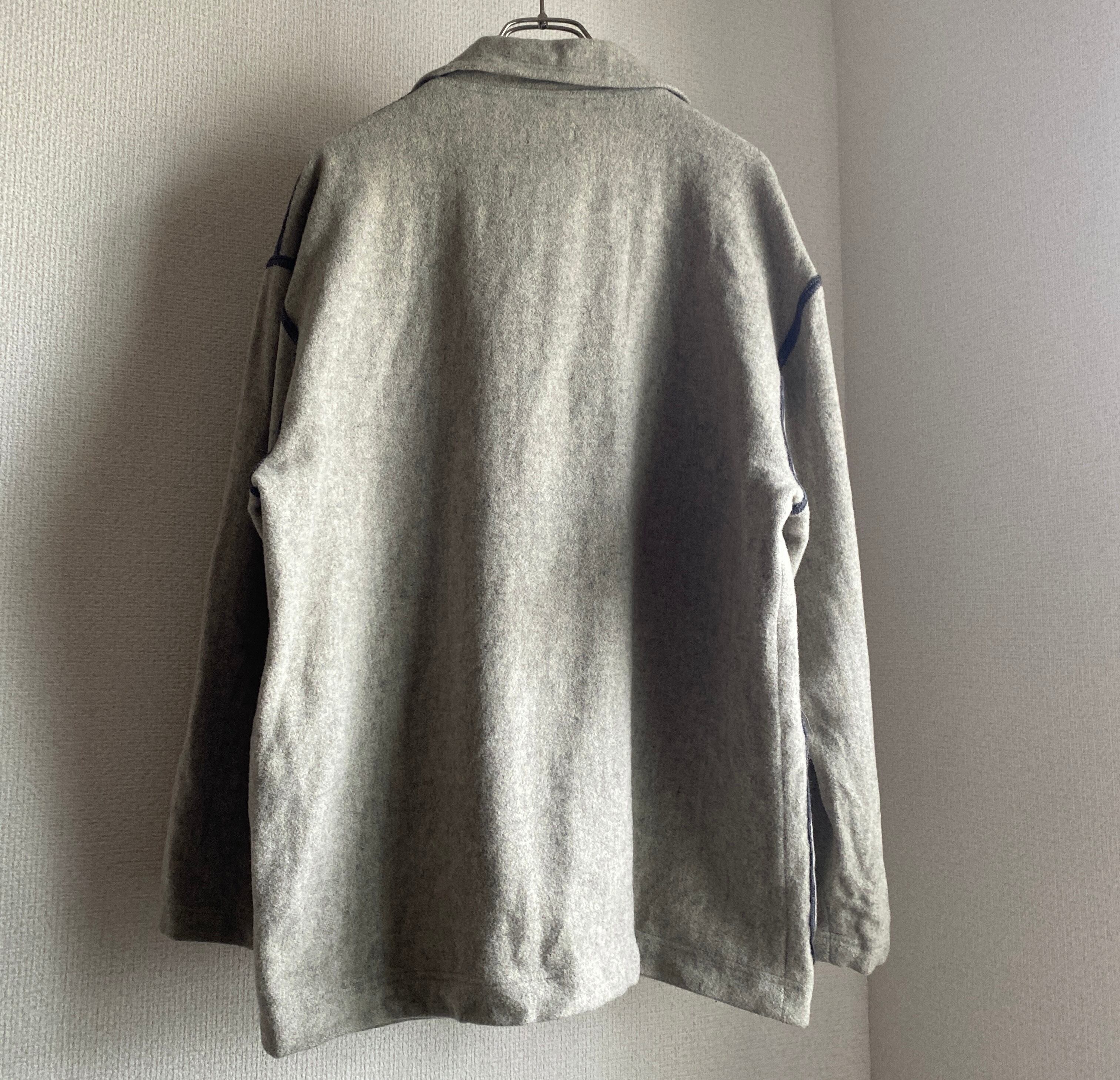 淡いグレーベージュ系の絶妙な色目に、柔らかなメルトン質感、ステッチ部分のアクセントや今風のルーズなシルエットが非常に素晴らしい一着。
