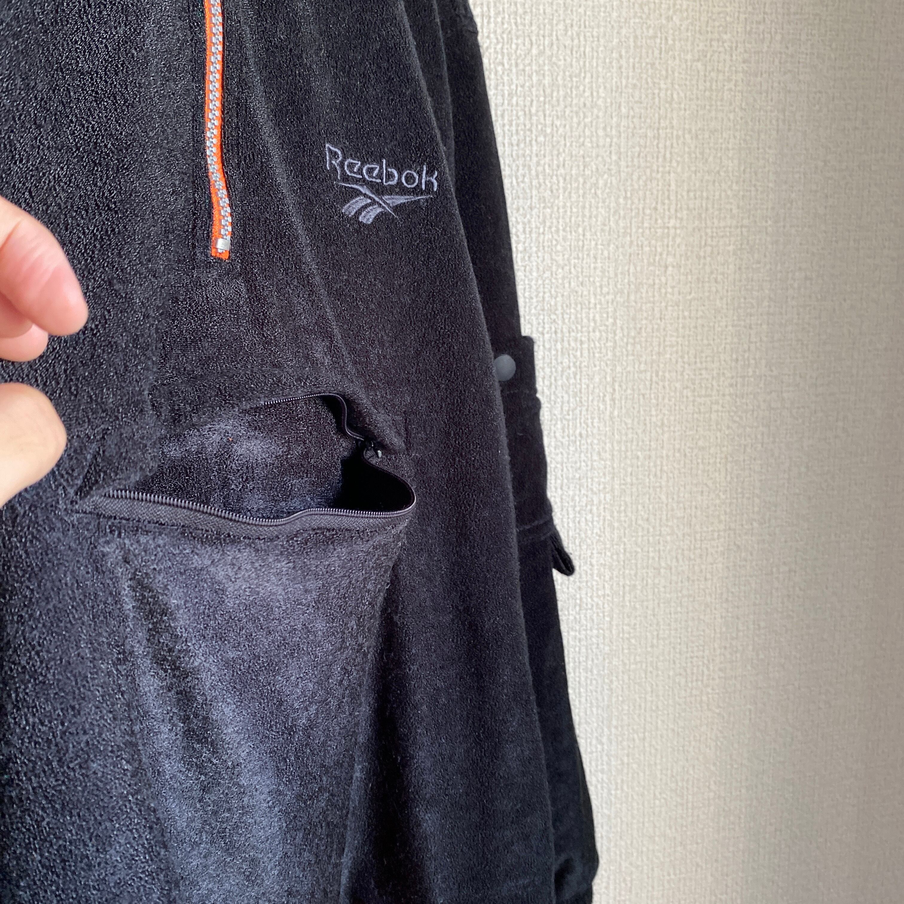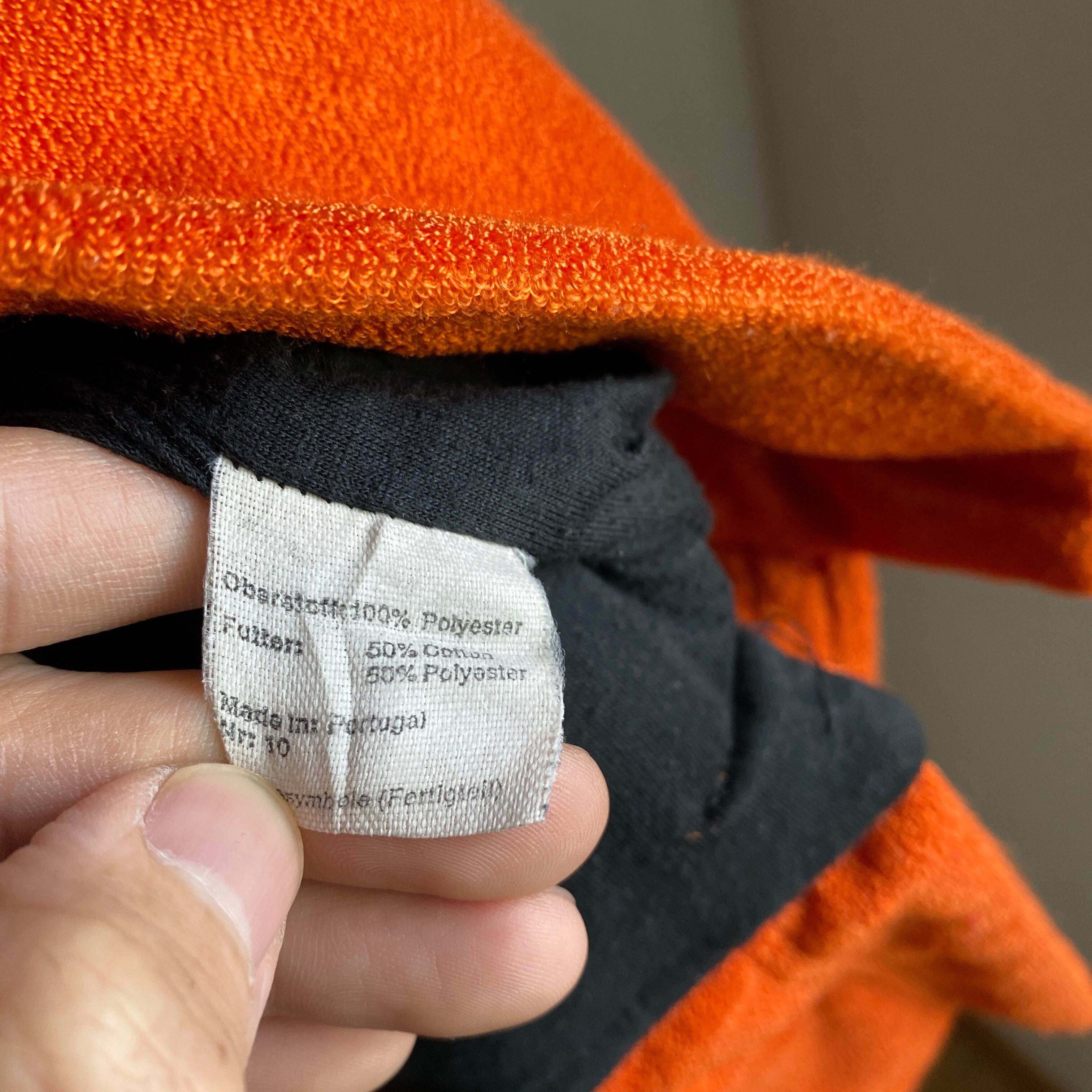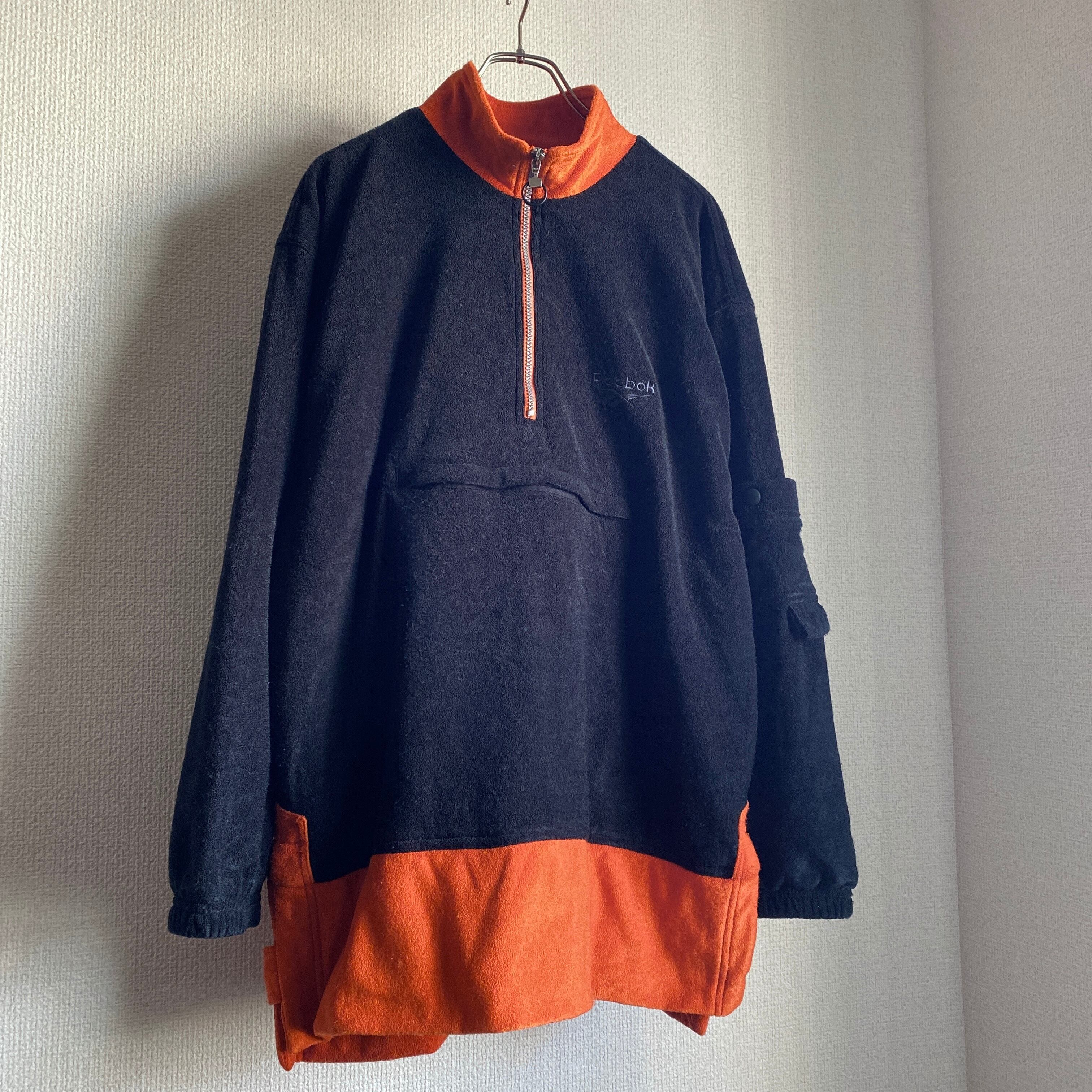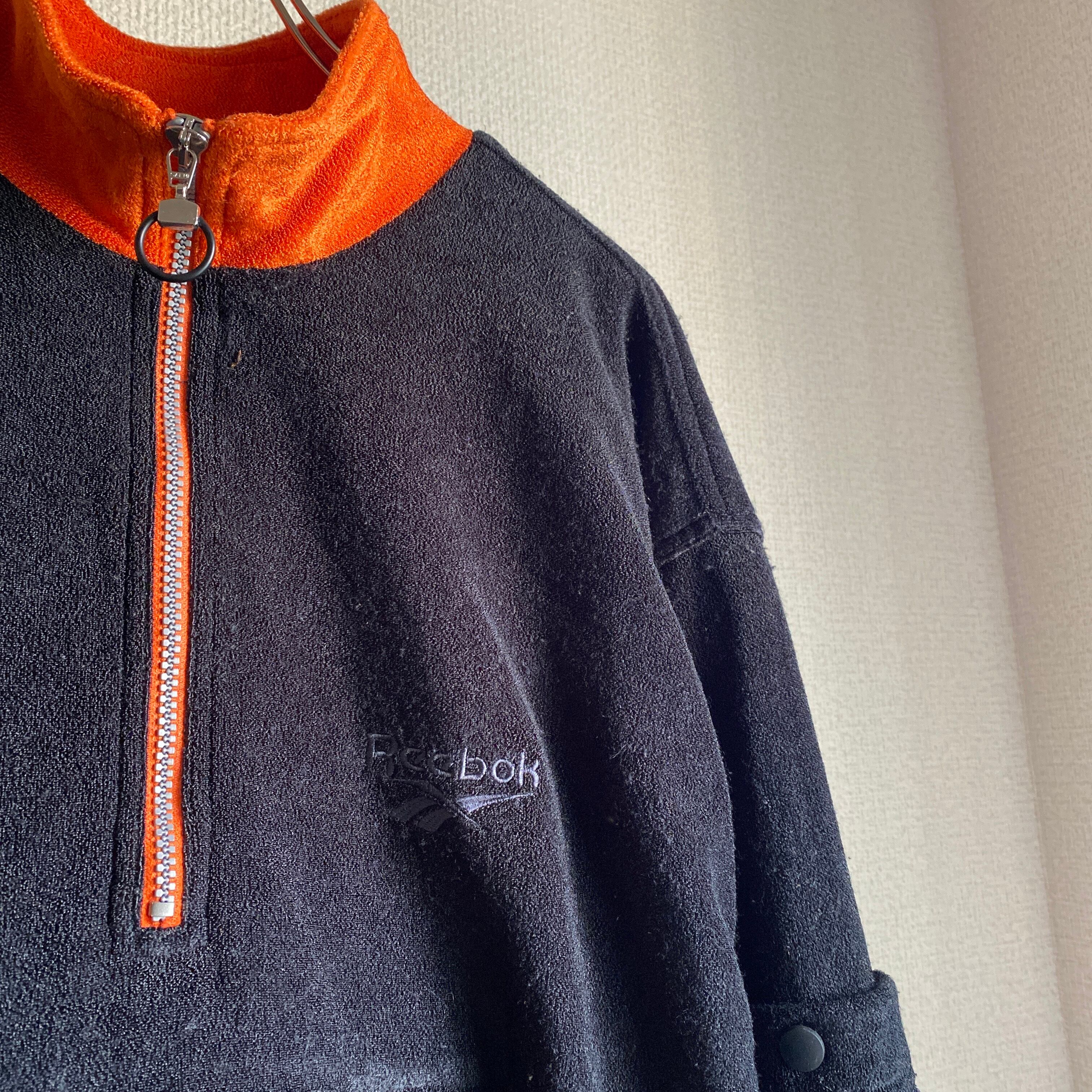 ブラックとオレンジのツートンカラーに、パイル編みの独特な素材感が目を惹く一着。