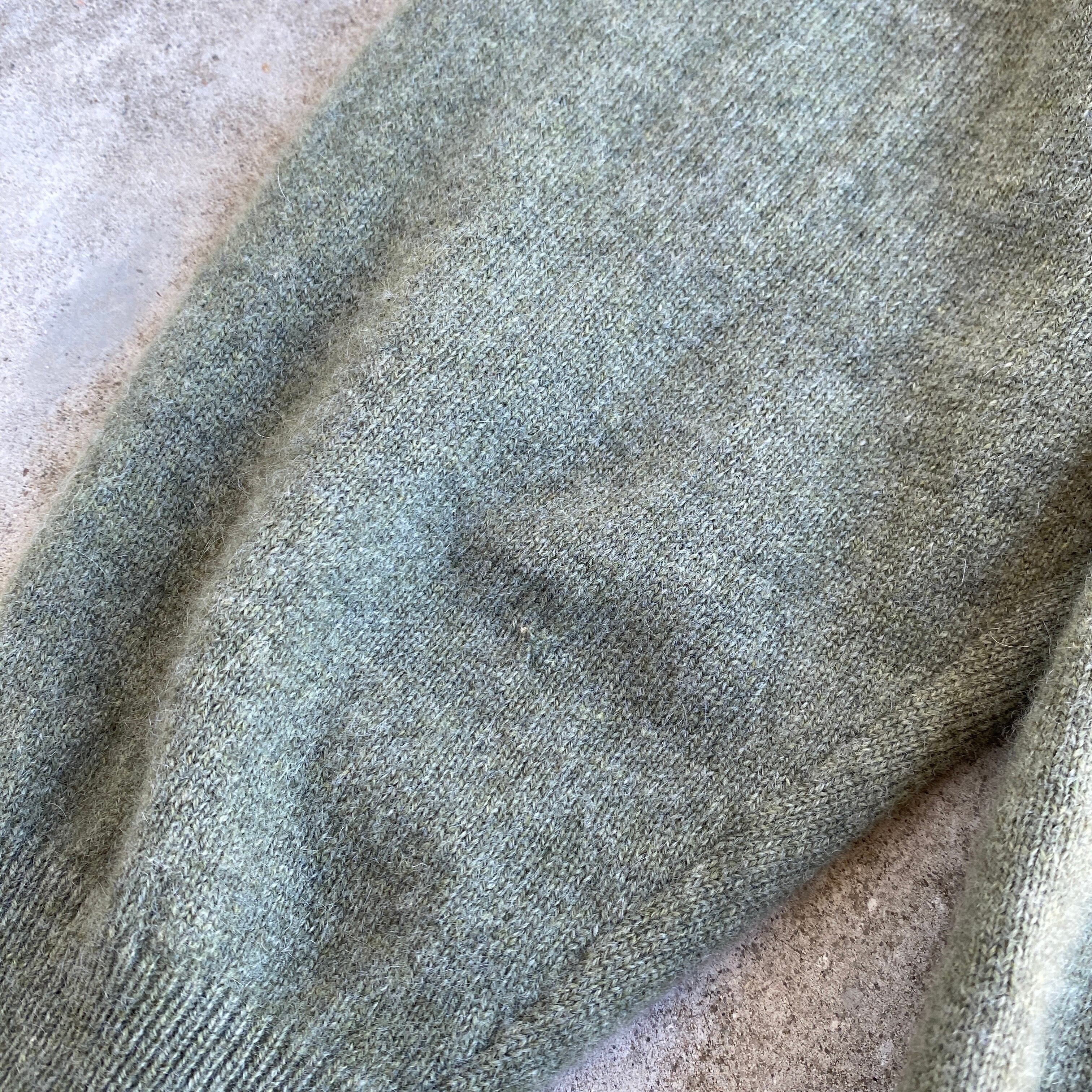 綺麗なペールグリーン系の色目に、フワッと柔らかな質感のカシミヤ100のニット素材が素晴らしい一着。
