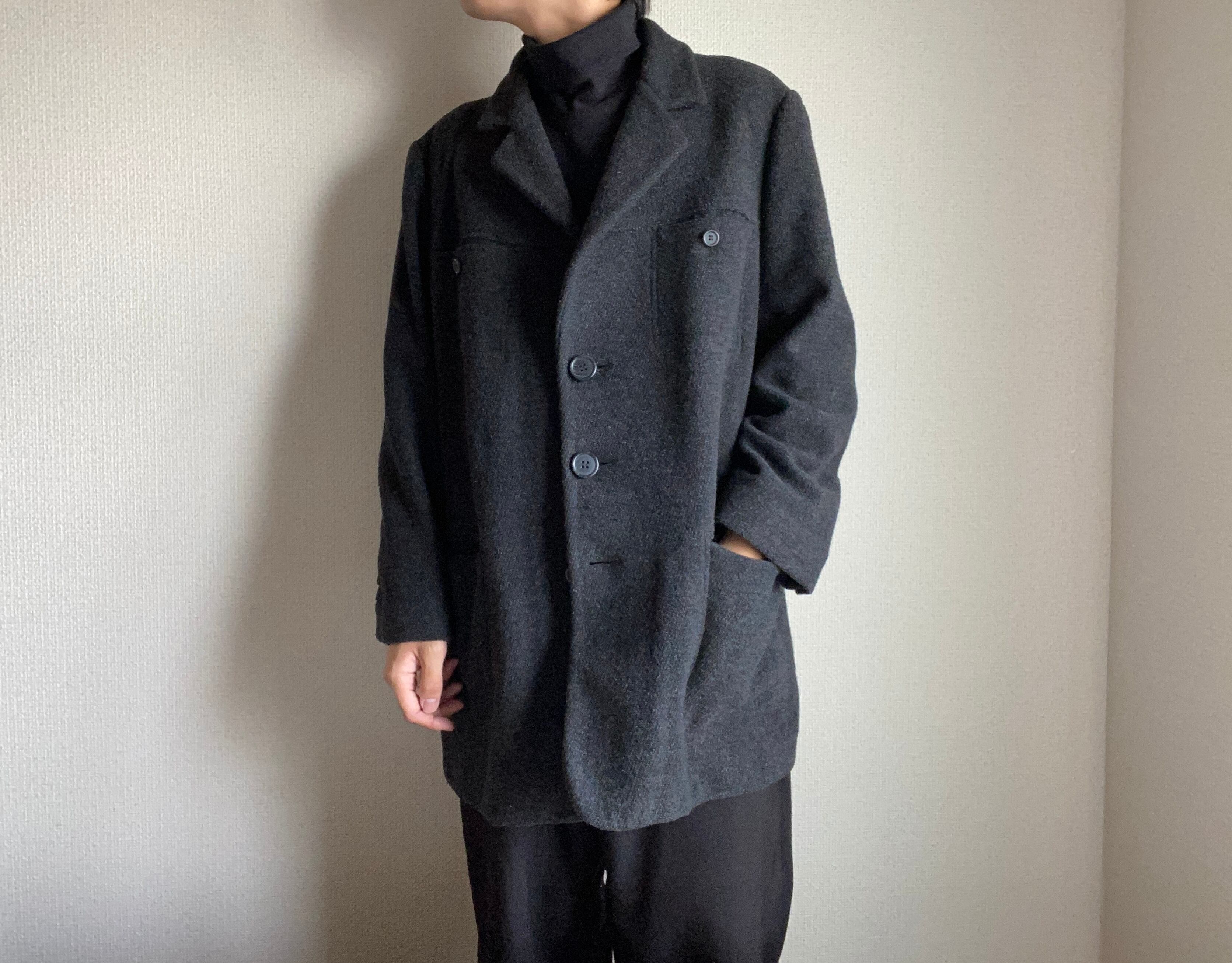 ミリタリーユニフォームなどをイメージさせるようなポケットデザイン、ややゆったりとしたシルエットや長めの着丈、肩あたりに入ったダーツによる丸みのあるフォルムなど、イタリアブランドらしいエレガントさがありながらも、どこか無骨で街着感のある野暮ったい雰囲気が最高です。