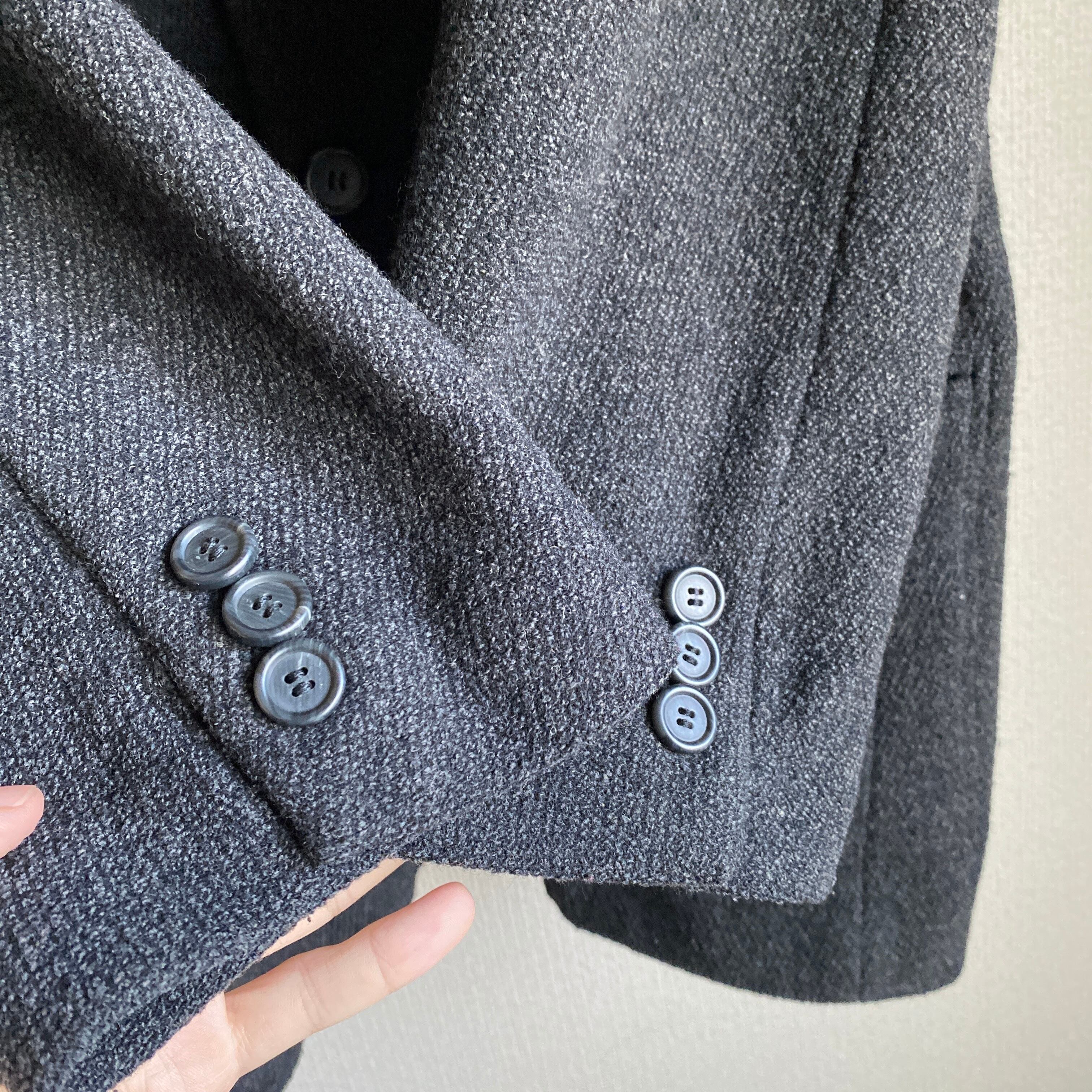 淡いダークグレーの色目に、肉厚でやや硬めのツイードの雰囲気が非常に素晴らしい一着。