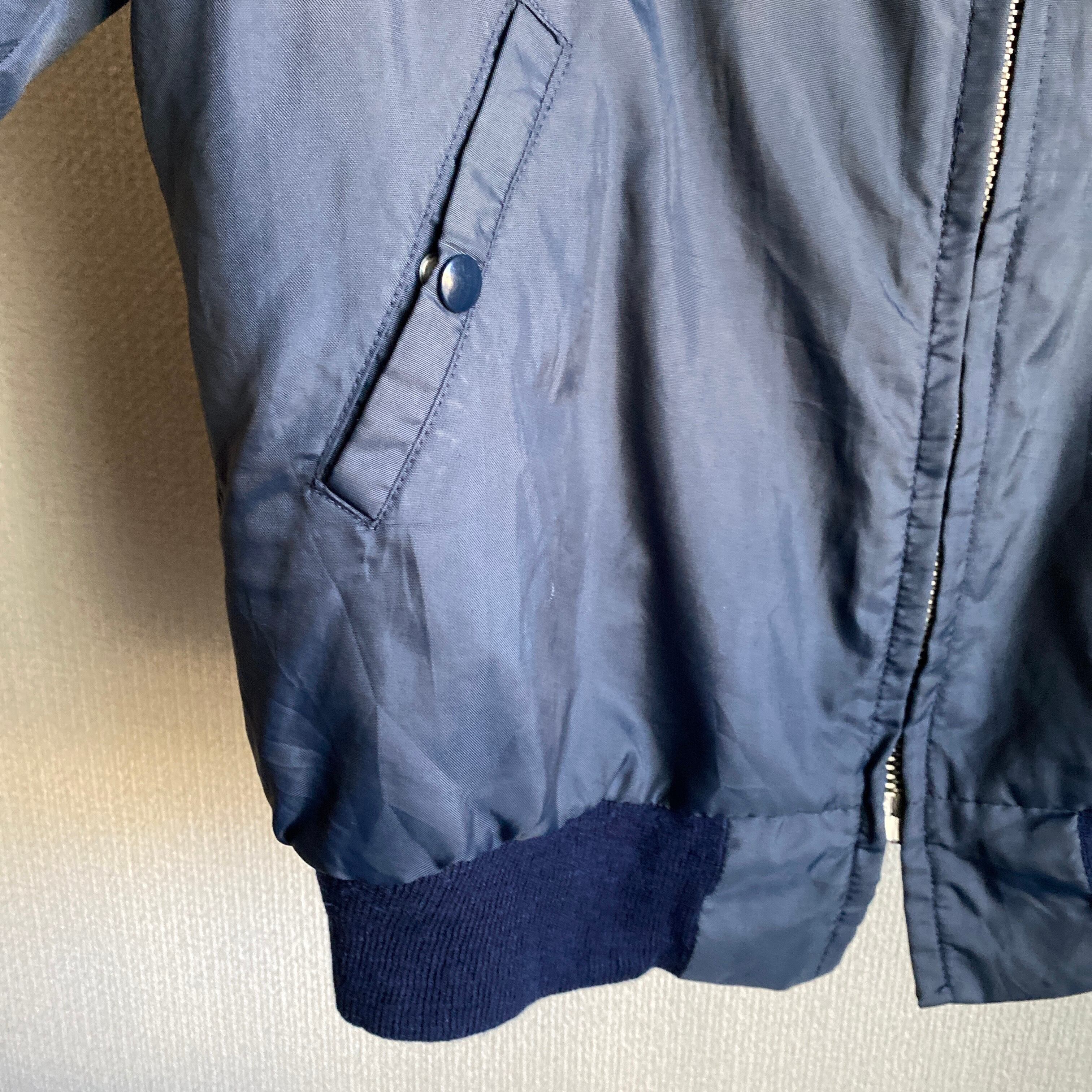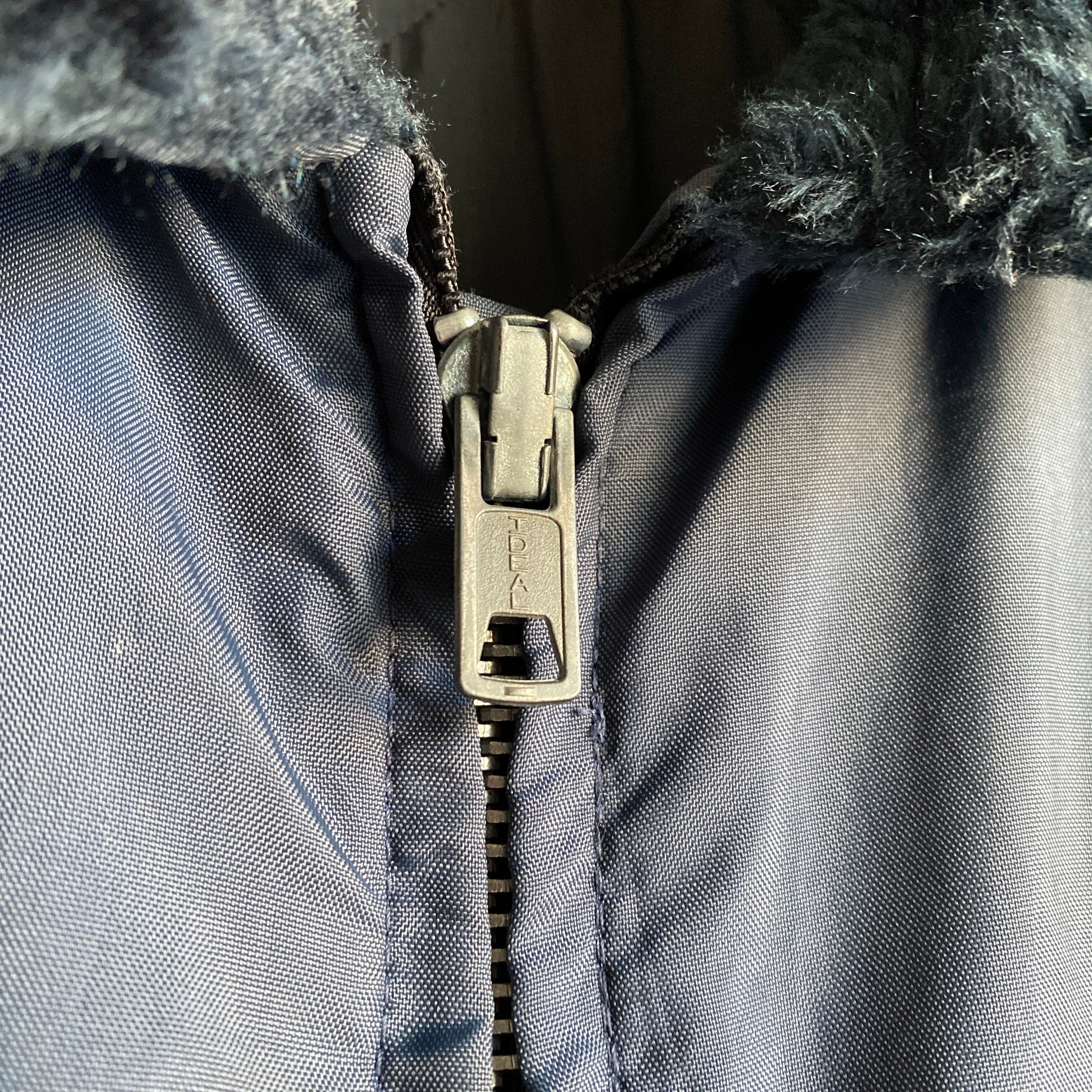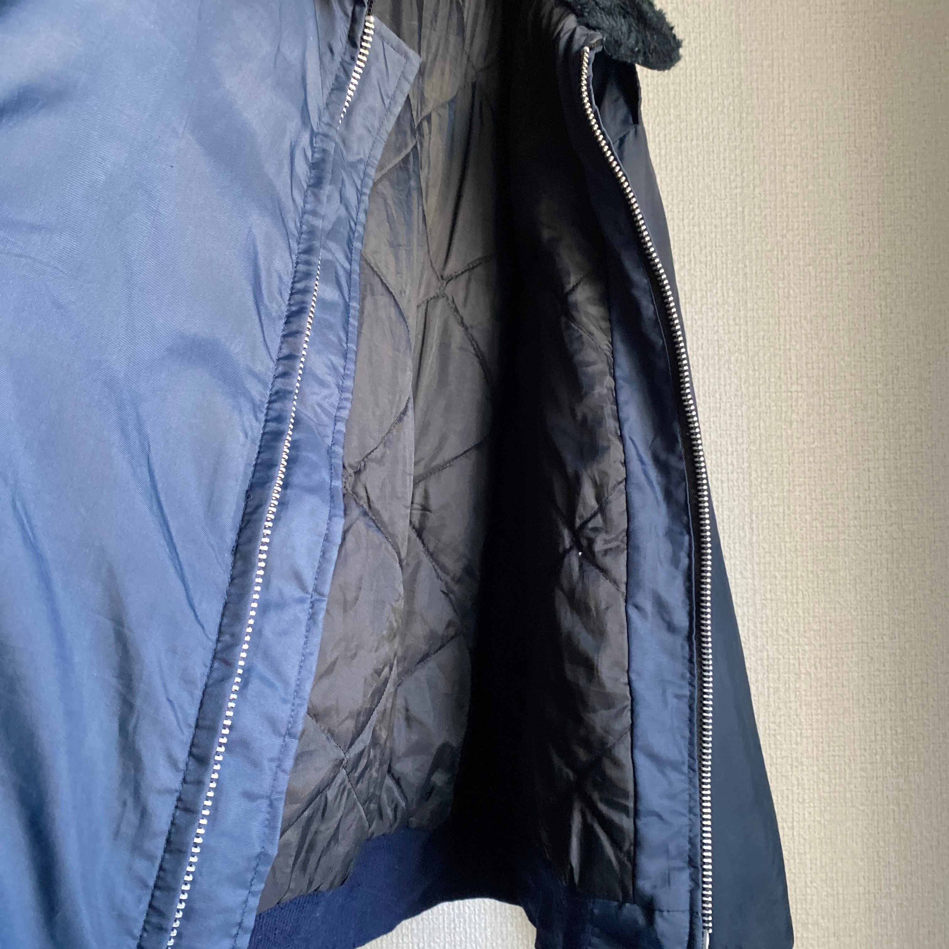 掠れたような光沢感の少ないネイビーカラーのナイロンボディに、襟ボア、IDEALのゴツめジッパーがスタイリッシュで非常に格好良い一着。