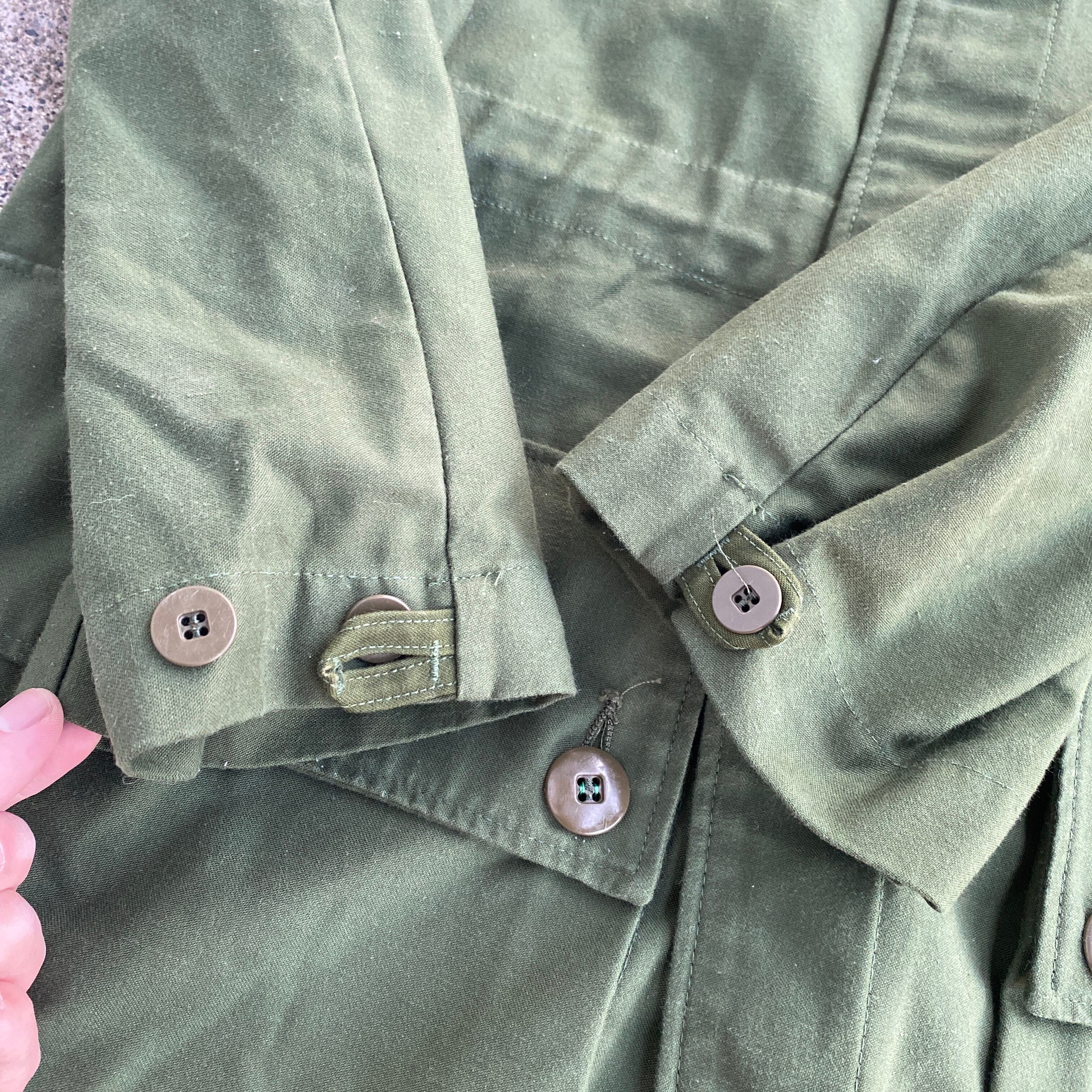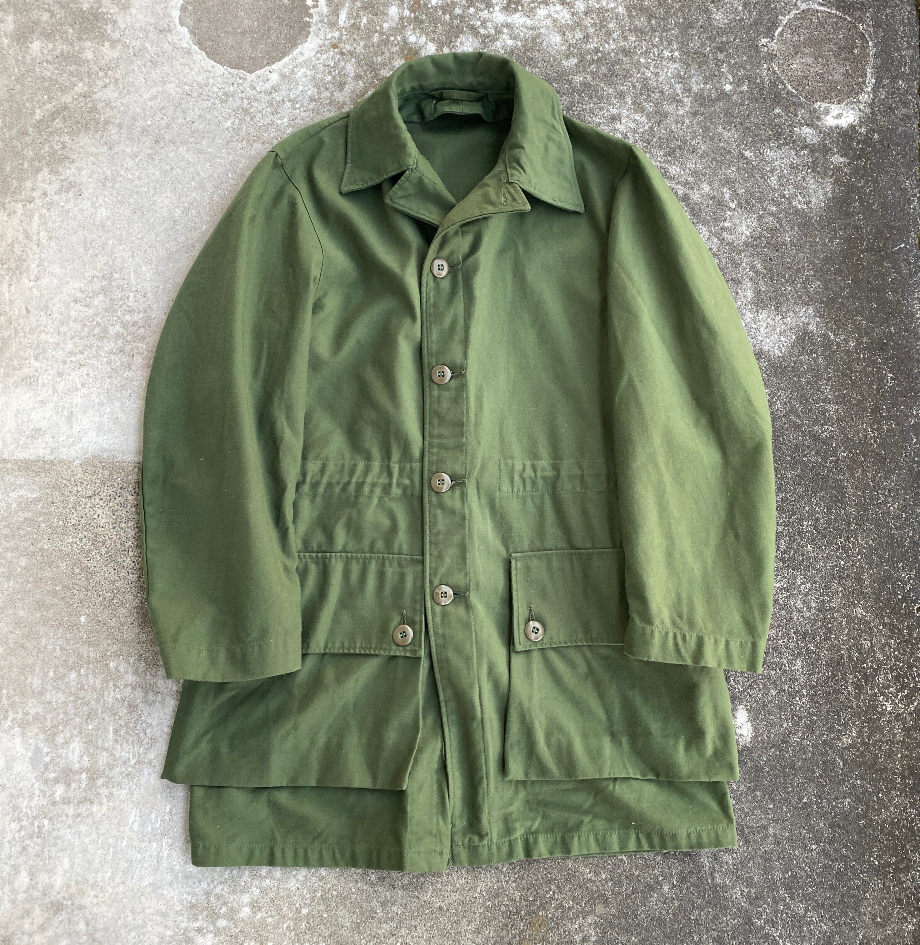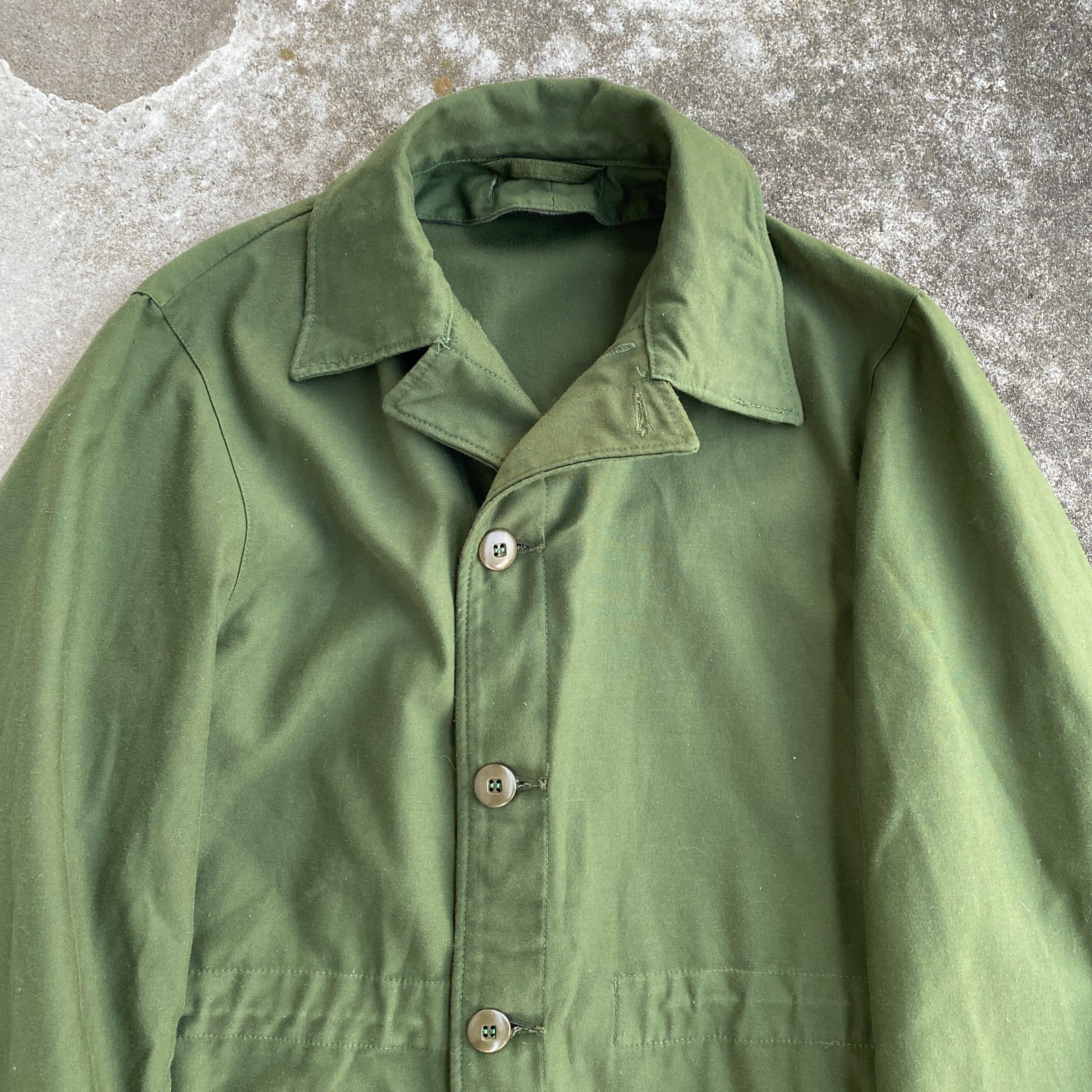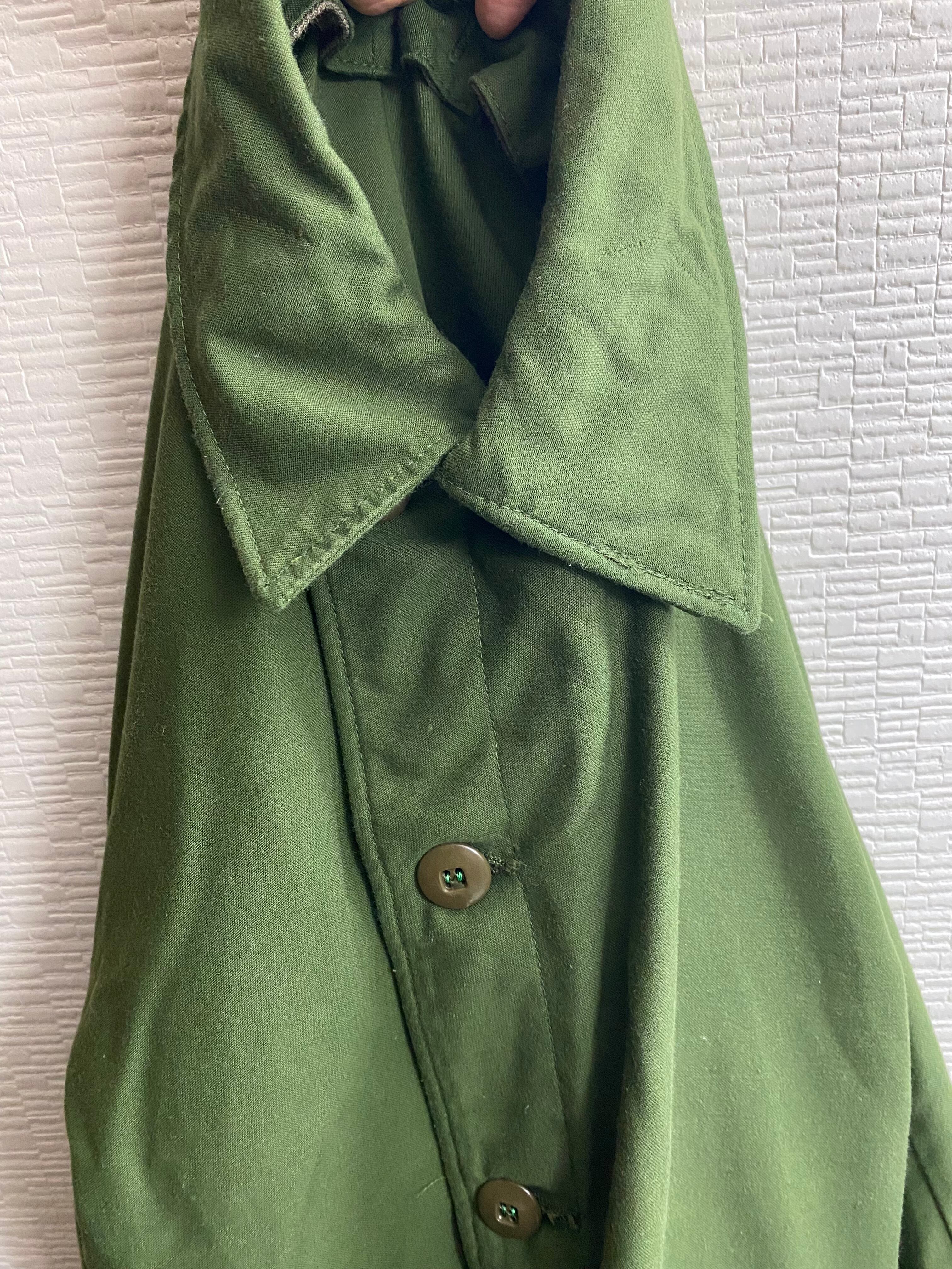 比較的近代ものではありますが、高密度に織られた程よい厚みのコットンボディに、程よくAライン気味な綺麗なシルエットはとても格好良く、色目もキツさのないナチュラルなオリーブカラーなので何でも合わせやすく重宝します。