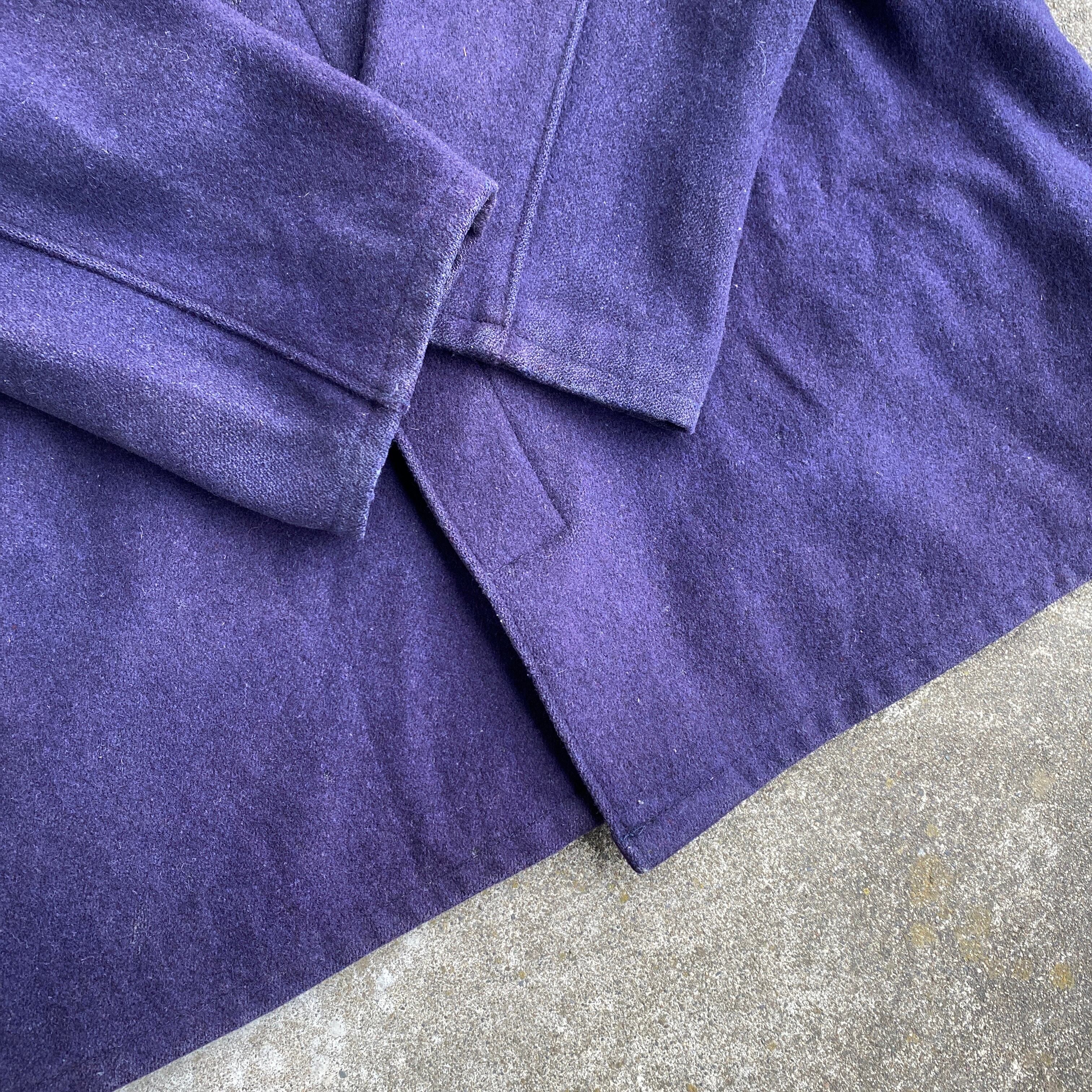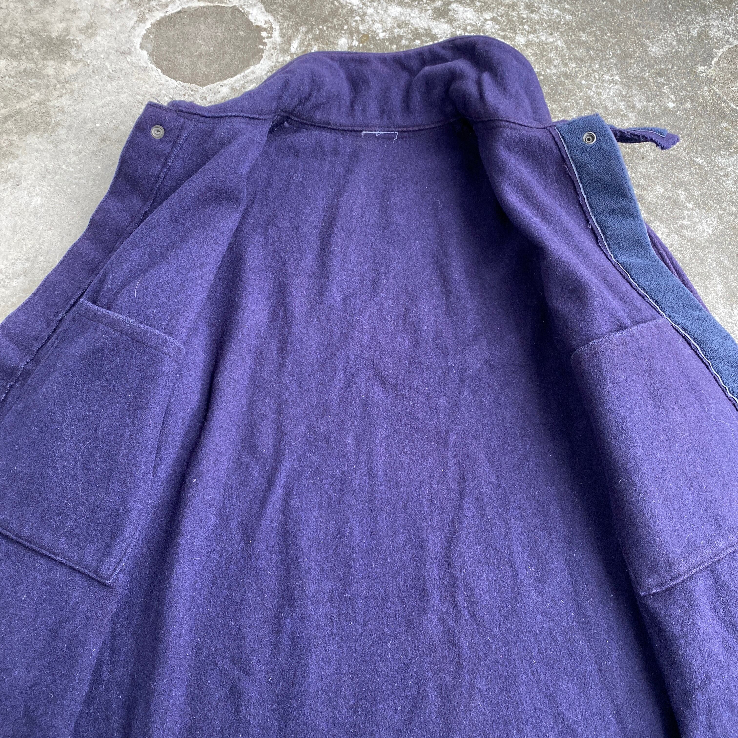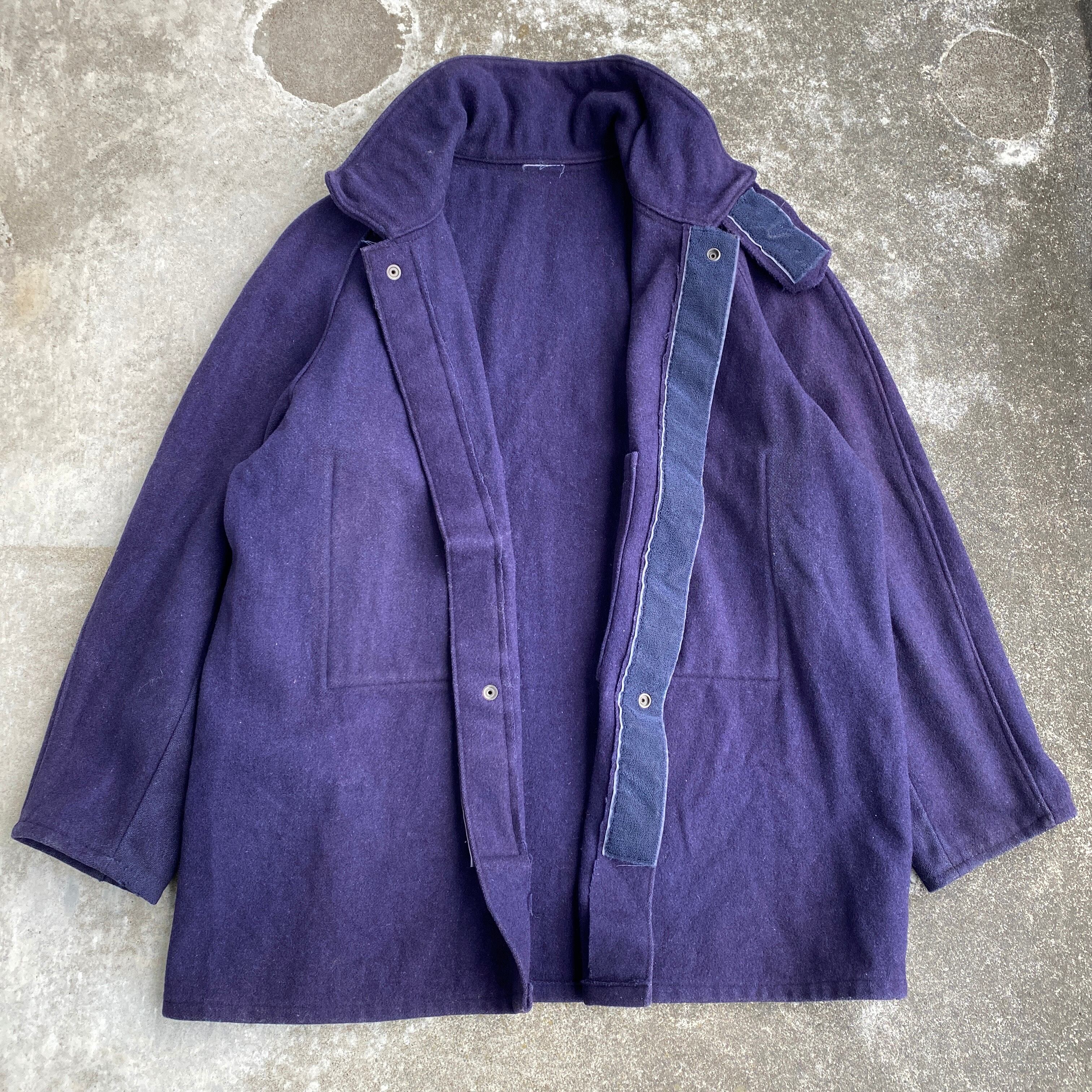 内タグやデザインからフランス軍ではないかと思われますが、色褪せた茄子紺カラーに程よく地厚なウールメルトン素材が雰囲気抜群の一着。