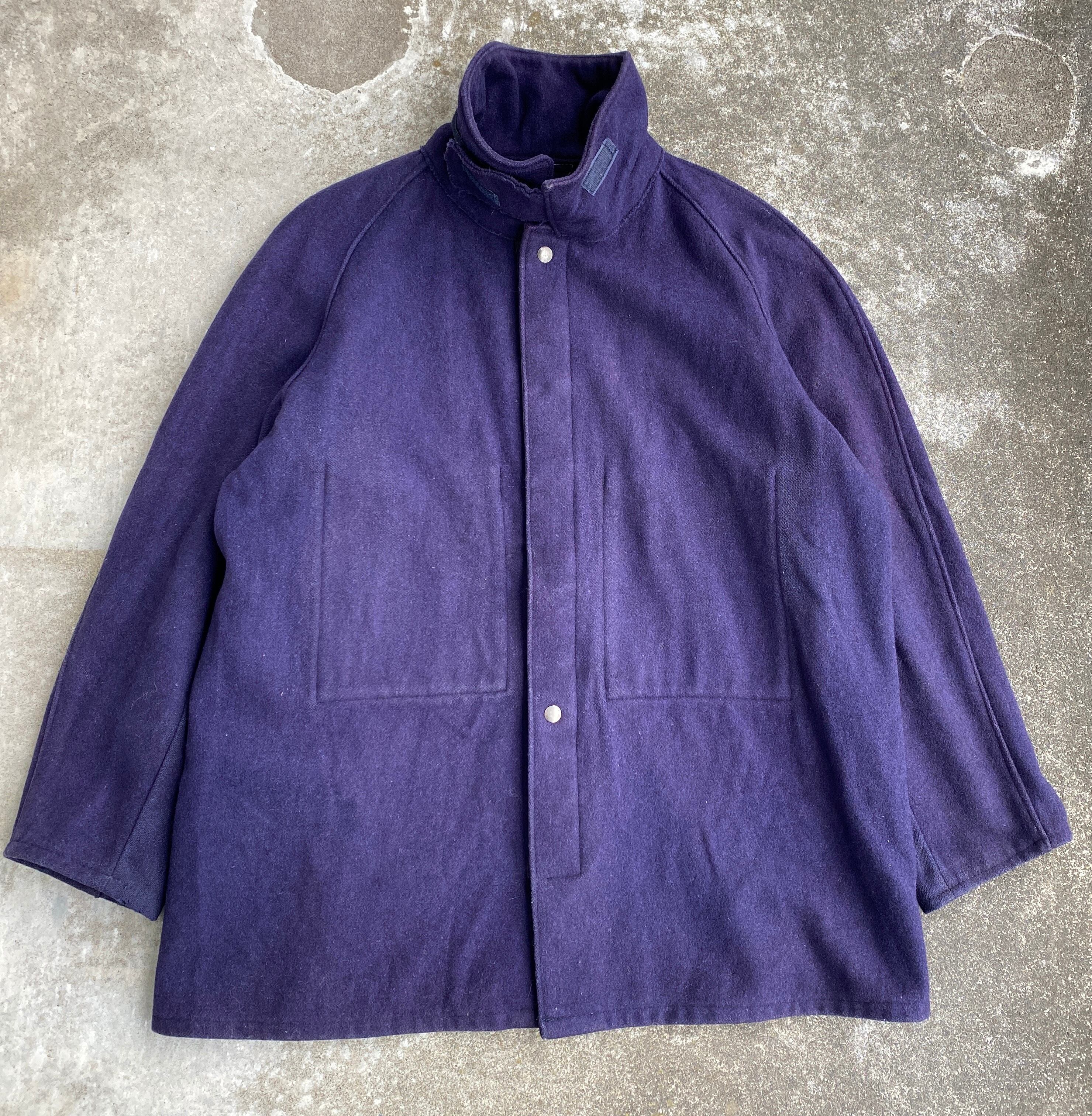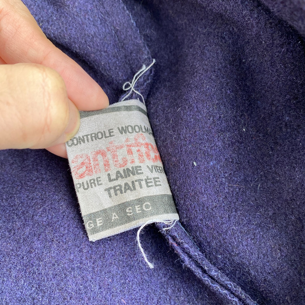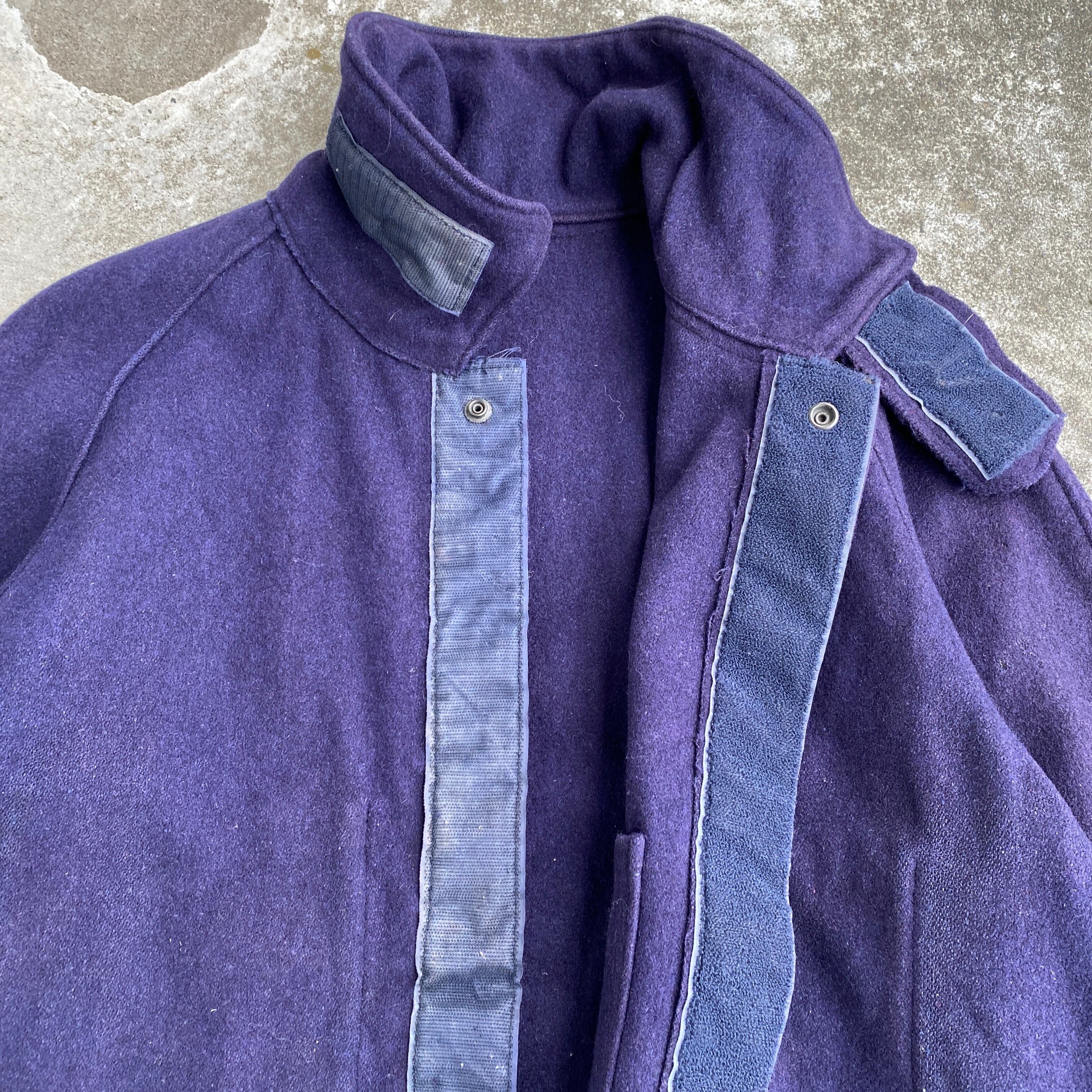 内タグやデザインからフランス軍ではないかと思われますが、色褪せた茄子紺カラーに程よく地厚なウールメルトン素材が雰囲気抜群の一着。