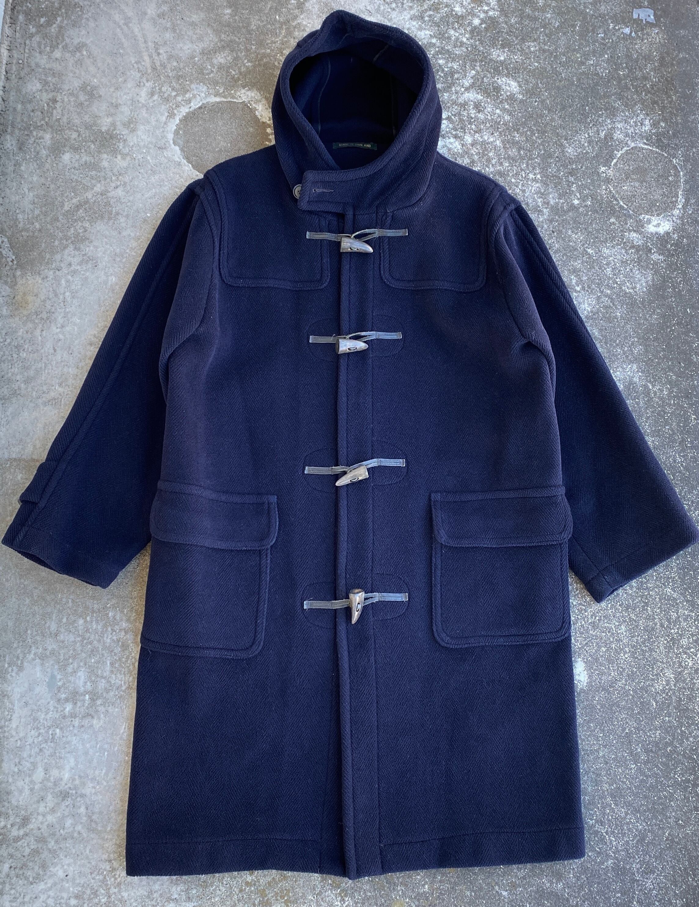 Hermesのダッフルにも採用されていた、Moorbrook社の重厚なヘリンボーンウールを使用した、イギリス製のダッフルコートになります。