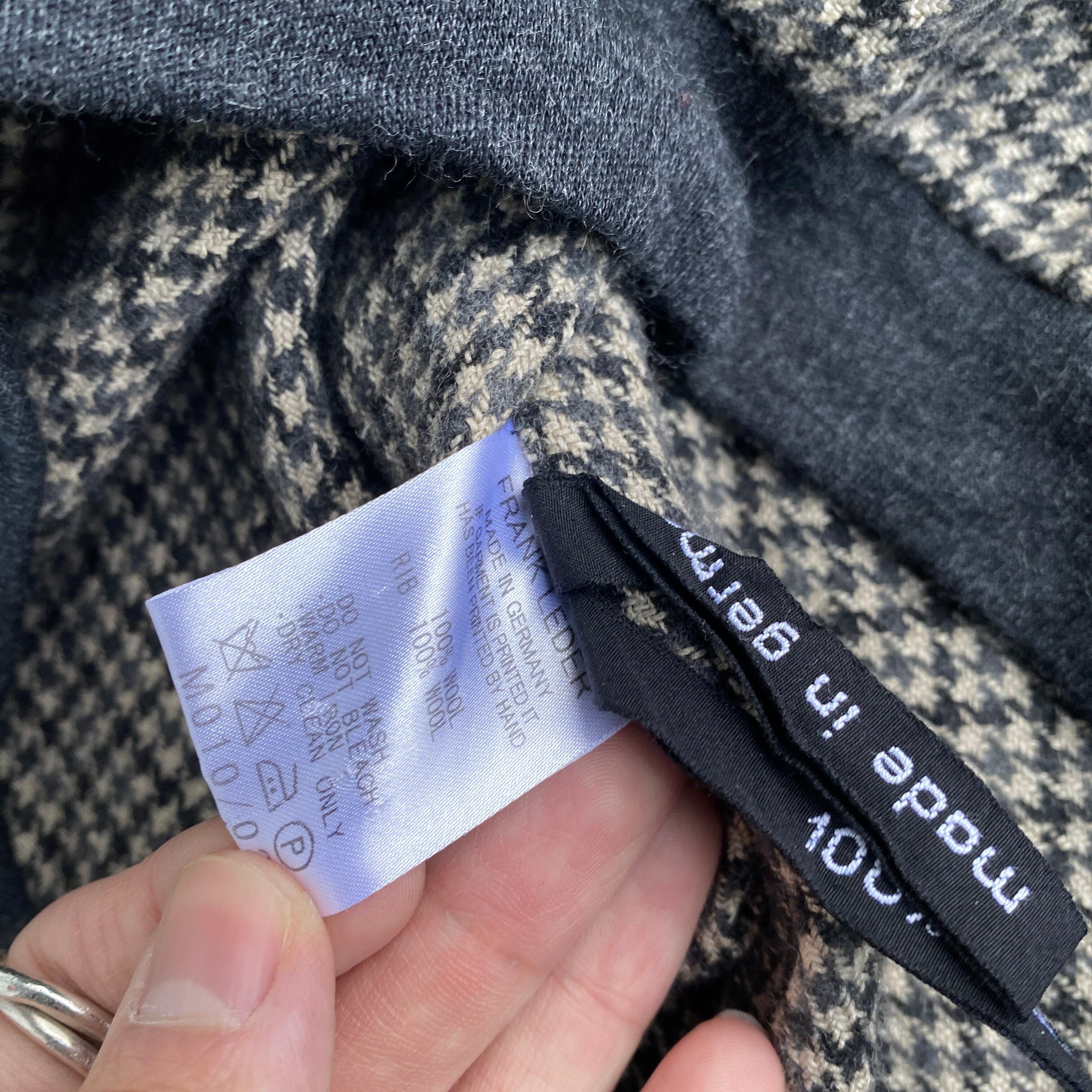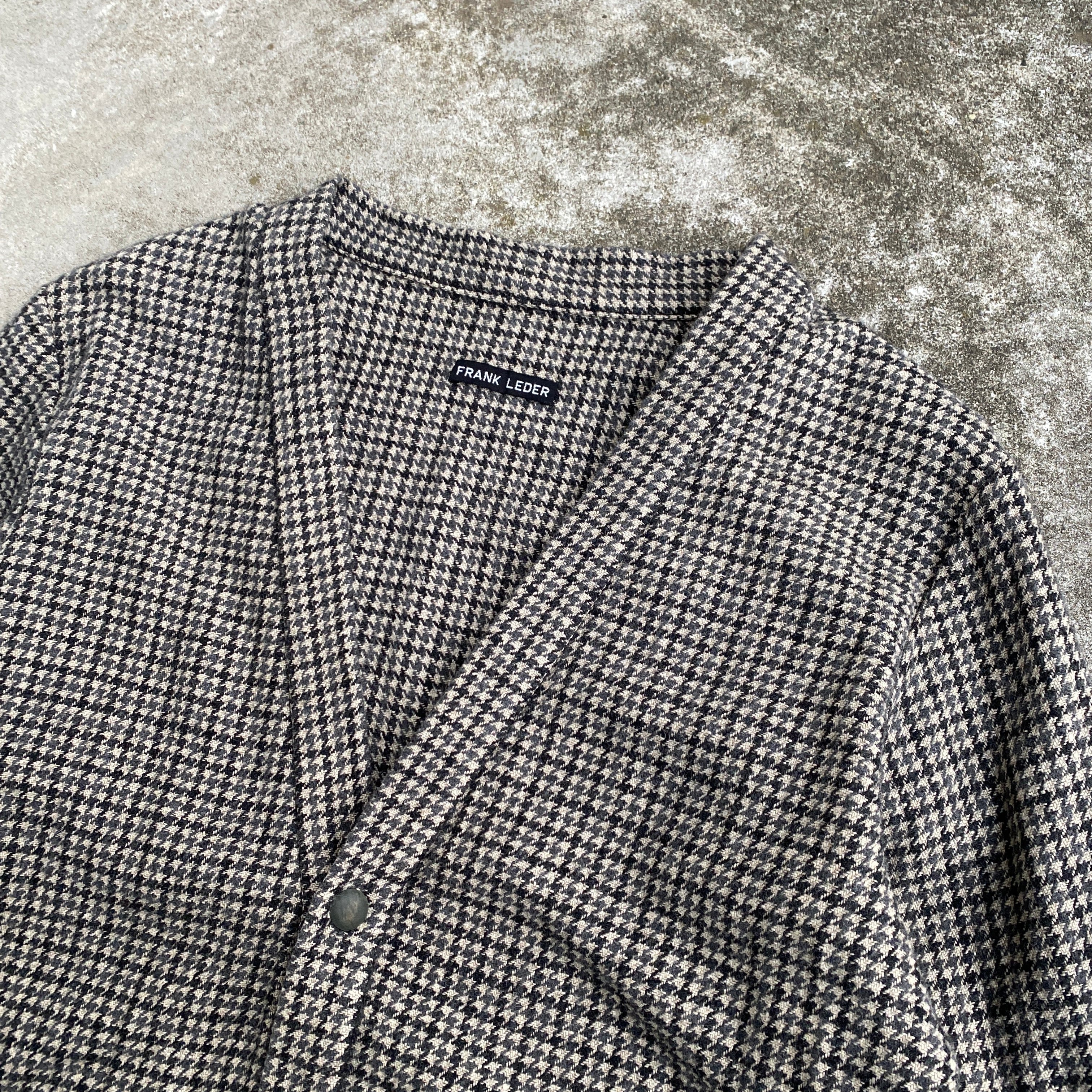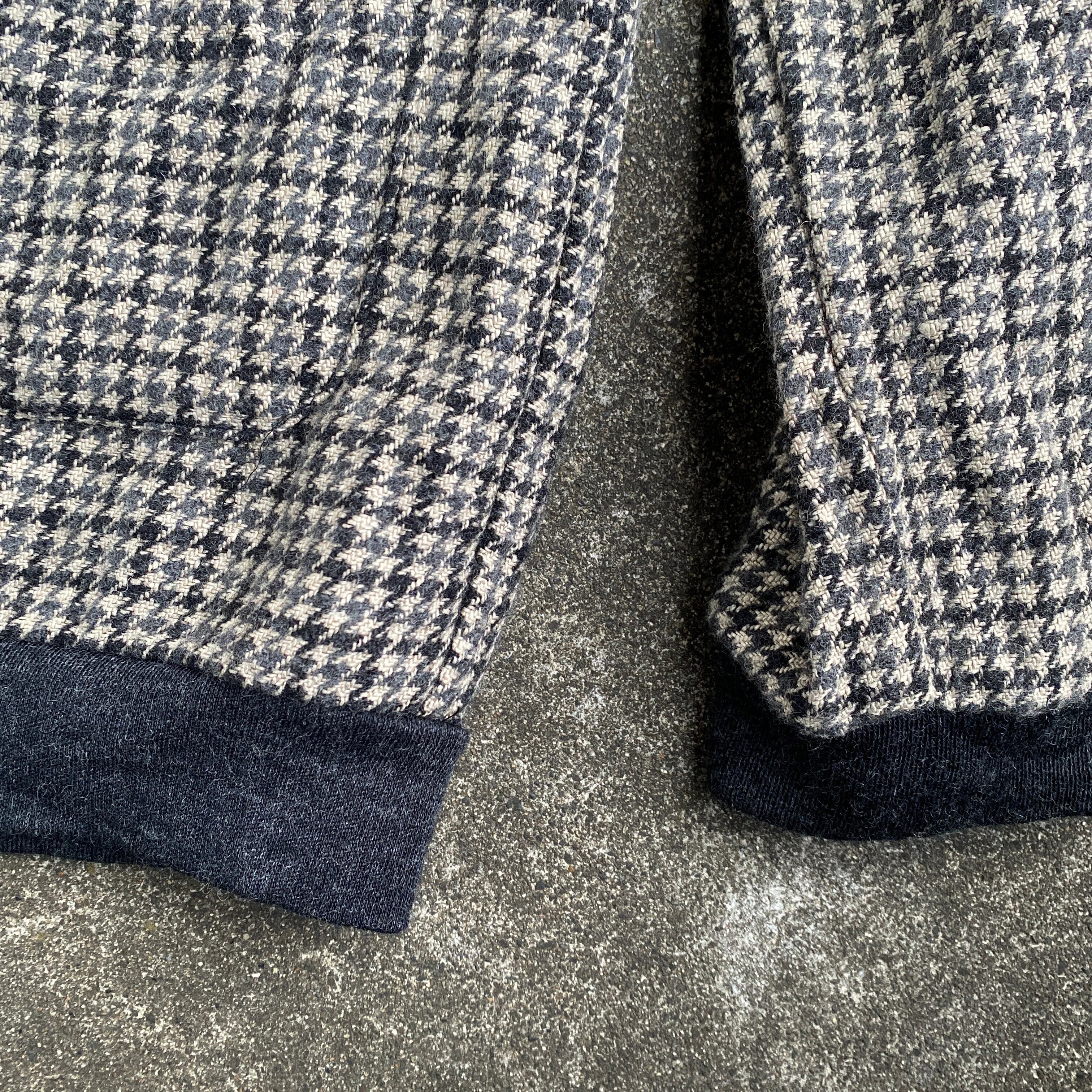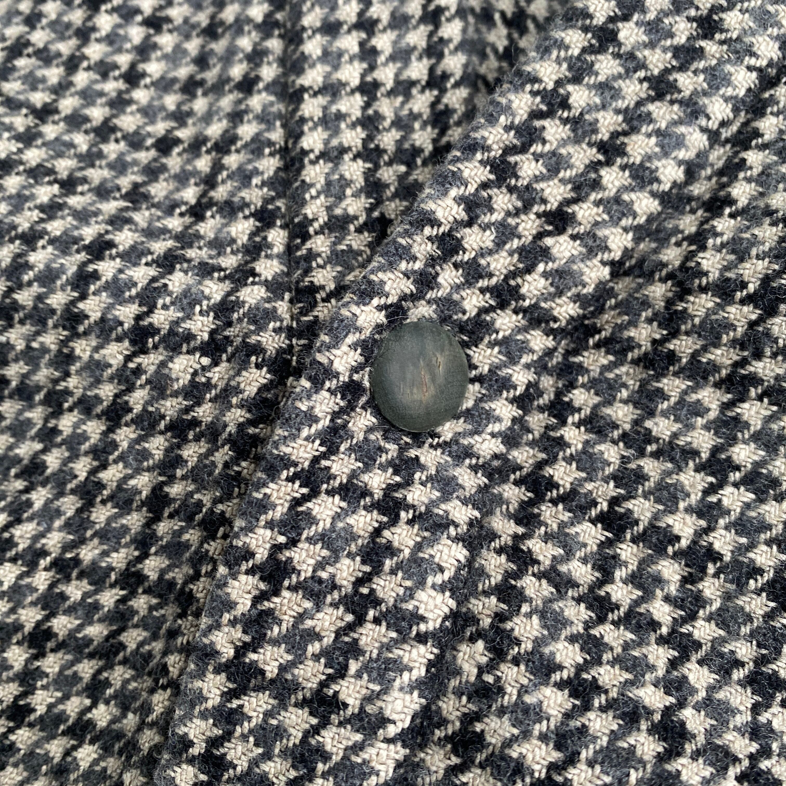 上質な梳毛ウールのハイゲージニットに、ブラック×グレー×ベージュの落ち着いた千鳥柄、ヴィンテージボタンの雰囲気が非常にかわいい一着。