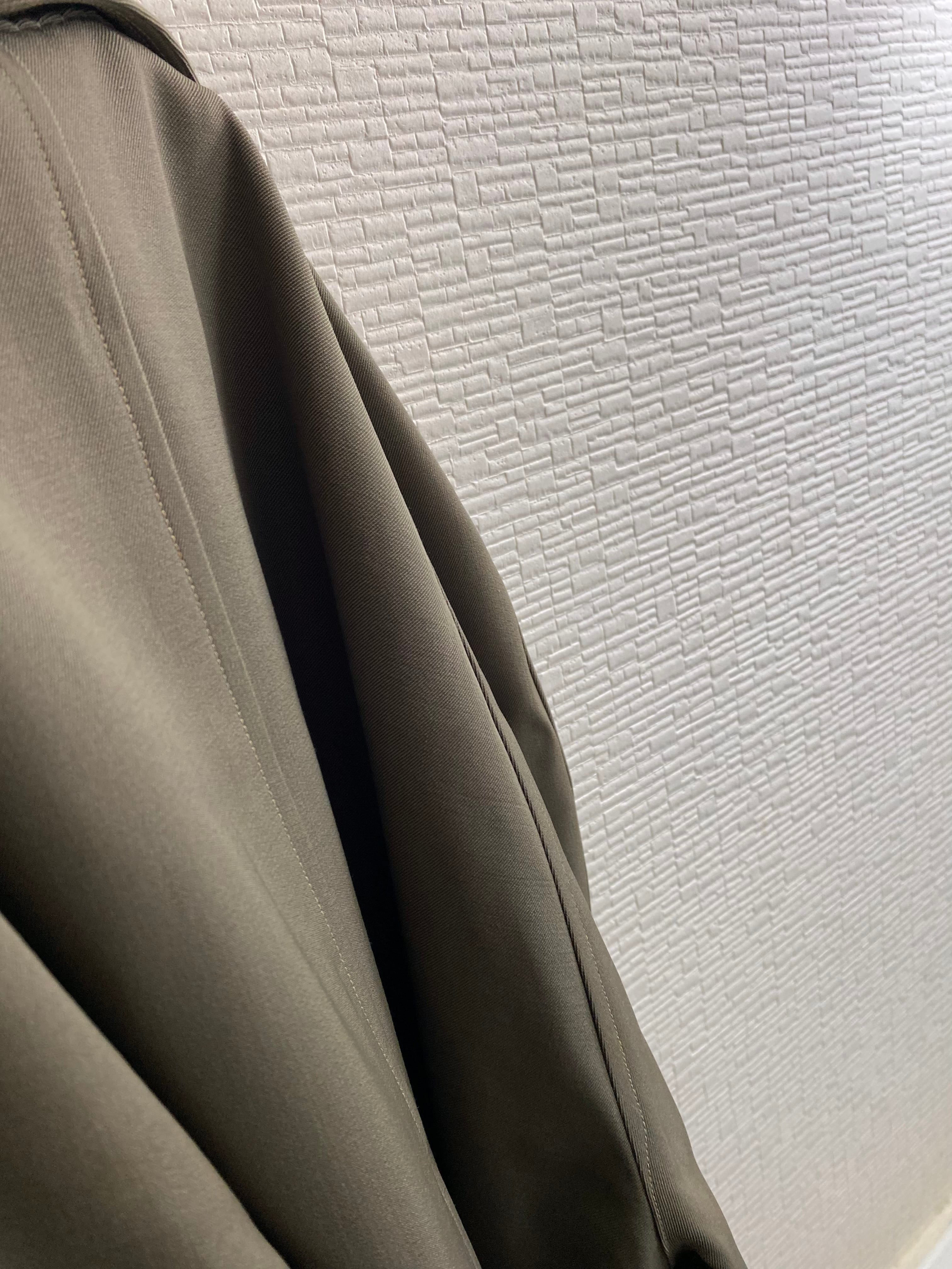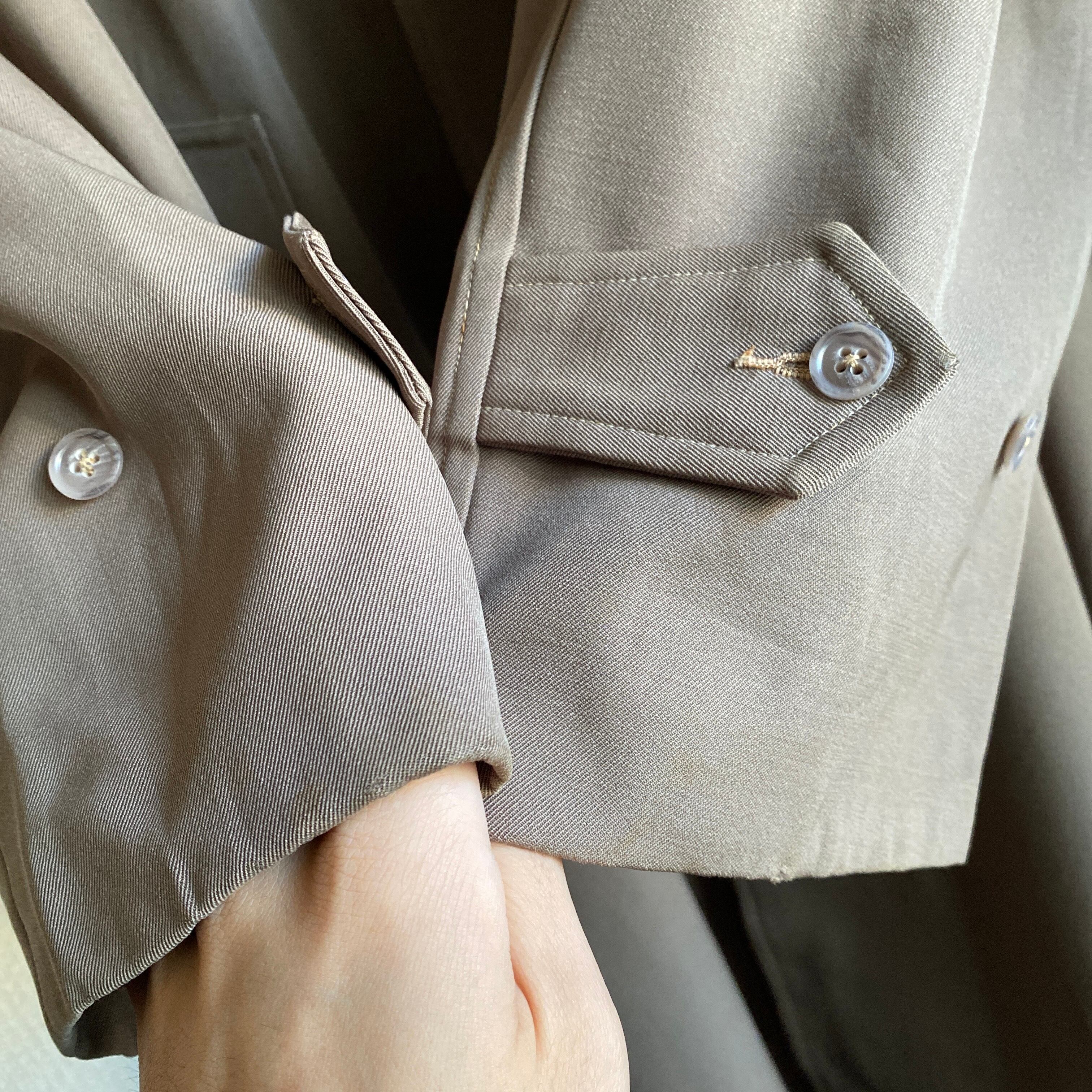 オリーブとベージュを混ぜたような絶妙な色目(画像11が一番近いです)と、この年代特有のギュッと目の詰まった上質なウールギャバ素材が素晴らしい一着。
