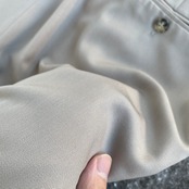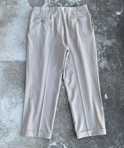 ウエスト、ワタリ付近のゆとりのあるパターン、生地のとろみから生まれる歩いた時のドレープ、美しいグレージュ系の色目は本当に素晴らしいです。