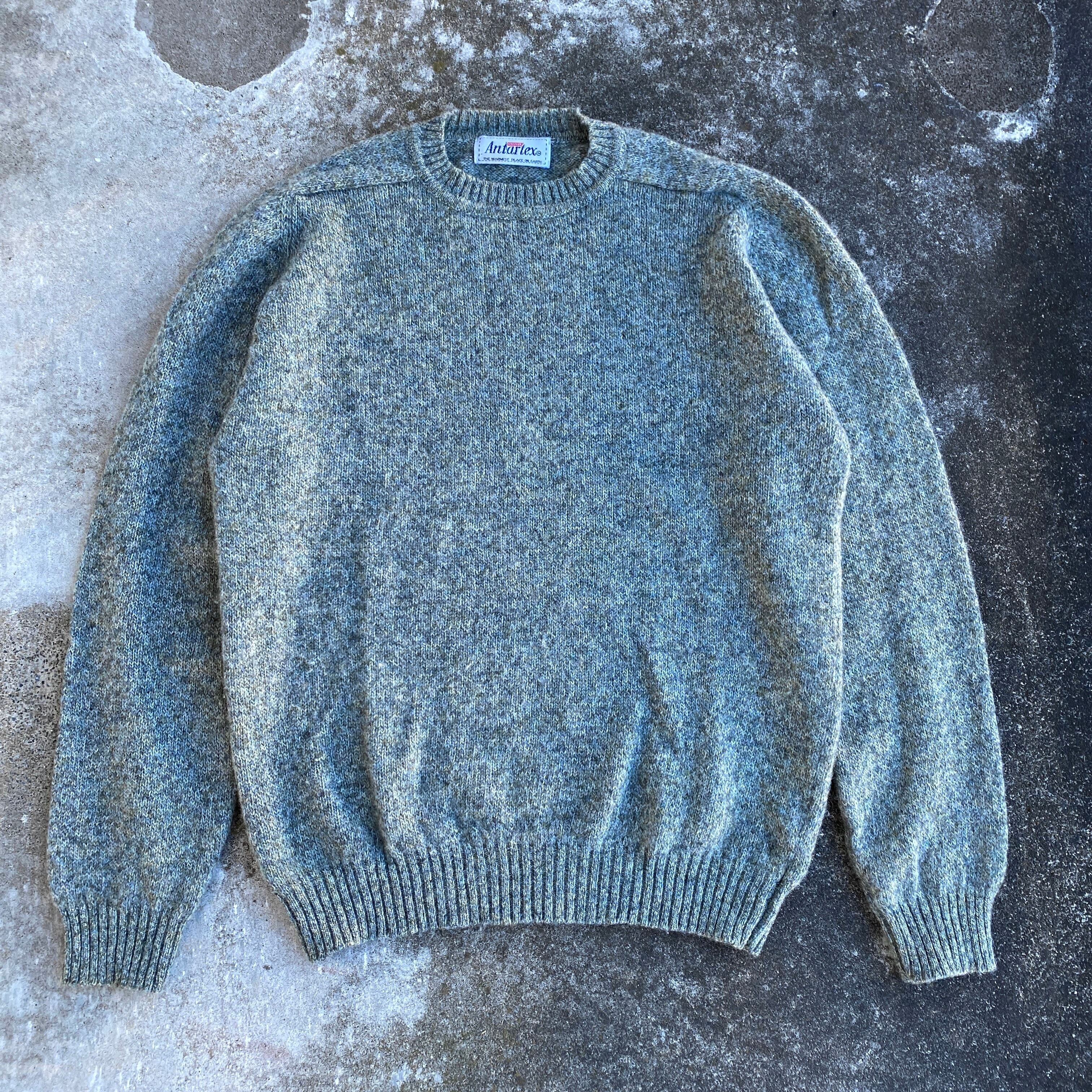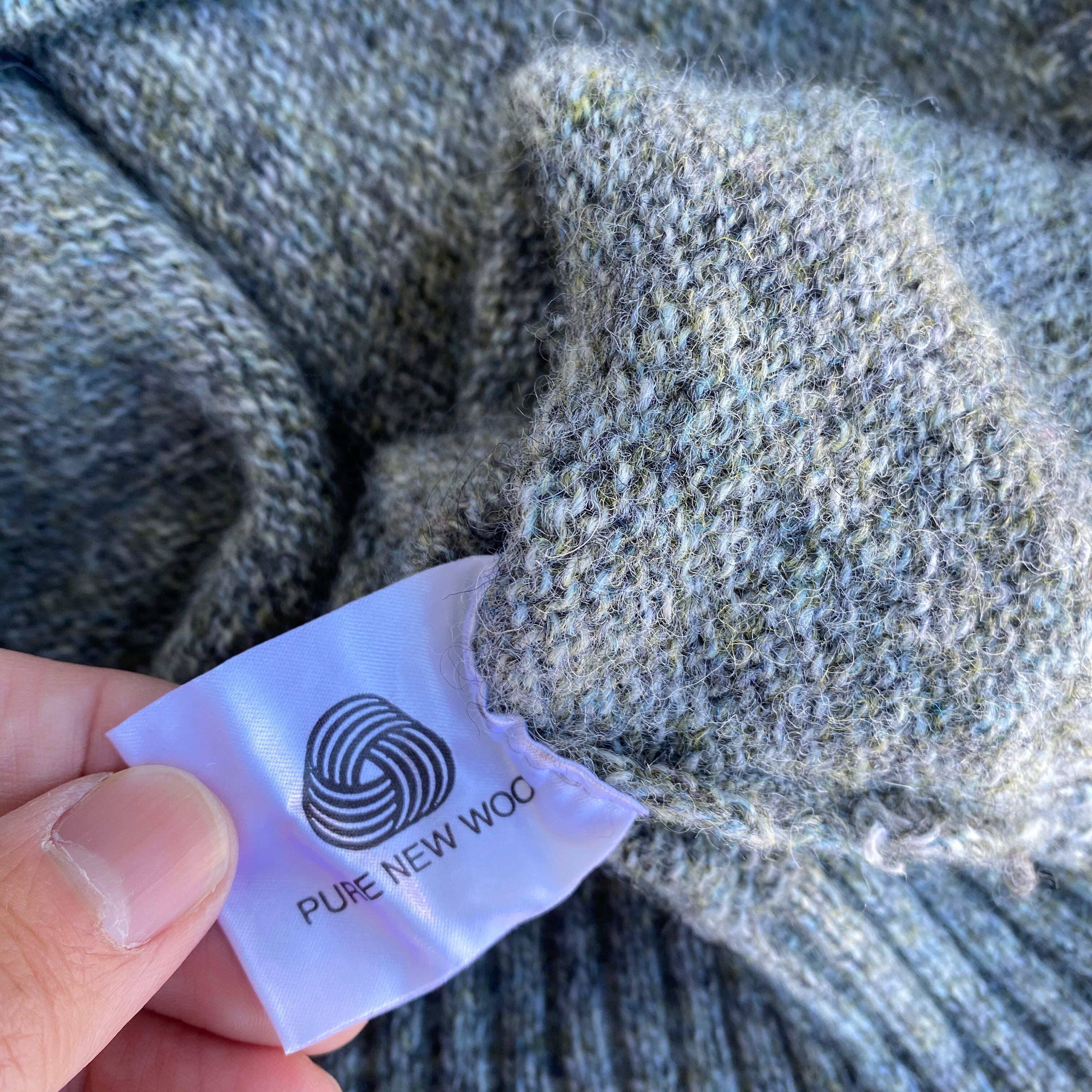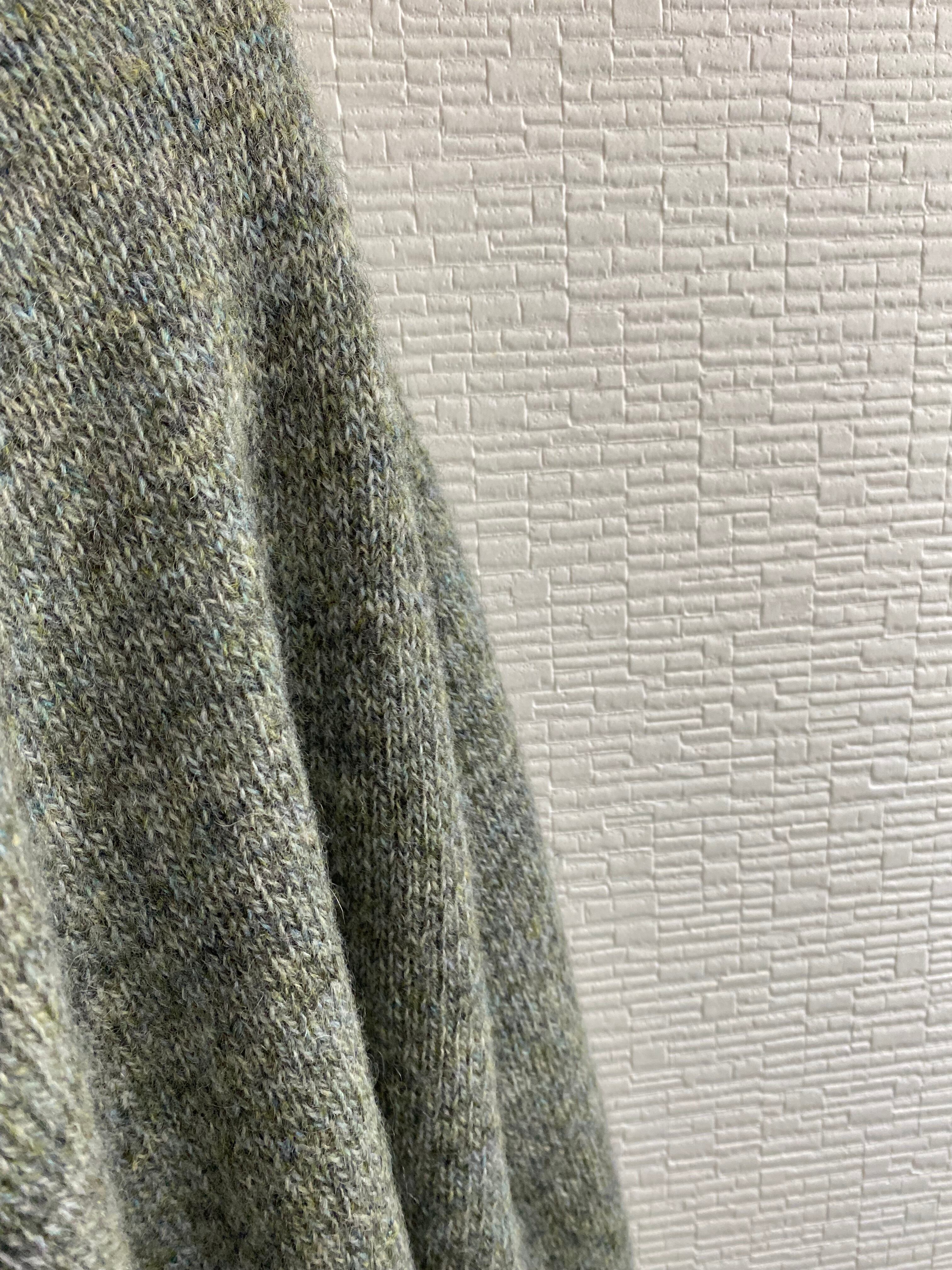 シェットランドウールのような、サクッとした風合いの手触りの良いニット素材に、さまざまな色が混ざった色目(画像7参照)が大変素晴らしい一着。