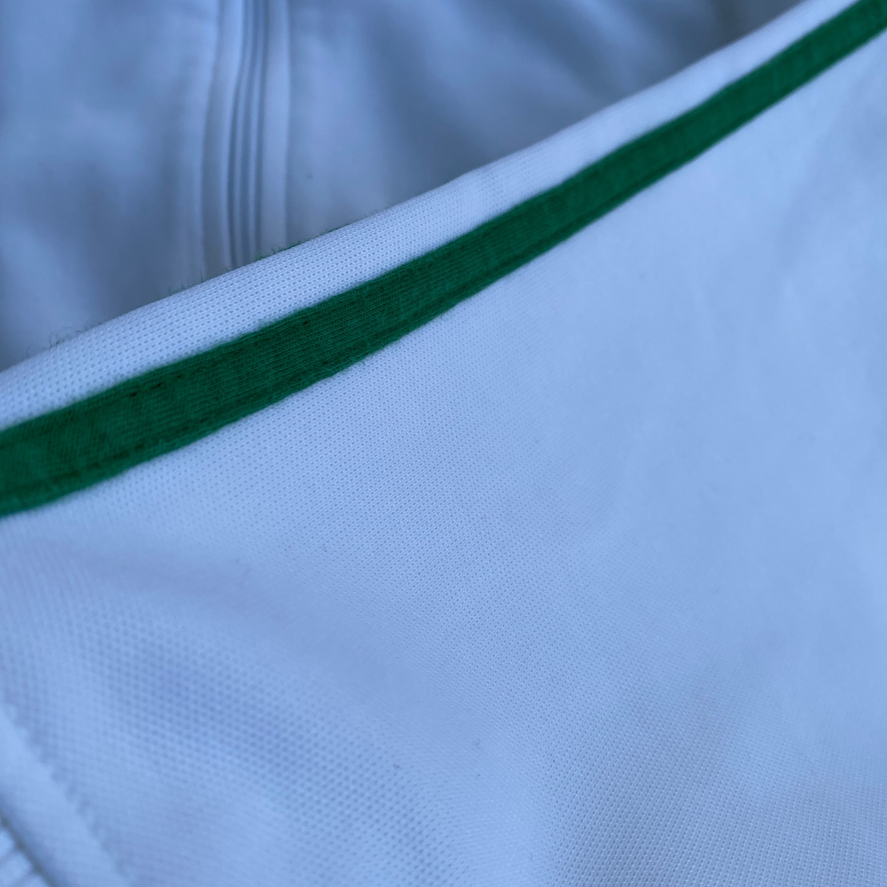 定番のロゴの入ったシンプルなデザインに、ホワイト×グリーンの綺麗な色目が格好良い一着。
