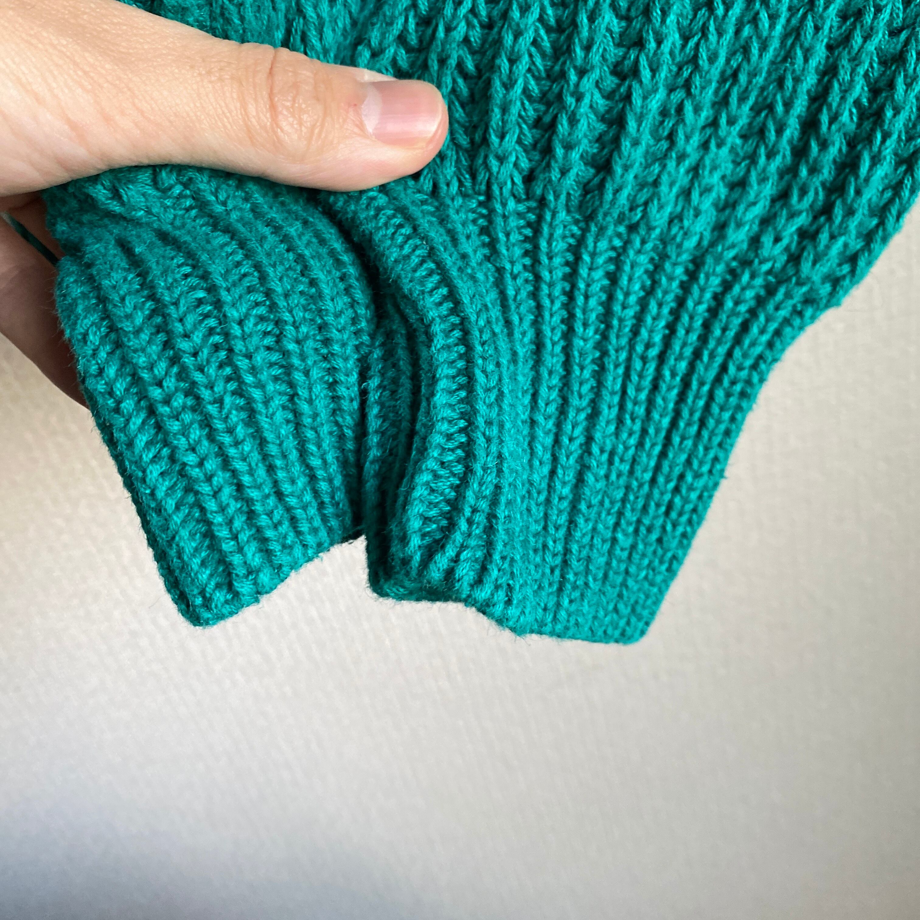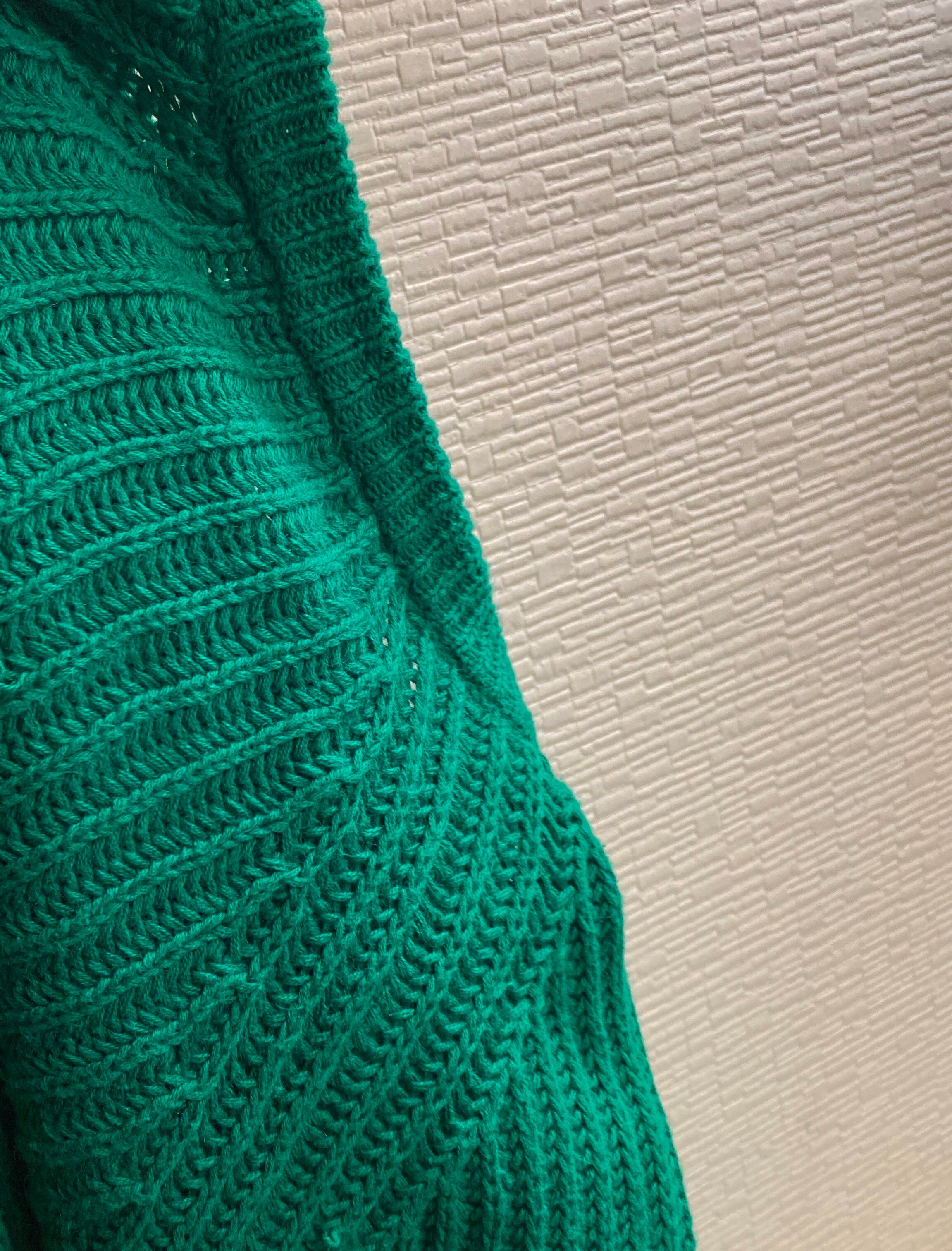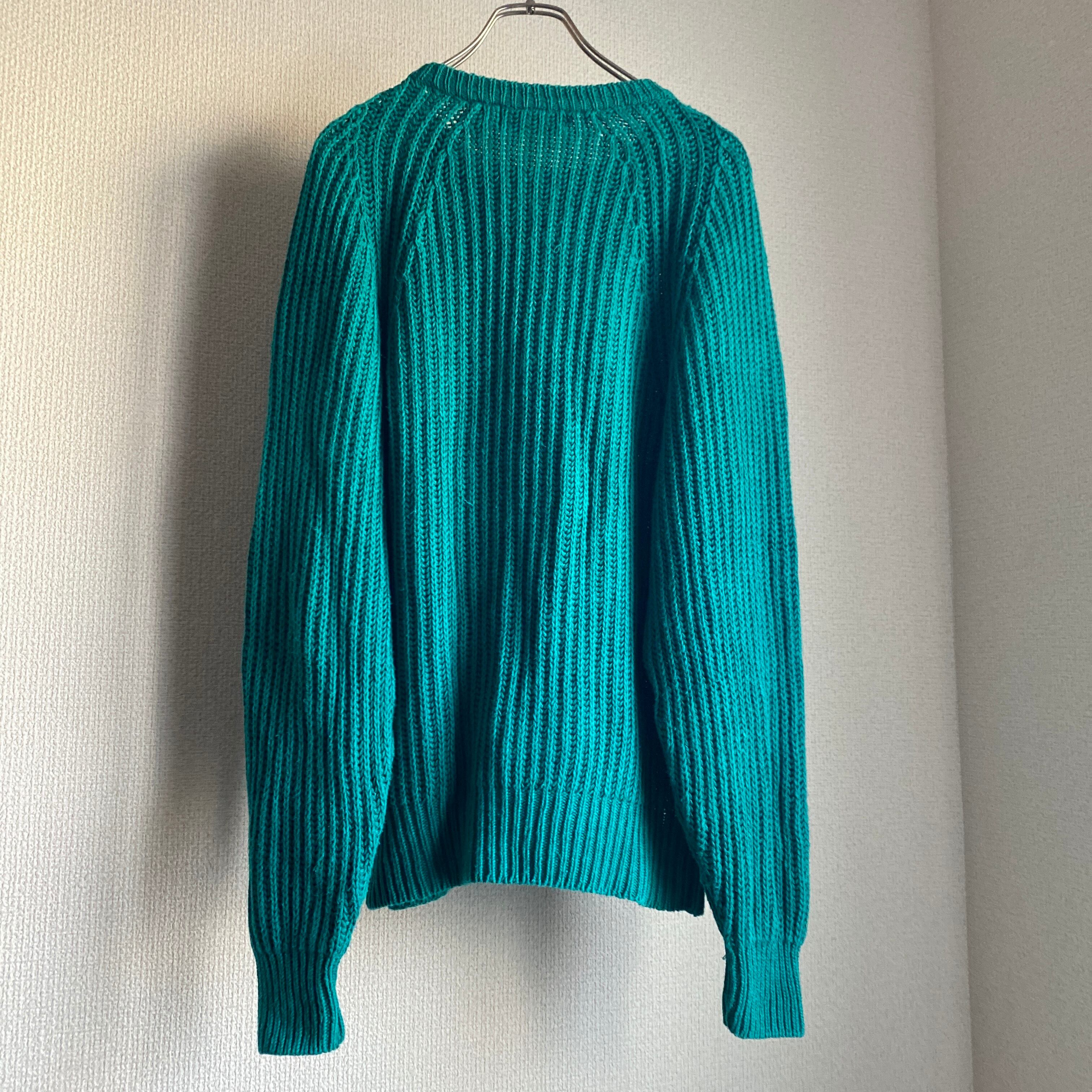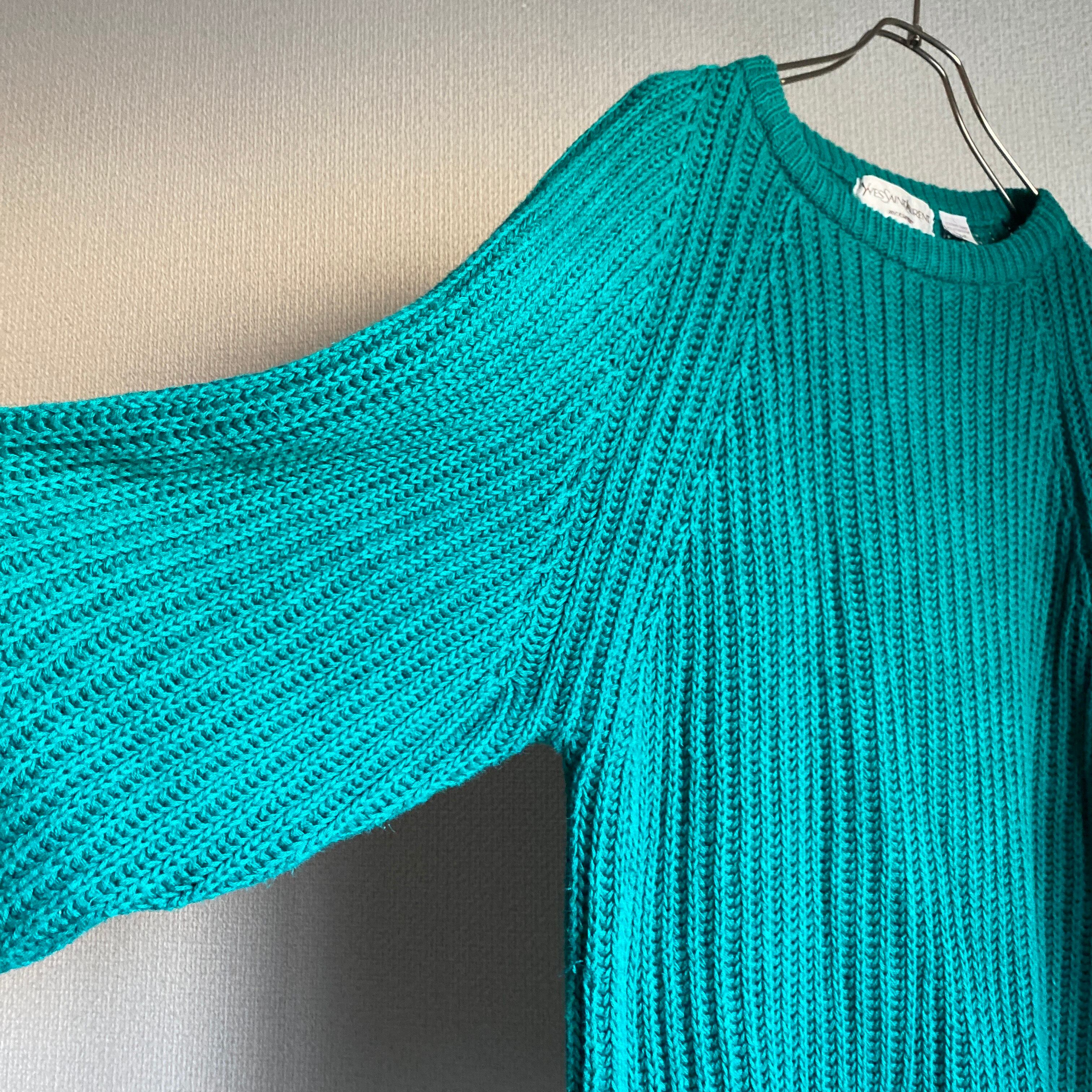 コットンラミー素材のざっくりとしたローゲージニットに、エメラルドグリーン系(画像6が近いです)の非常に綺麗な色目が格好良い一着。