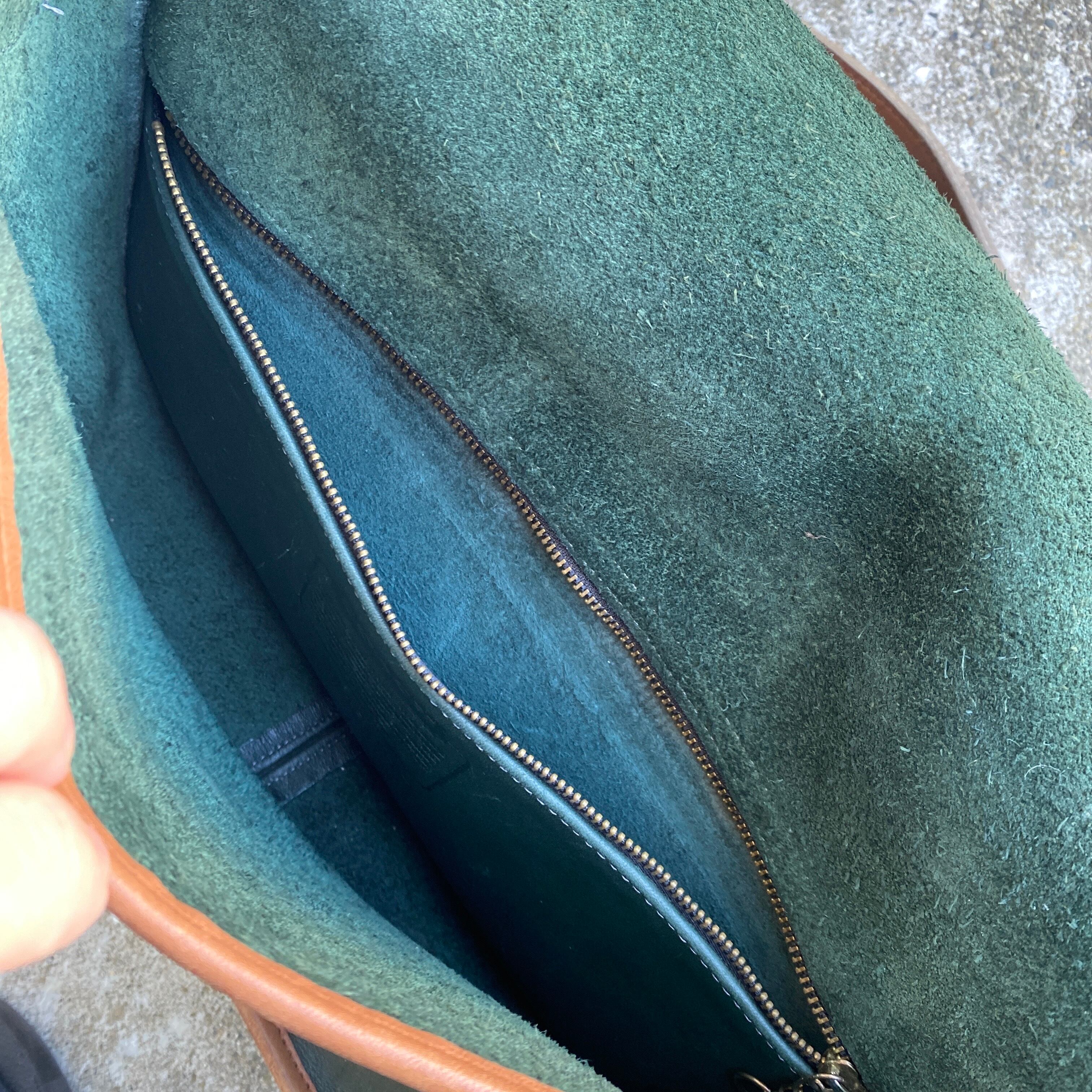 ブラック、ブラウンなどの単色はまだ見かけますが、こちらのグリーン×ブラウンのツートンのものは滅多に見かけないレアカラーです。