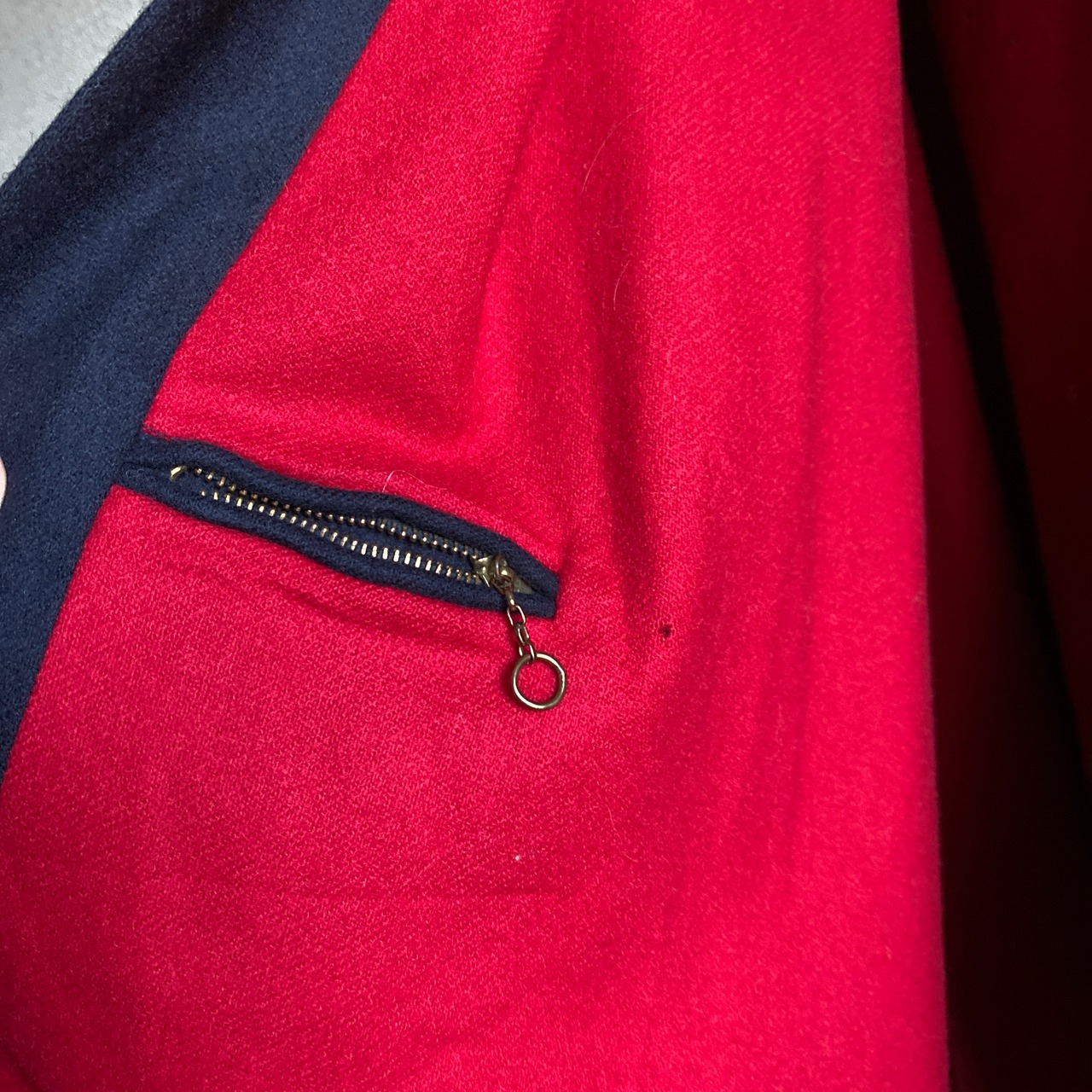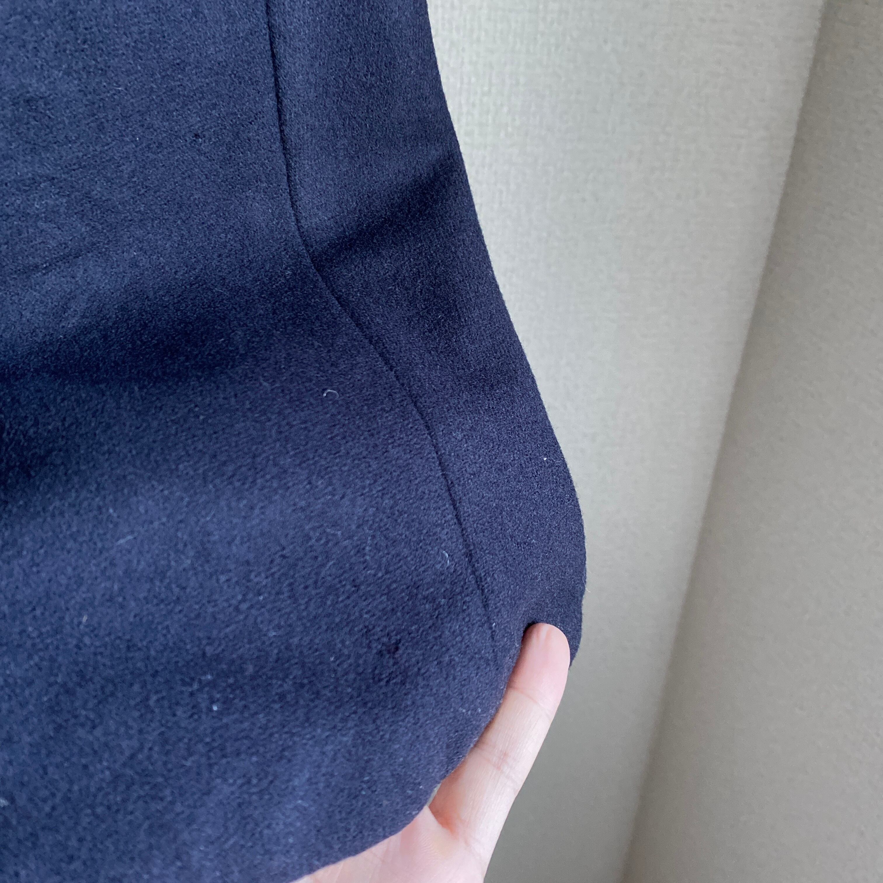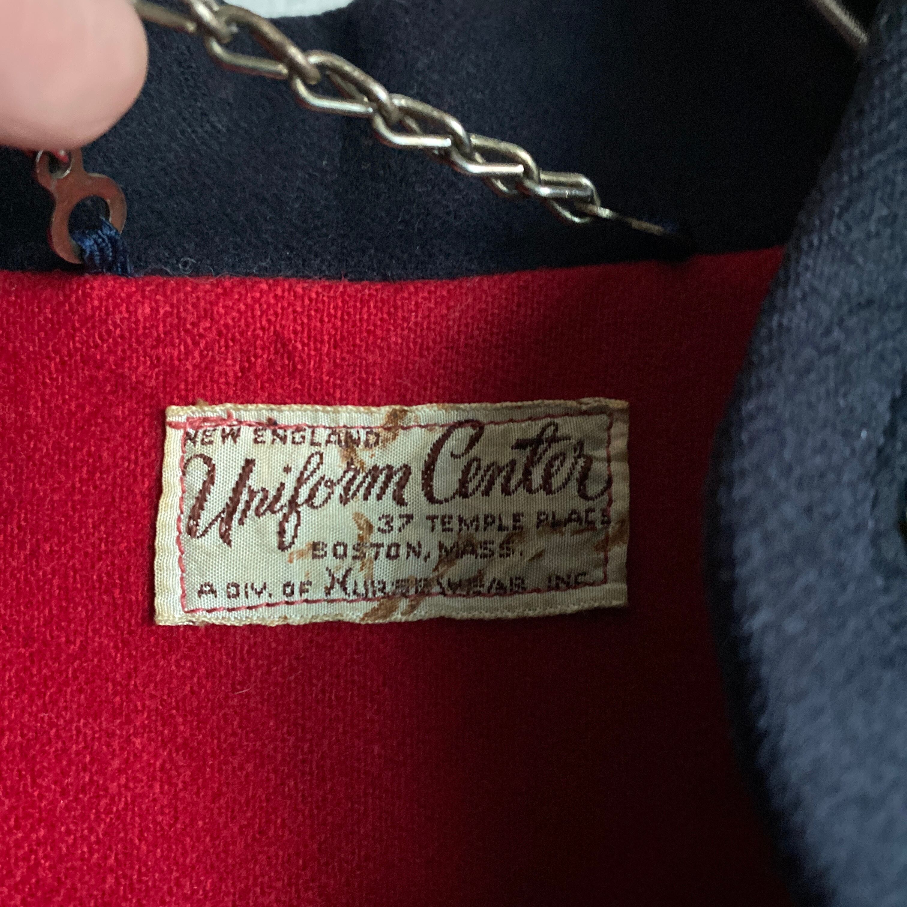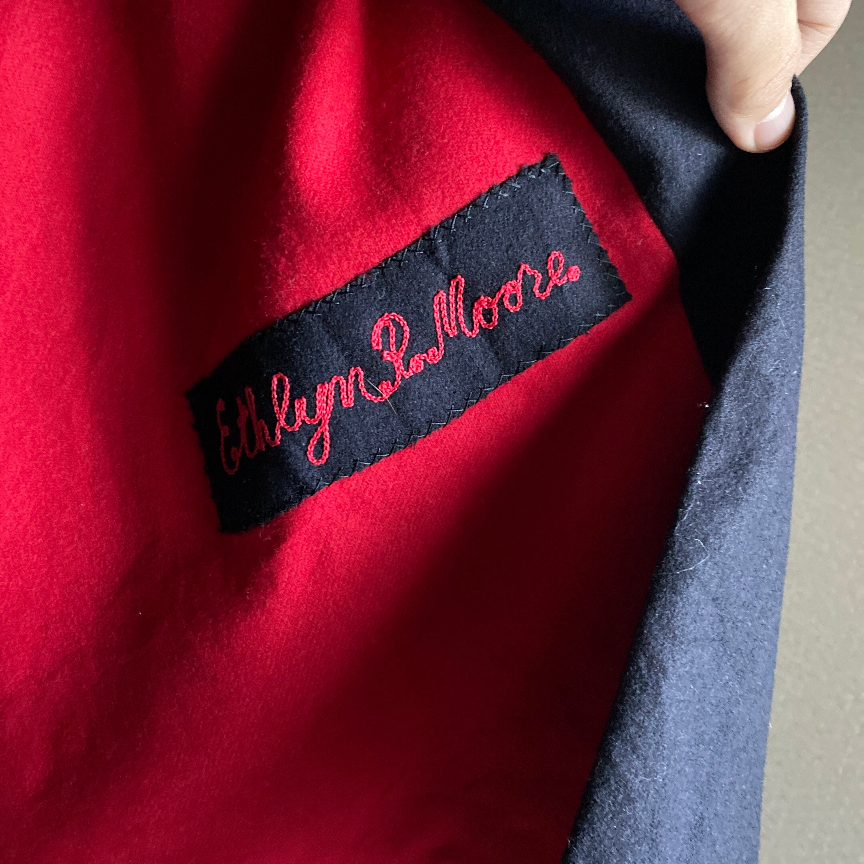 古い年代特有の上質なウール素材に、深いダークネイビー、裏地のレッド、所属病院の刺繍が非常にかわいいです。