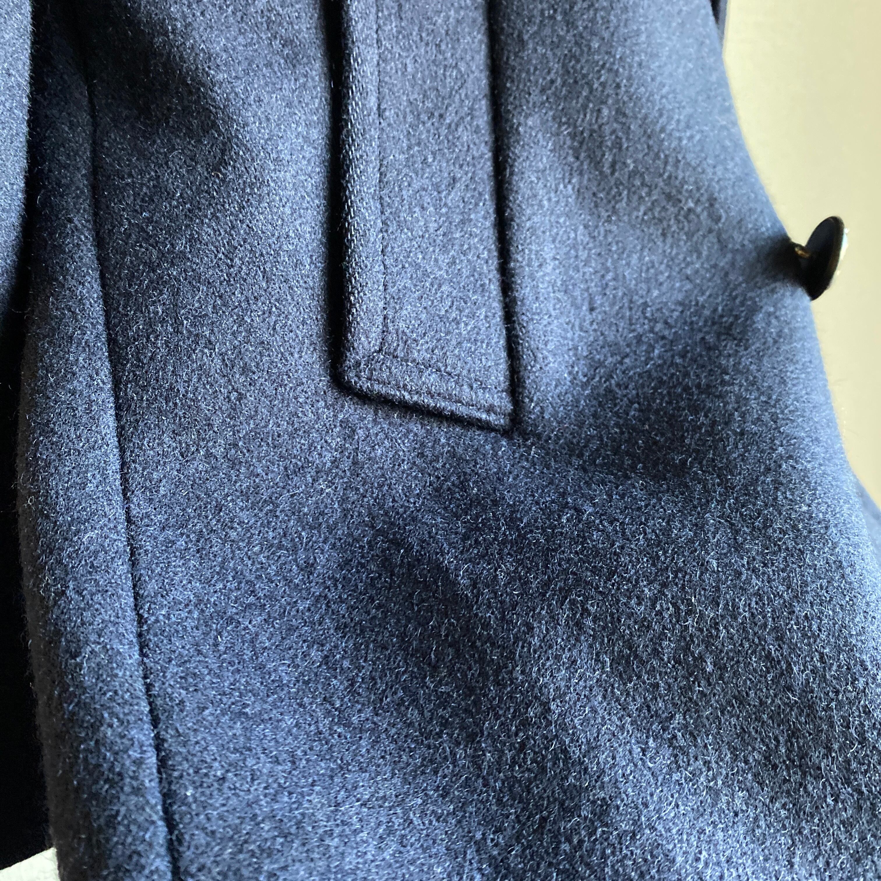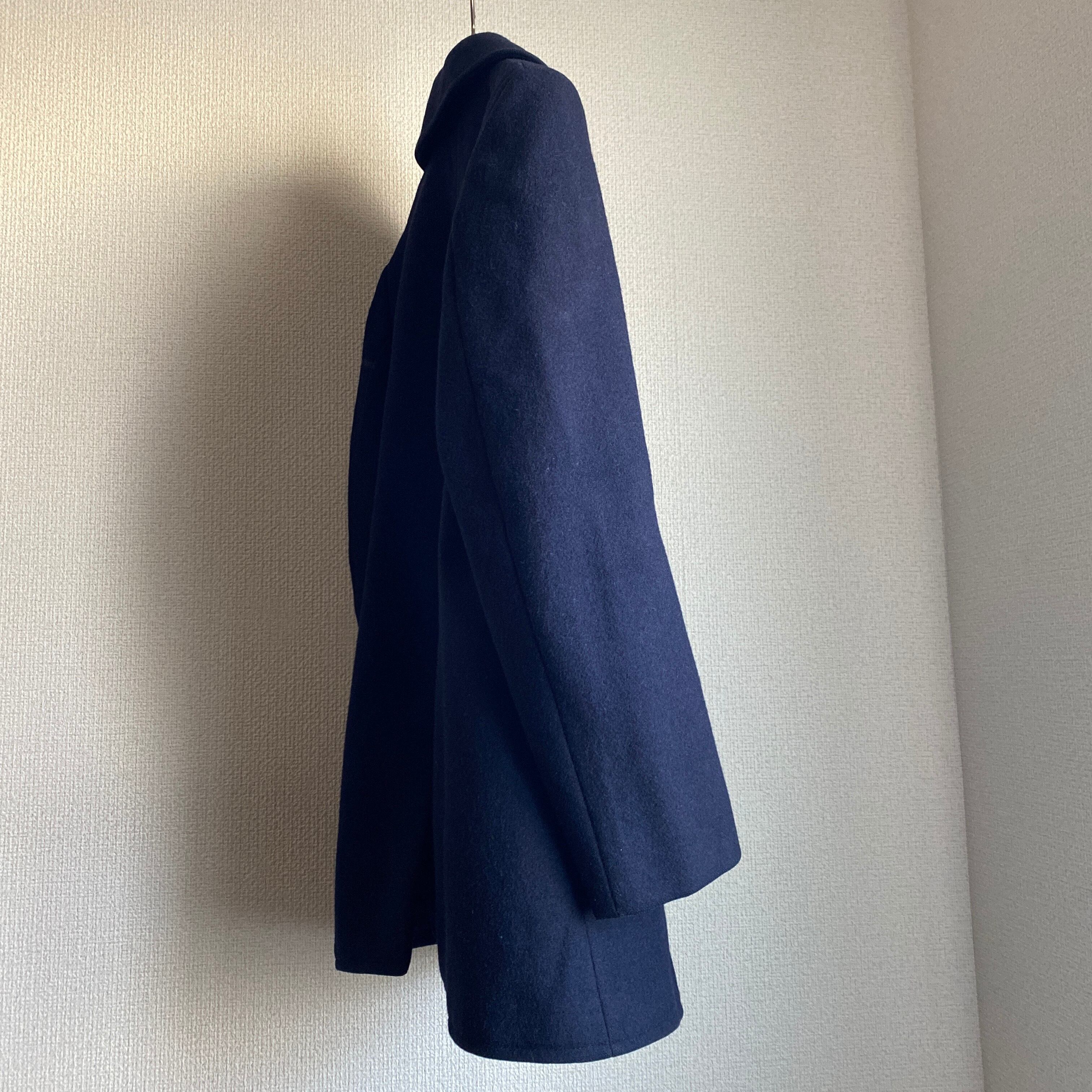 深いダークネイビー(実物は写真より暗いです)の色目に、重厚感のあるギュッと詰まったウールメルトン、長めの着丈に程よくシェイプした美しいシルエットがたまりません。