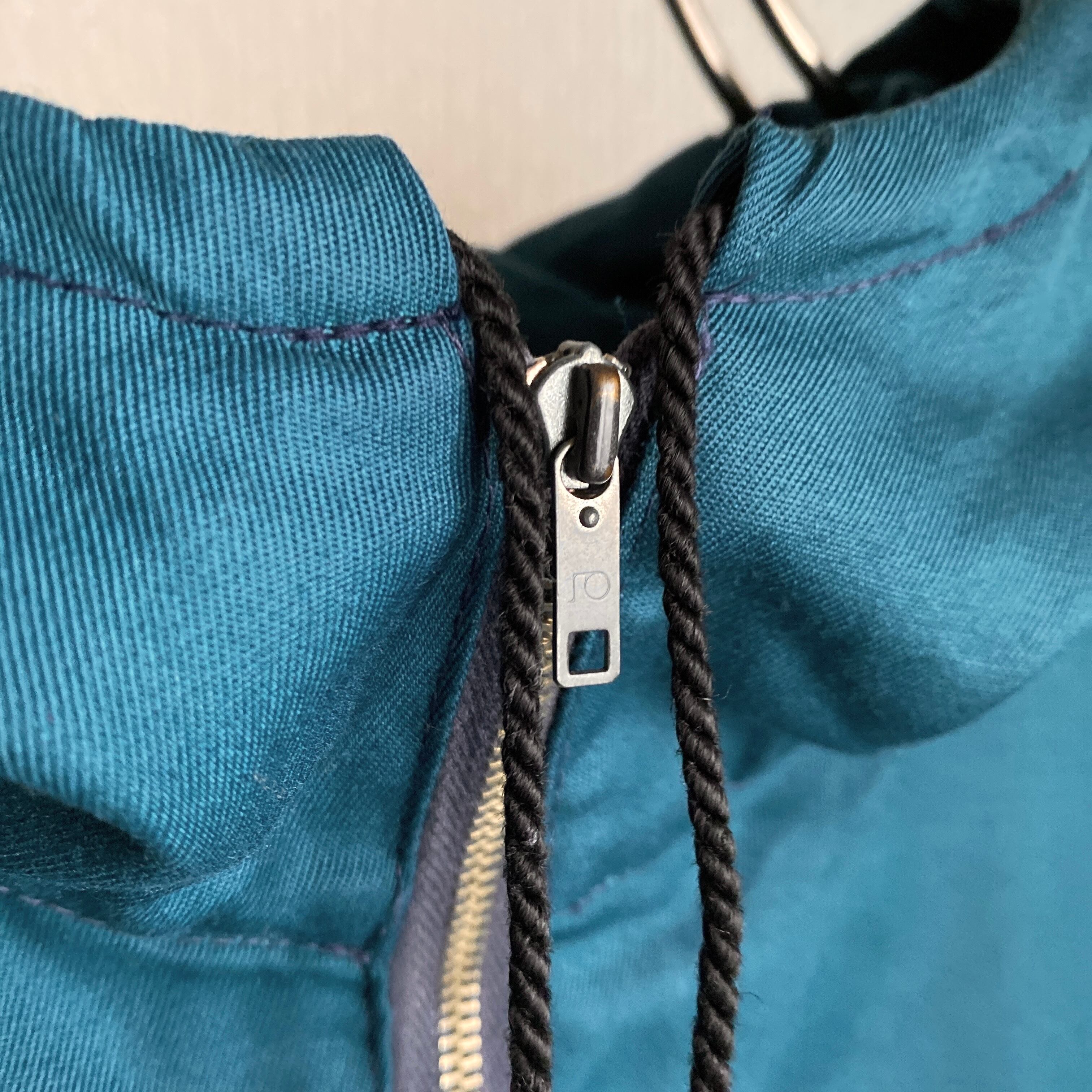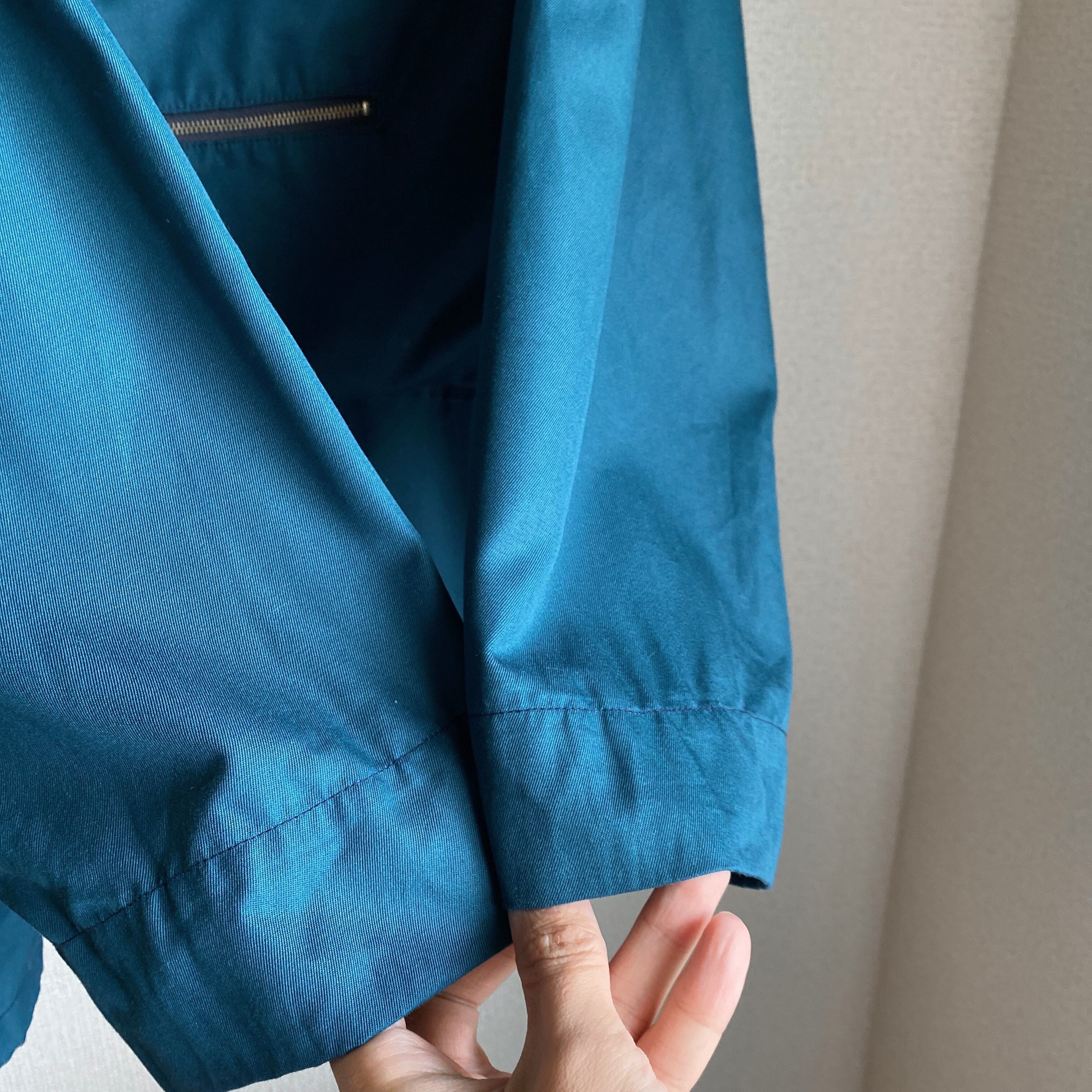 やや薄めでサラッとした質感のコットンツイル地に、ターコイズブルー系(画像8.9が近いですが完璧には出せていないかもしれません)の綺麗な色目が非常に格好良い一着。