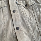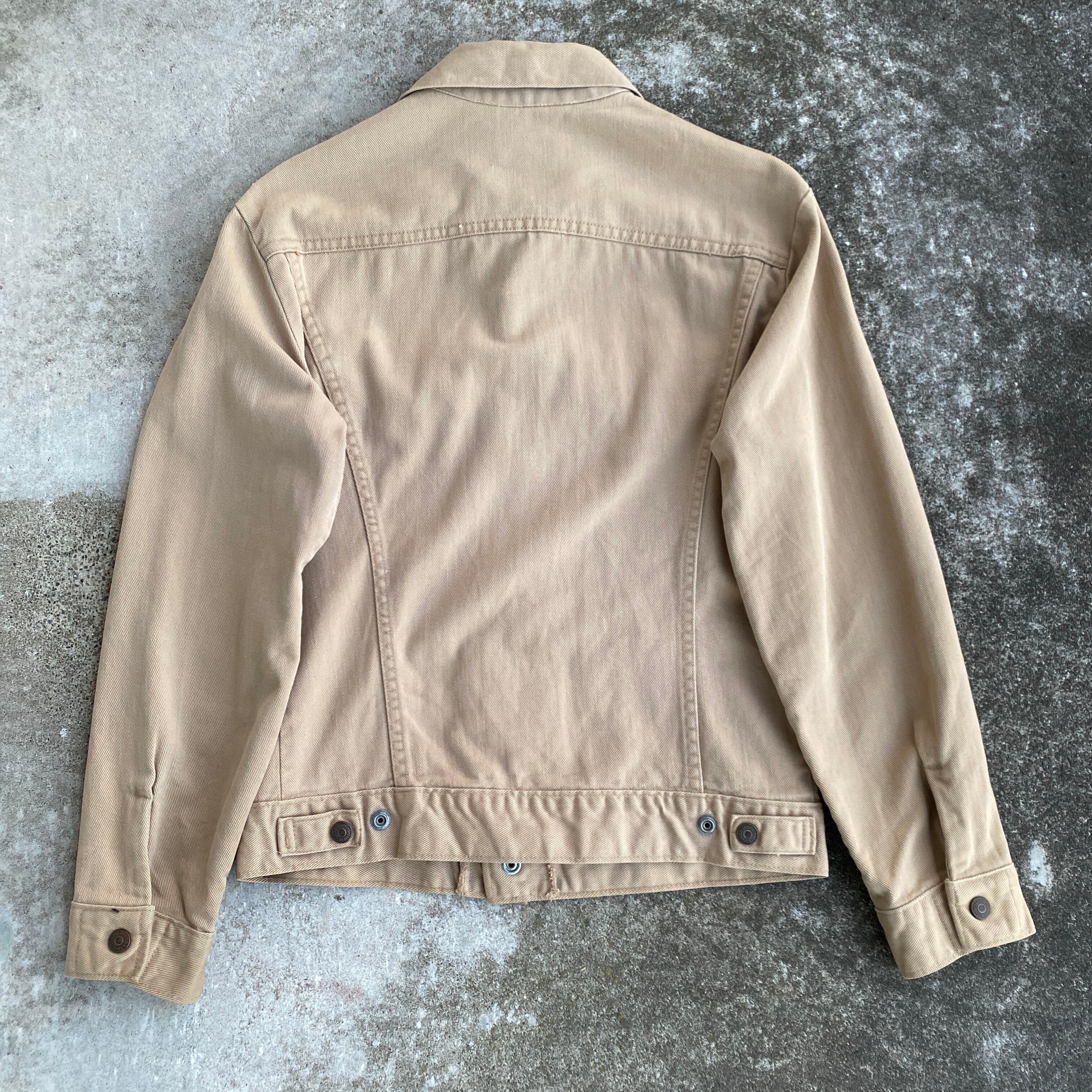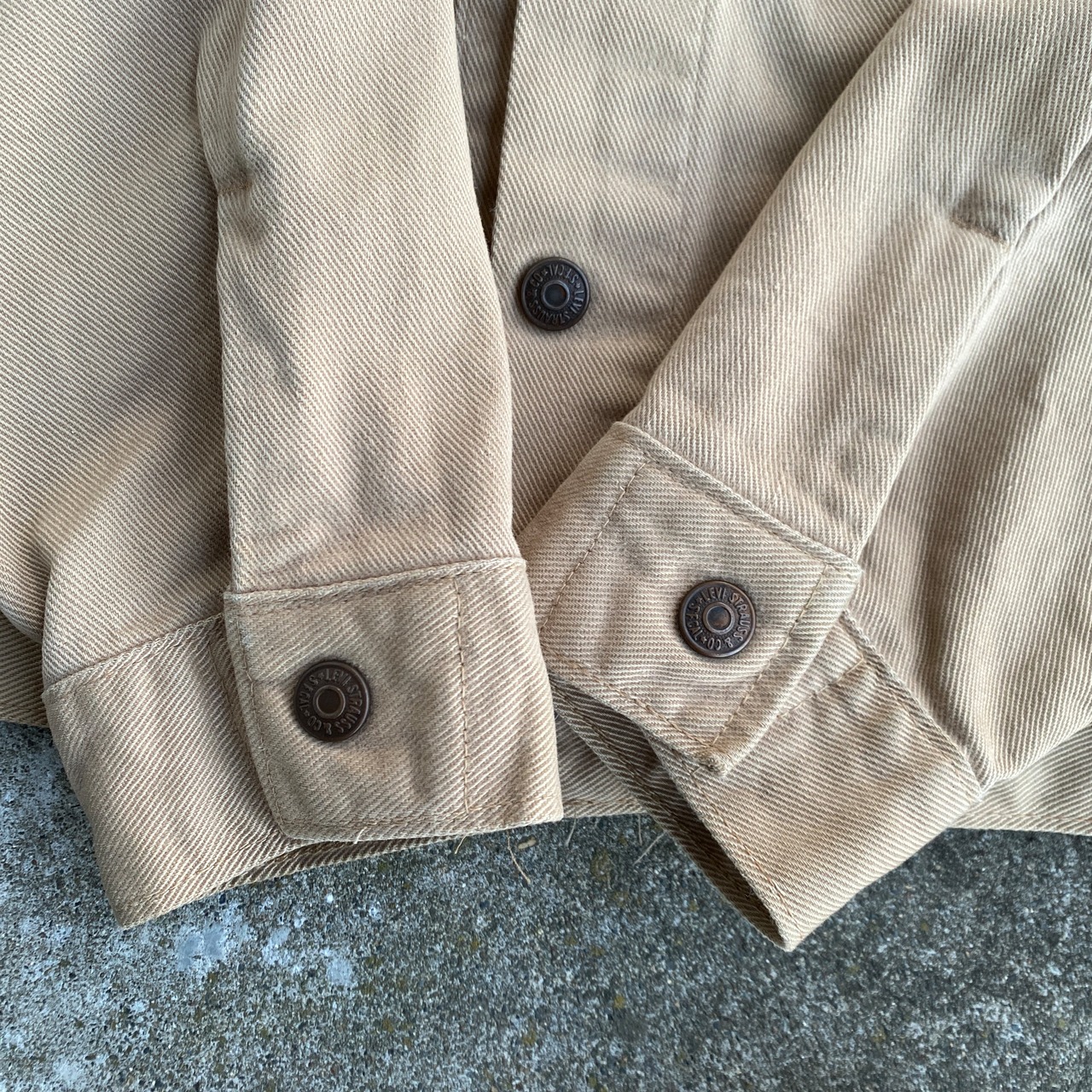 デニム生地より細い糸を使って織られた所謂「カツラギ」生地を使用した柔らかな質感に、品のあるベージュカラー、重厚感のあるアルミのスナップフロントが非常に格好良い一着。