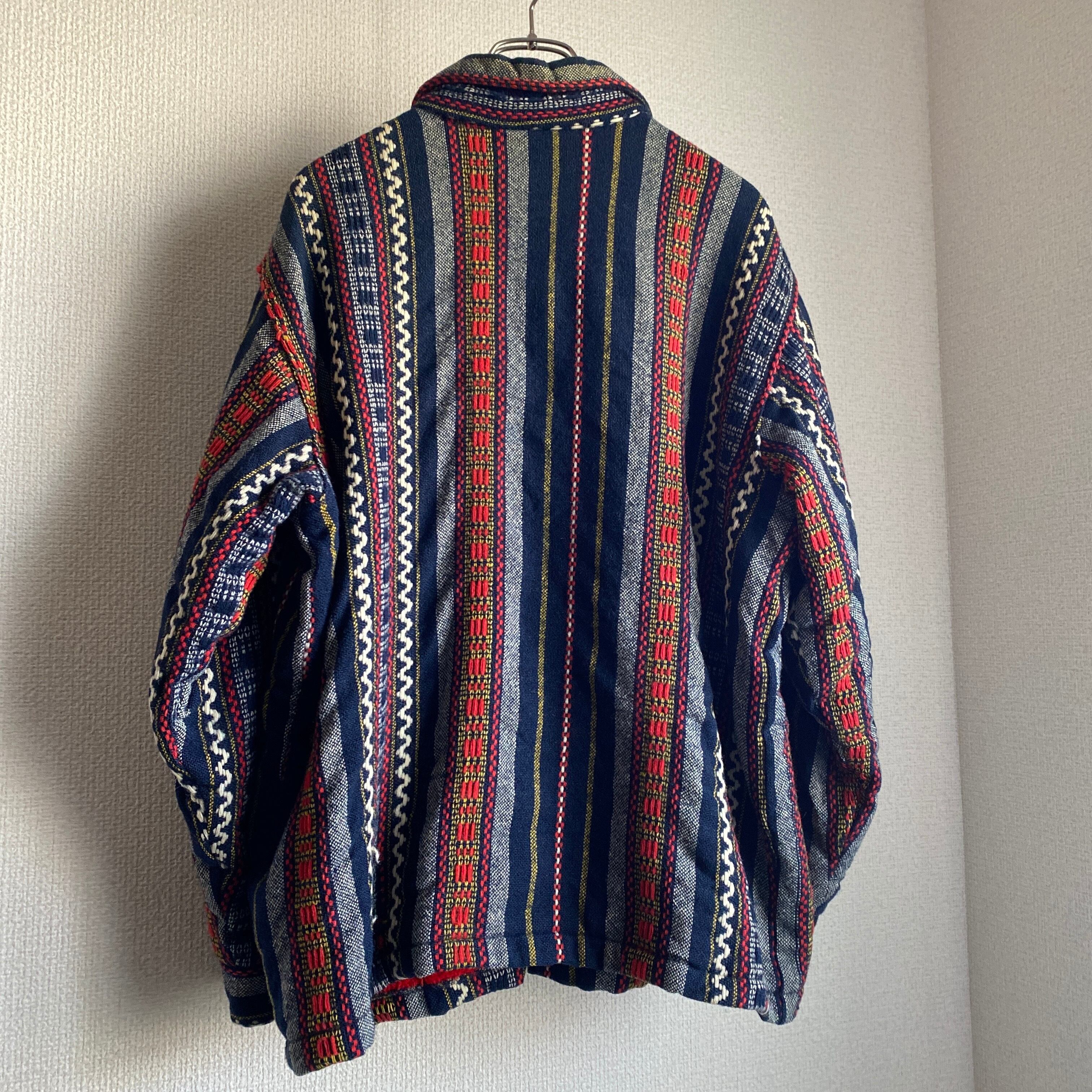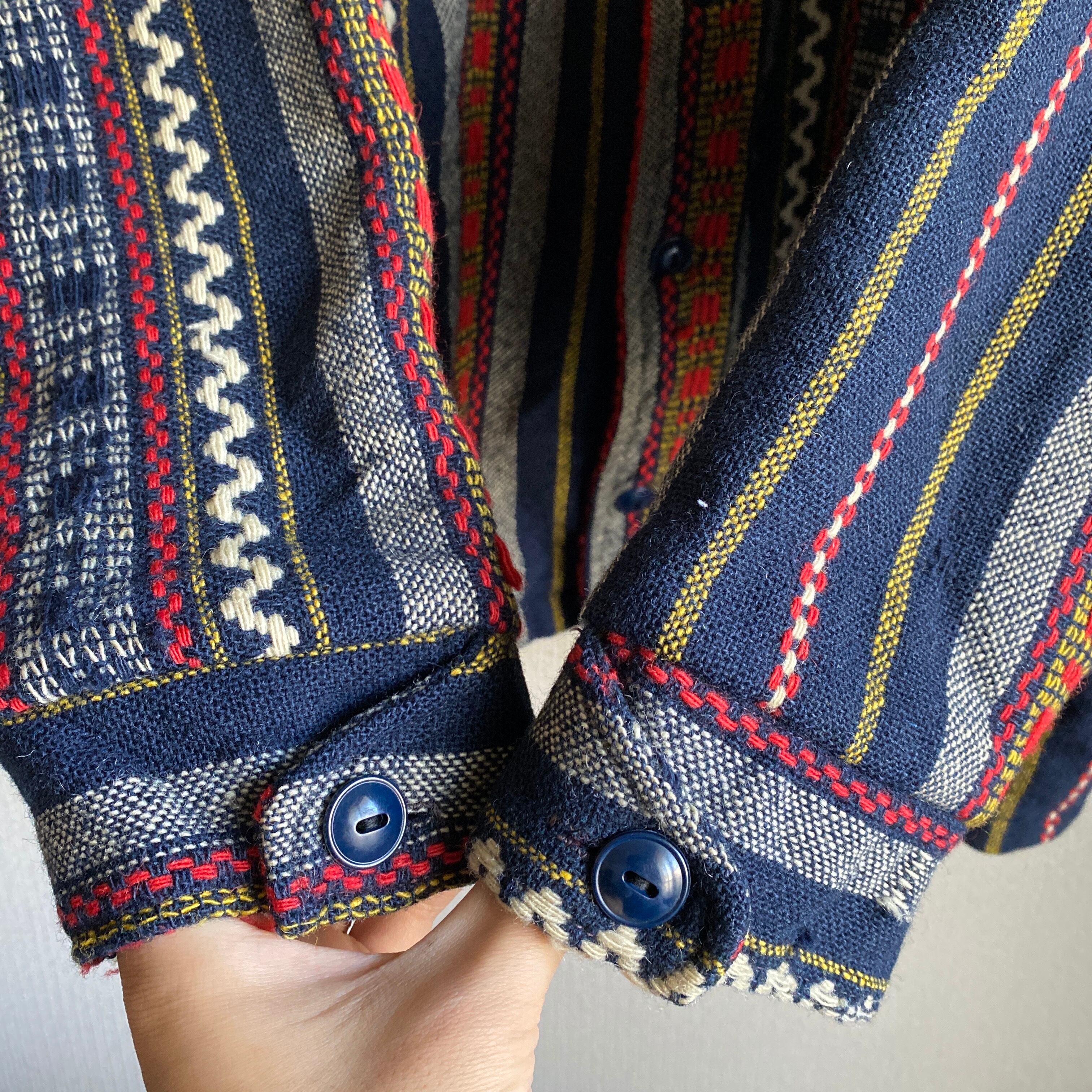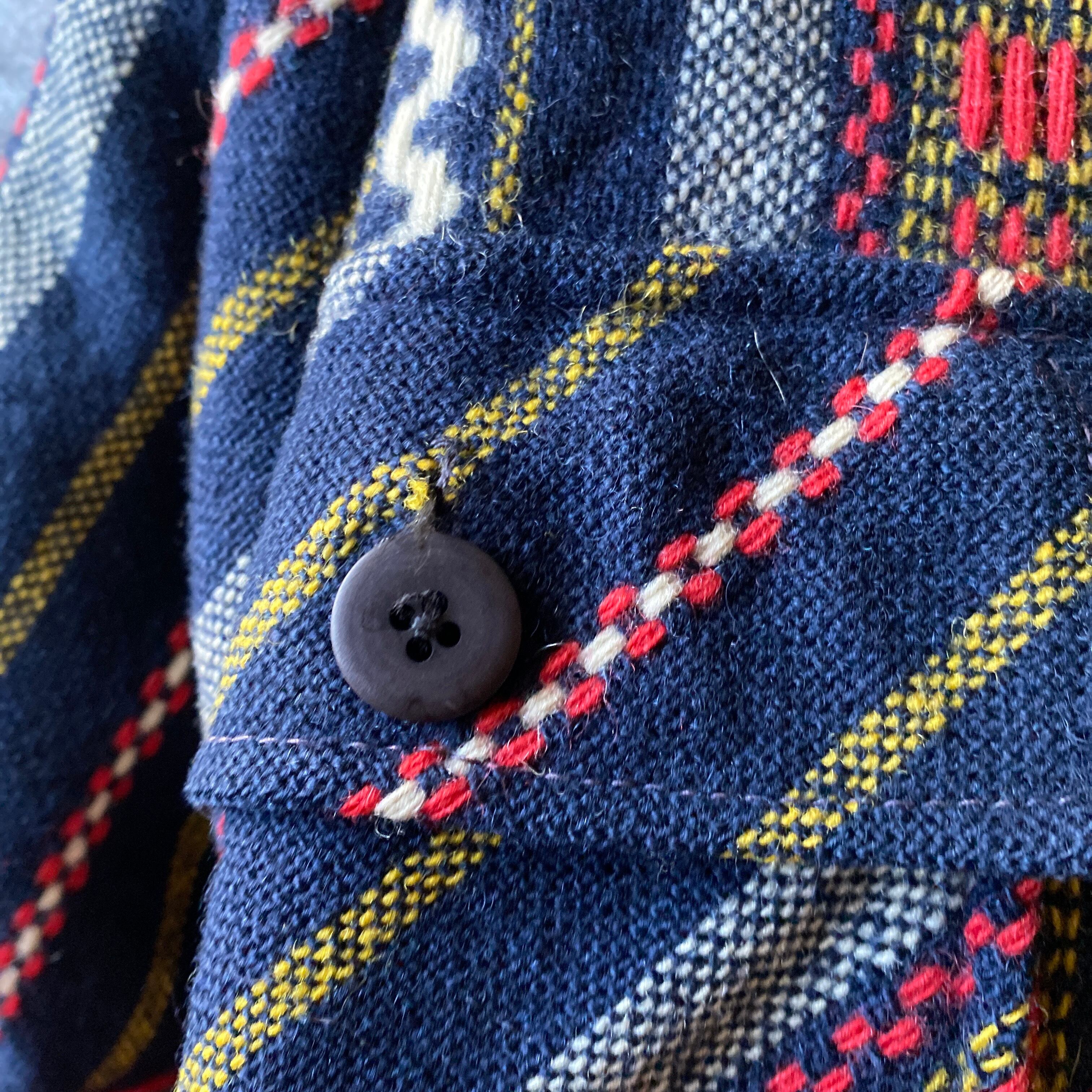ウール素材(表記がないのでおそらく)の織物でネイティブパターンが表現された大変素晴らしい一着。