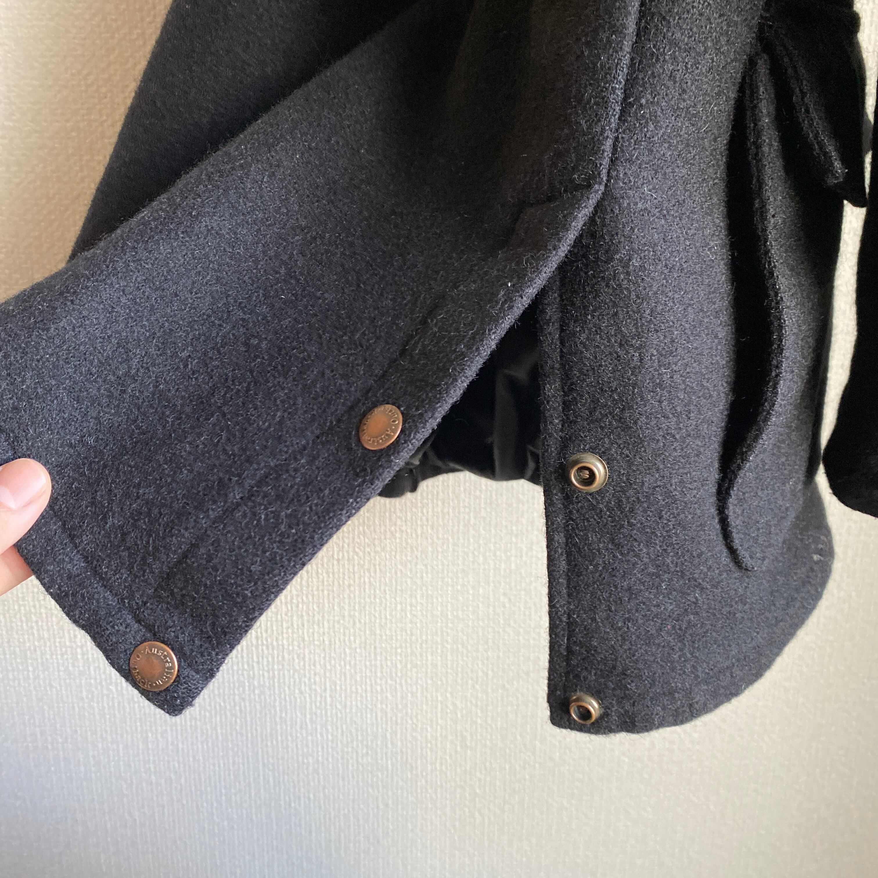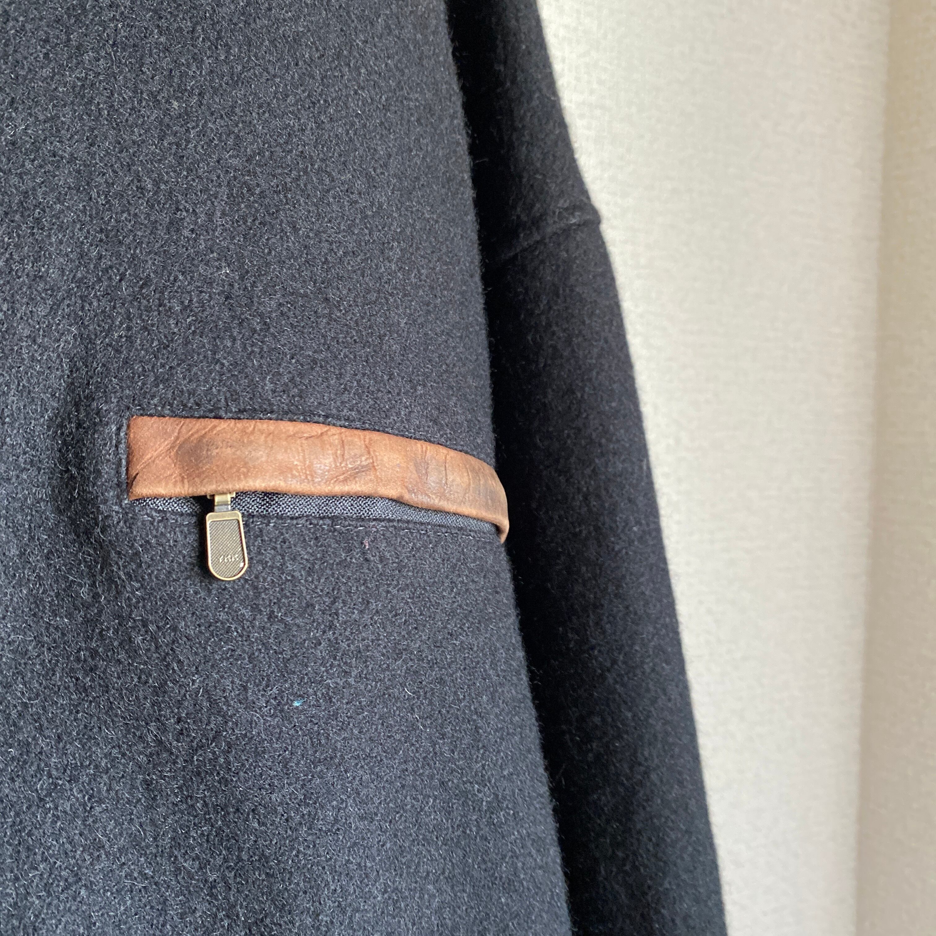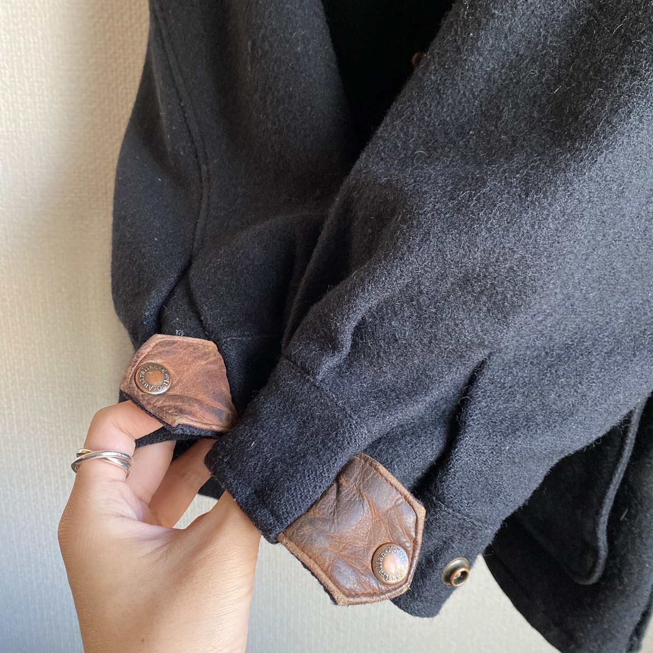 肉厚なブラックのウールメルトンと随所に配されたレザーのコントラストが◎。