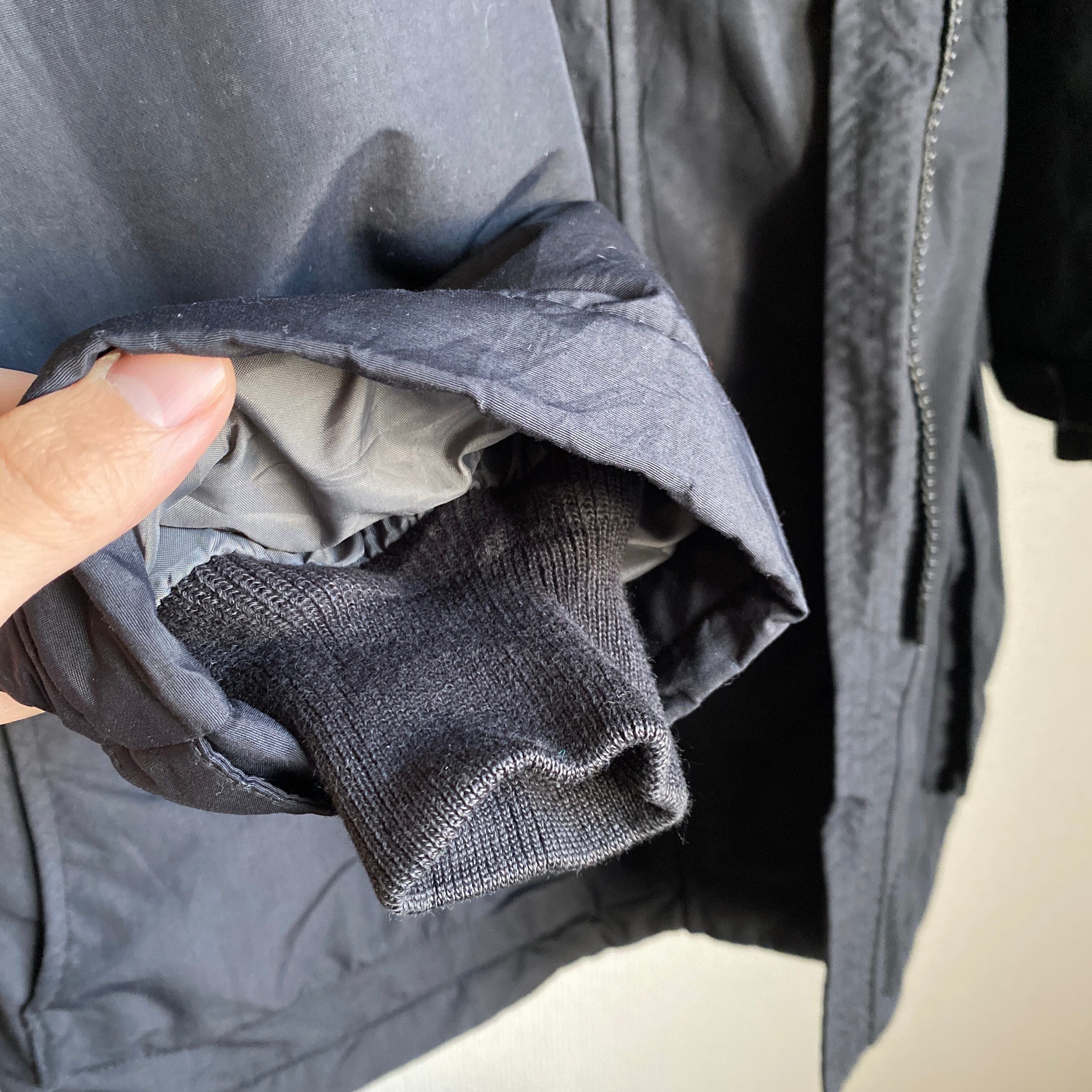 マットな質感のパリッとしたナイロン素材に、オールブラックの表地、スウェーデン軍のM90のようなルックスが非常に格好良い一着。