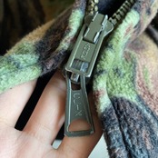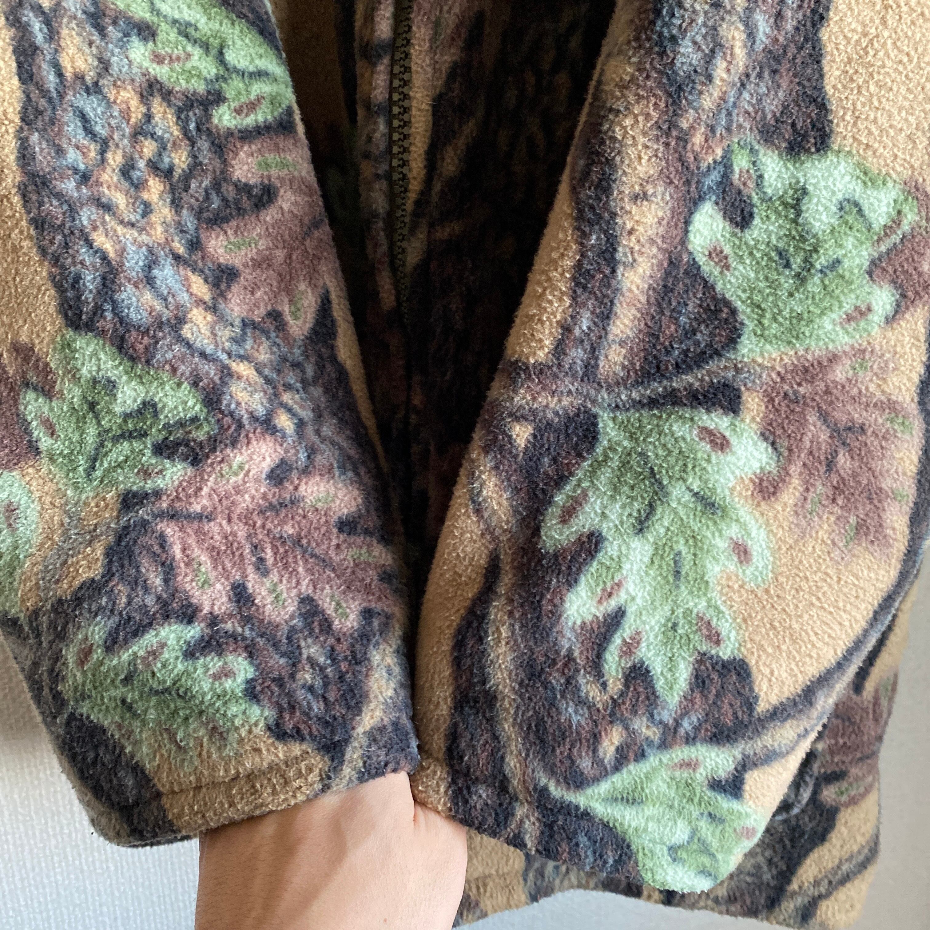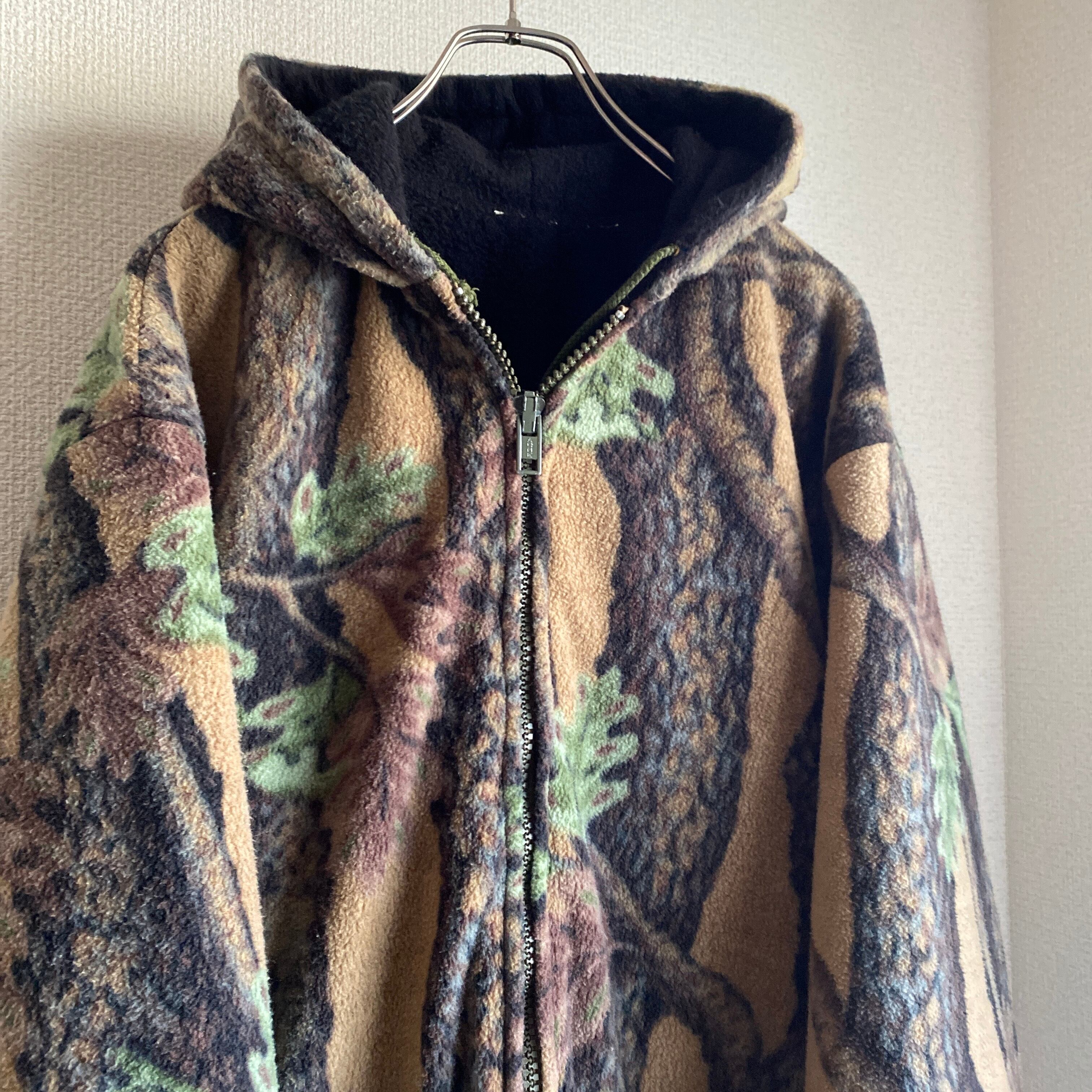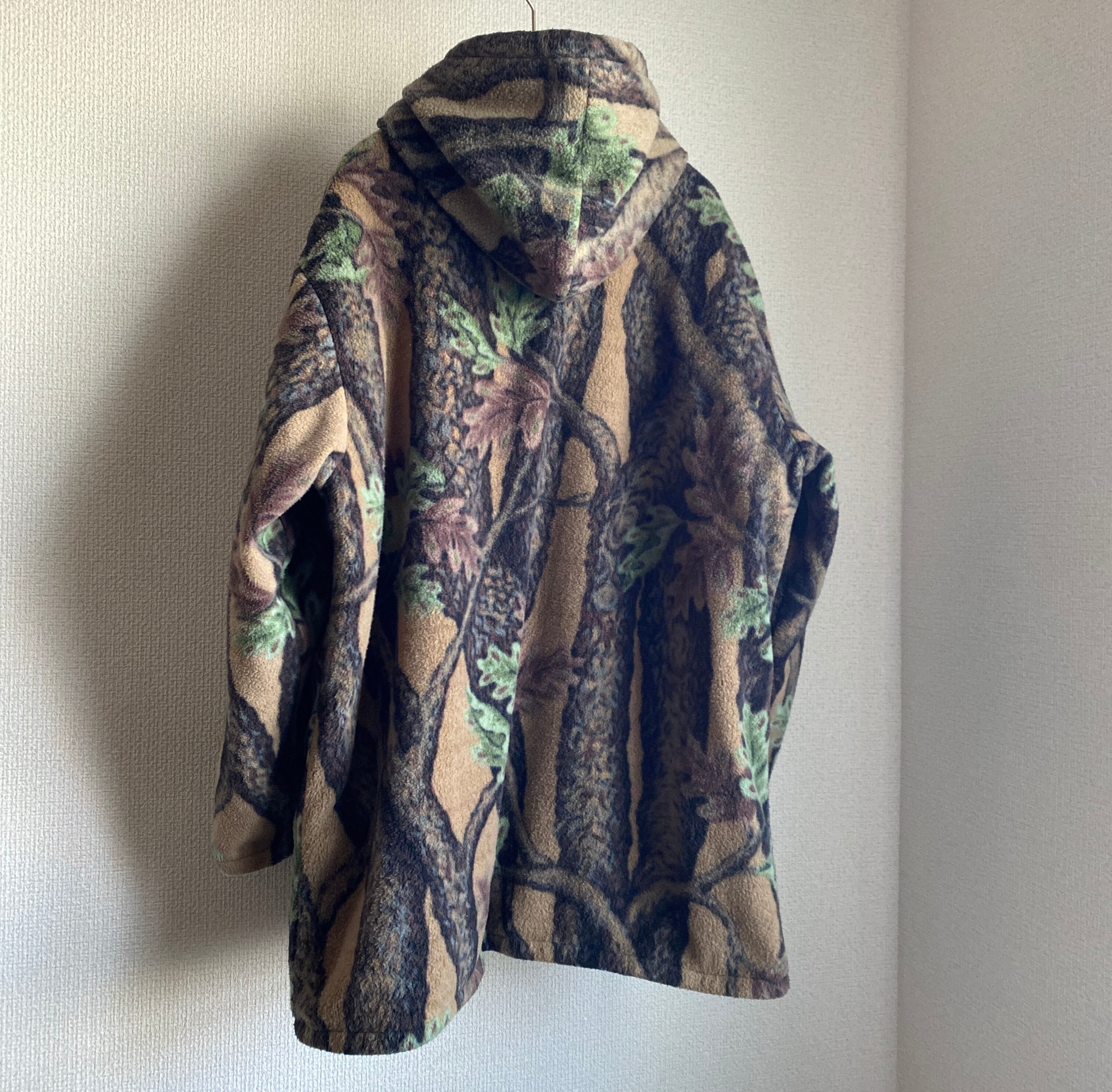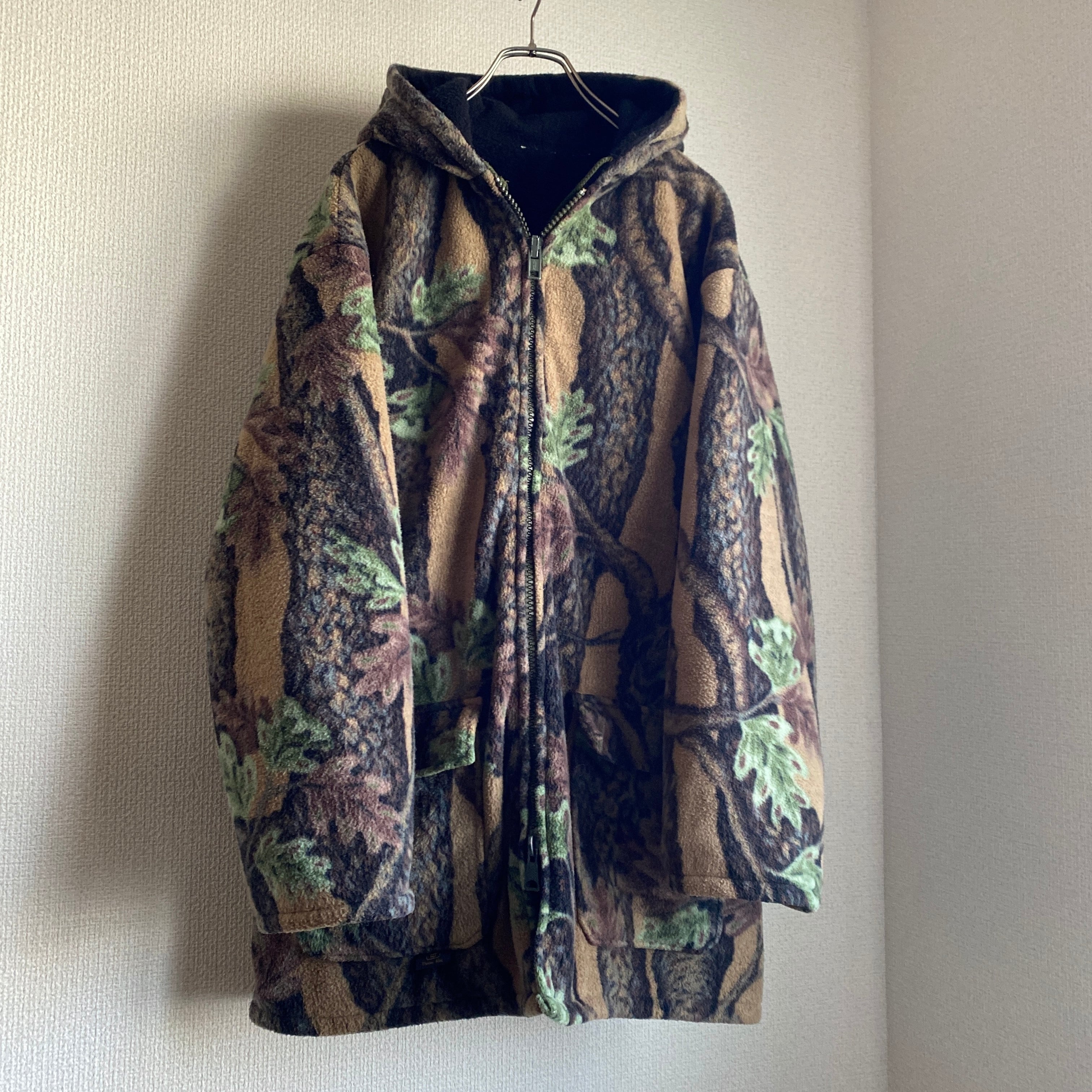 ツリーカモフラージュパターンで防風フリース、しかもロング丈のフード付き、ミリタリー系のゴツメダブルジップと非常に珍しい一着。