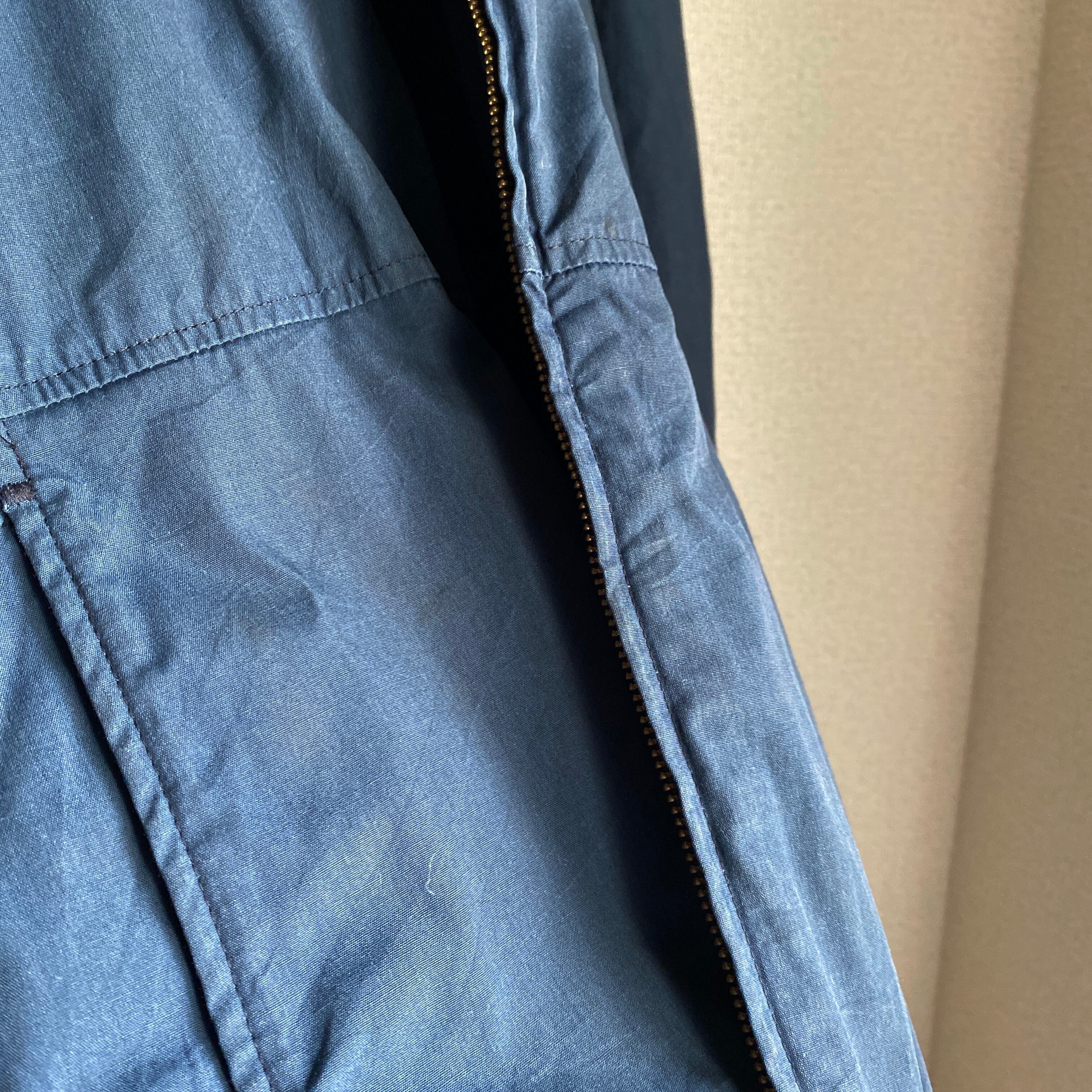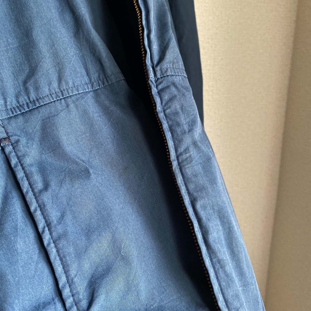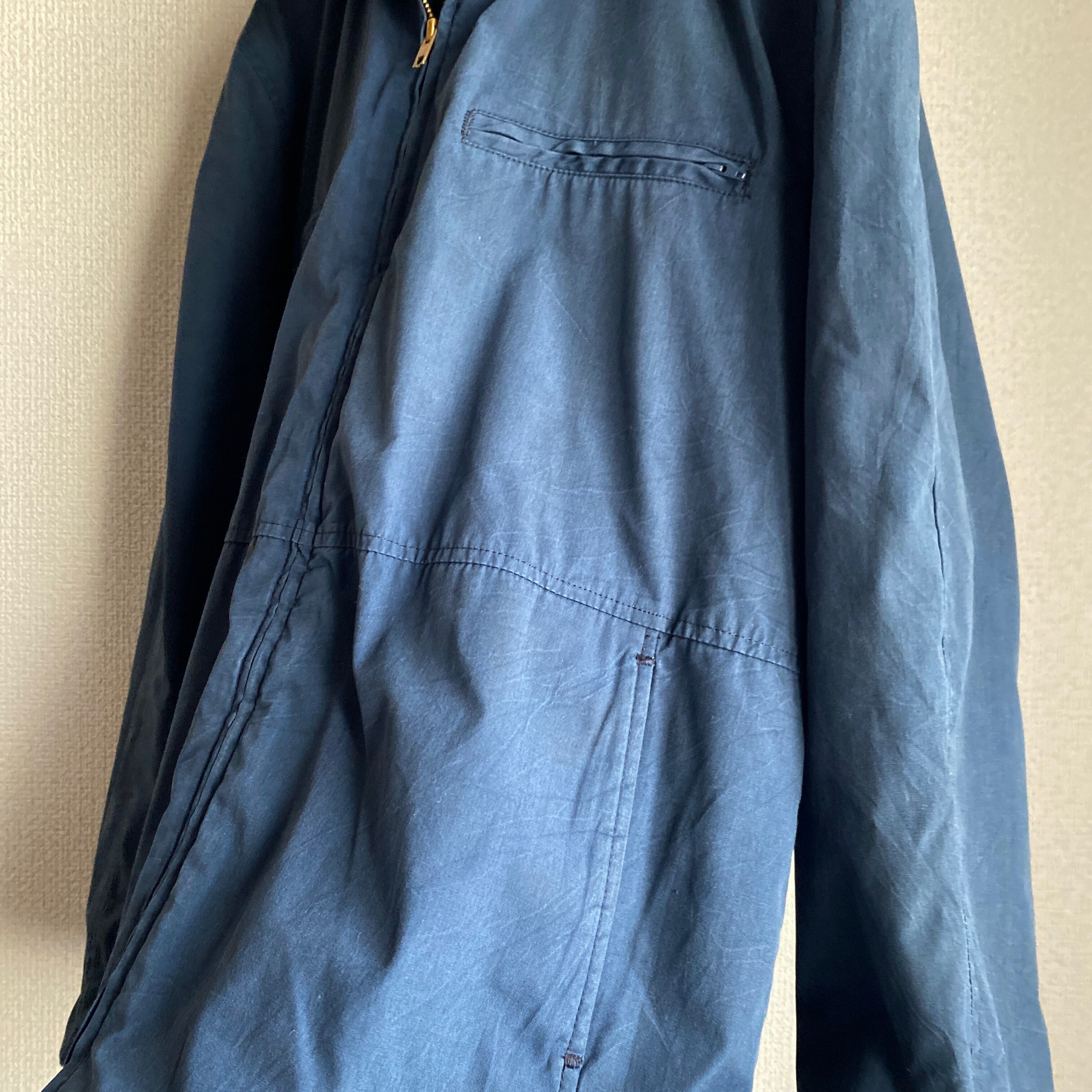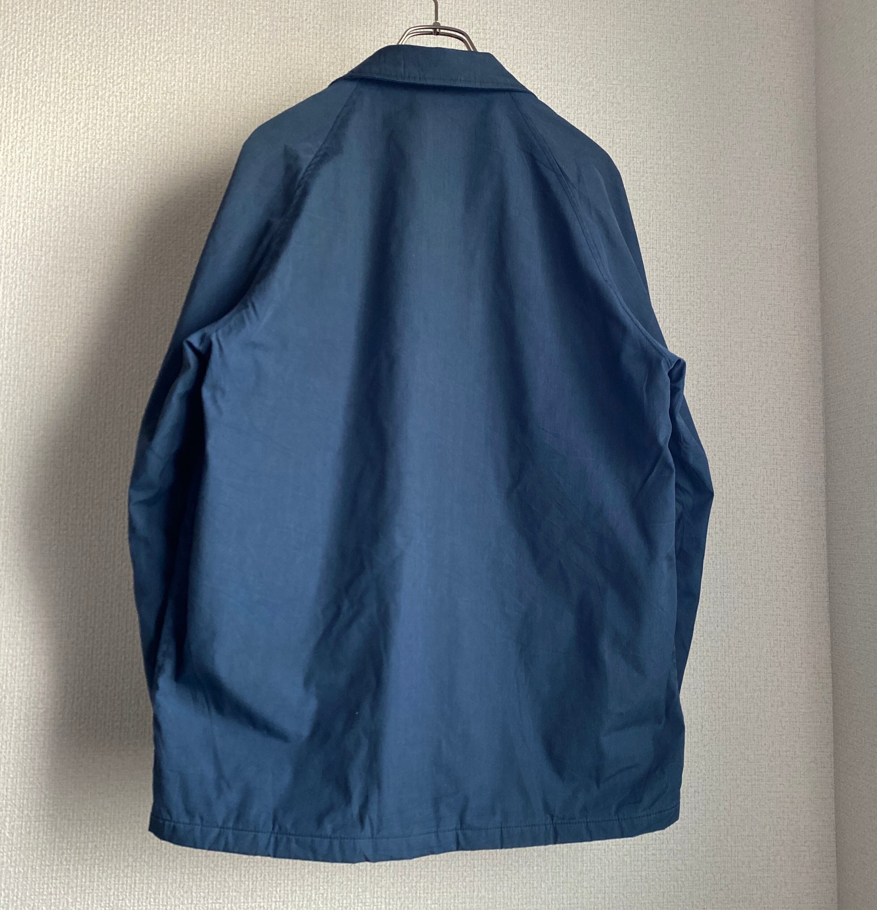 ワークウェアのような無骨なルックス、コットンポリ素材の褪せたネイビーの色目が非常に格好良い一着。