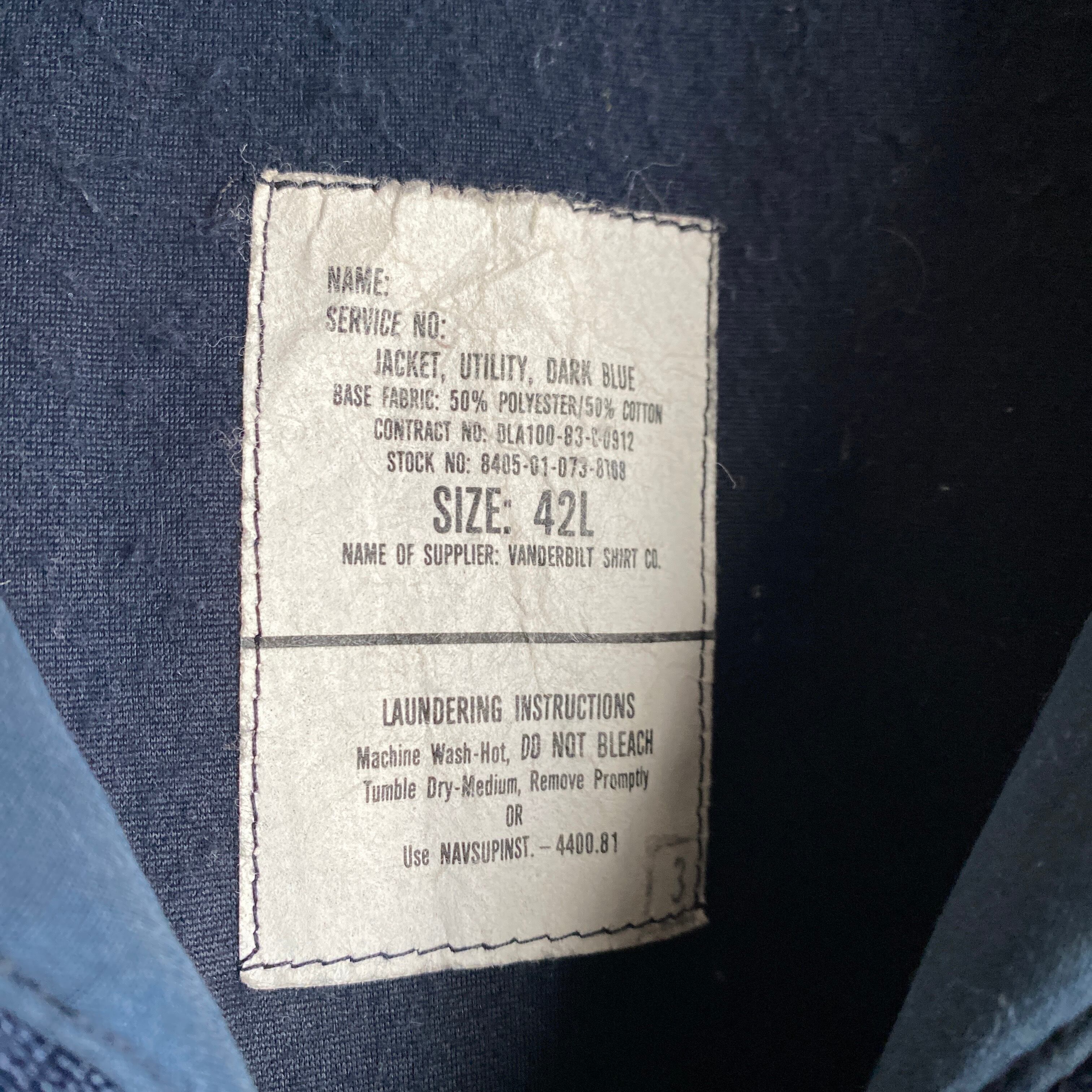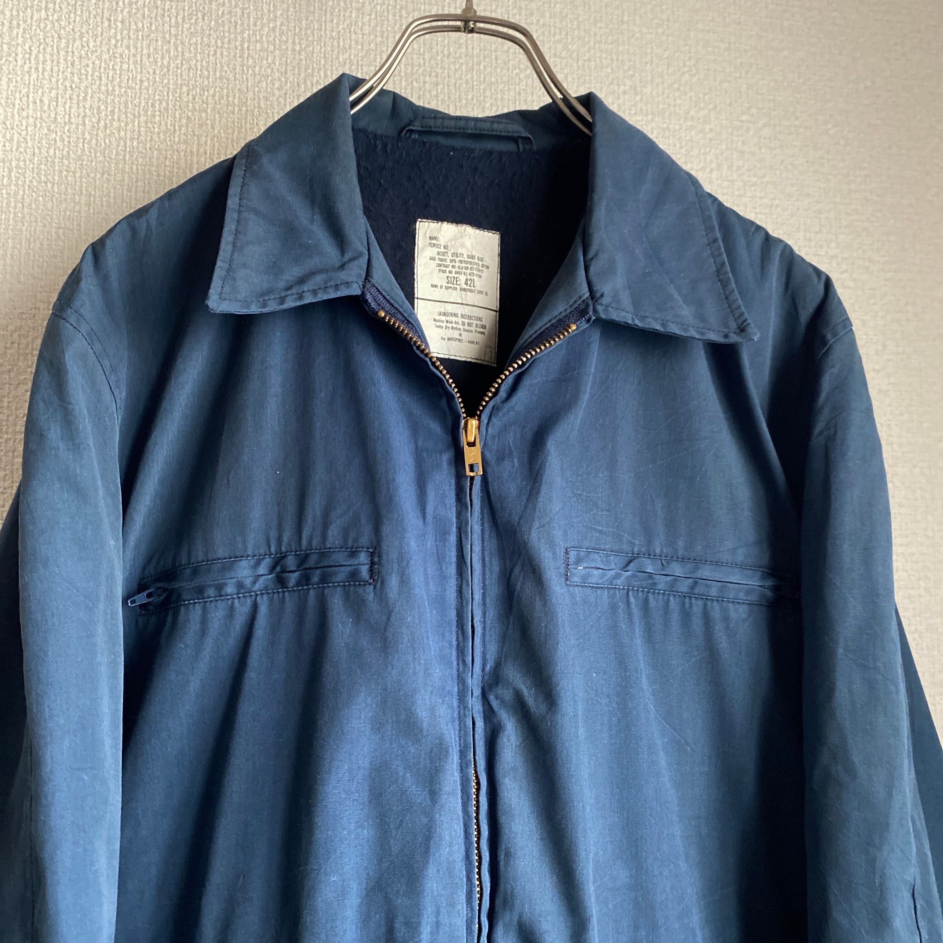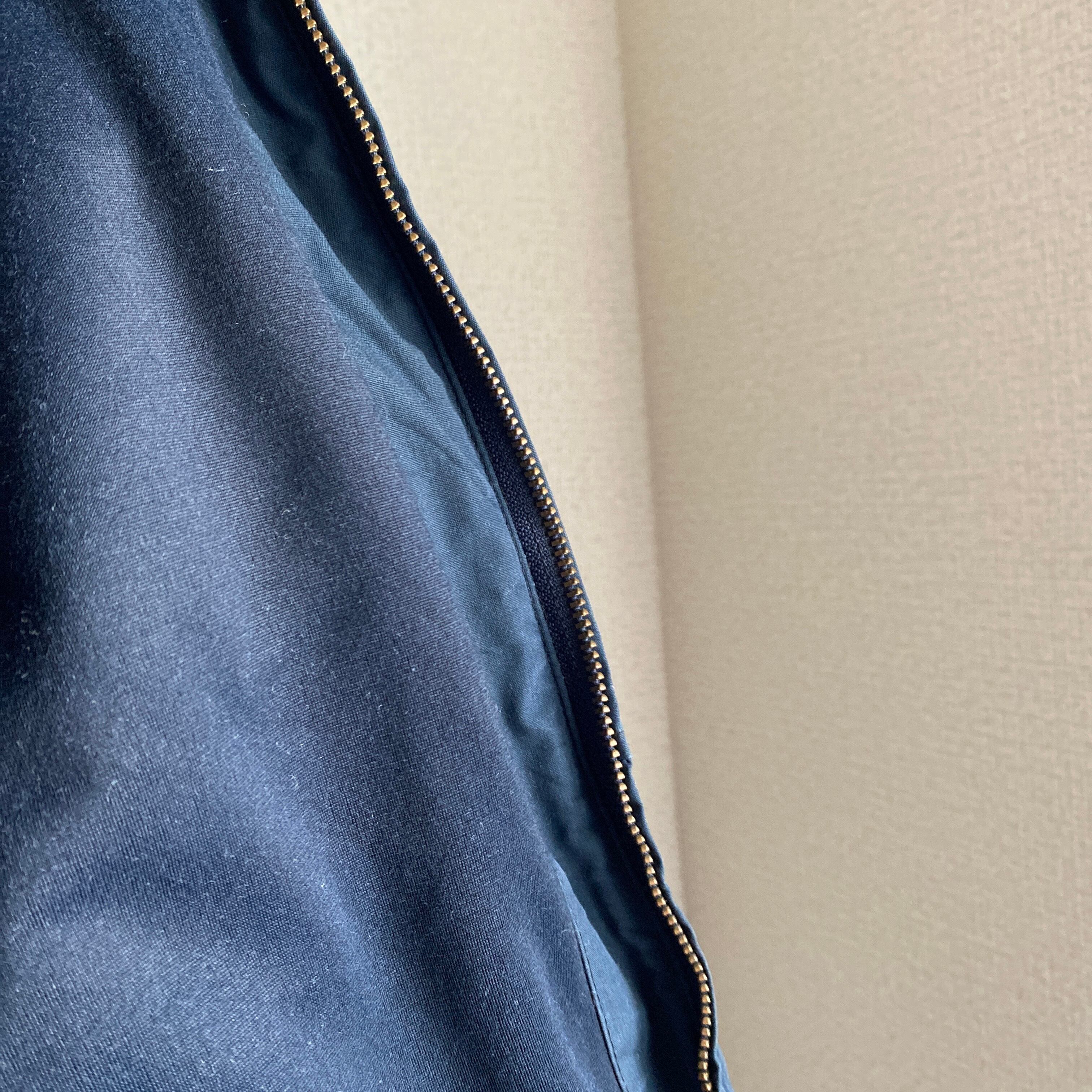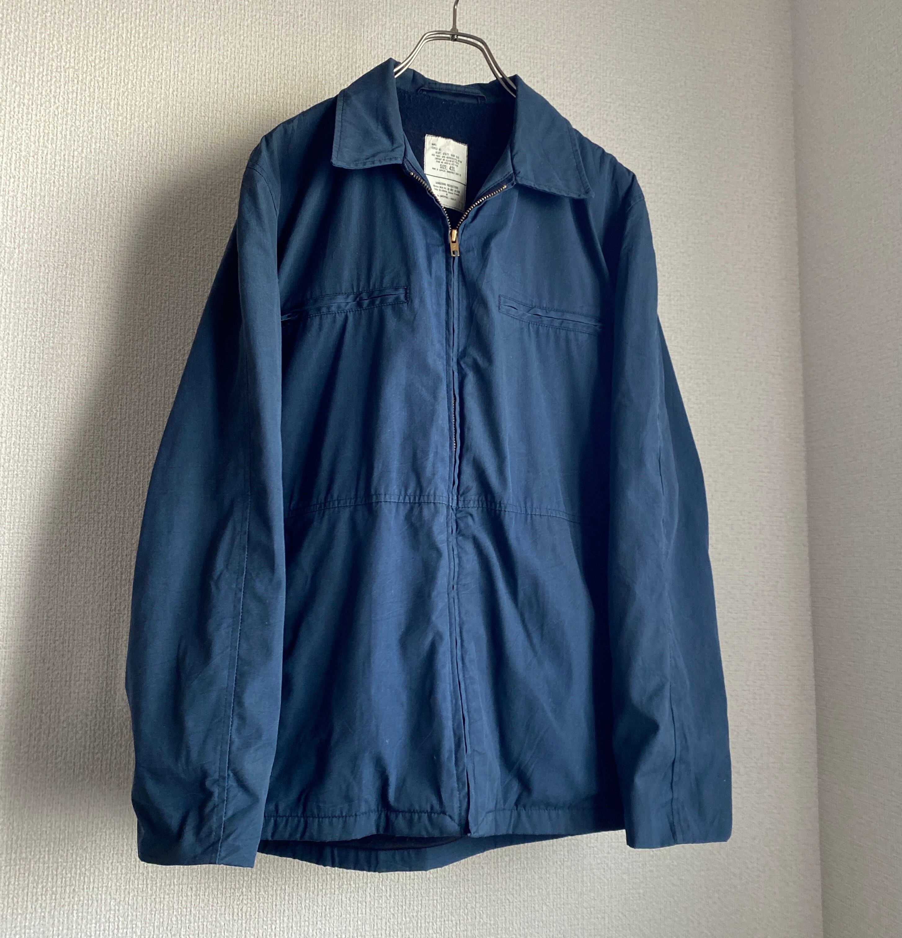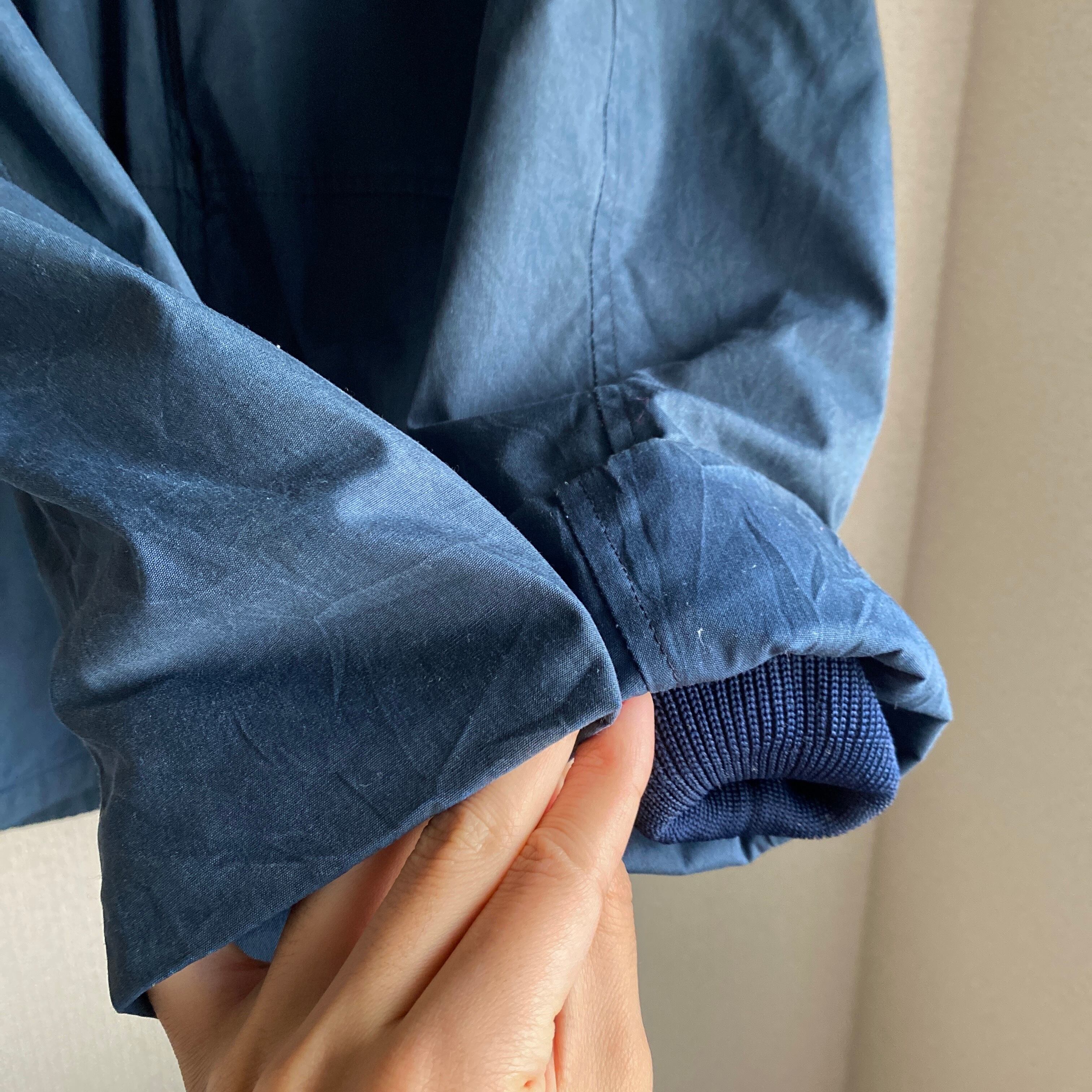 ワークウェアのような無骨なルックス、コットンポリ素材の褪せたネイビーの色目が非常に格好良い一着。
