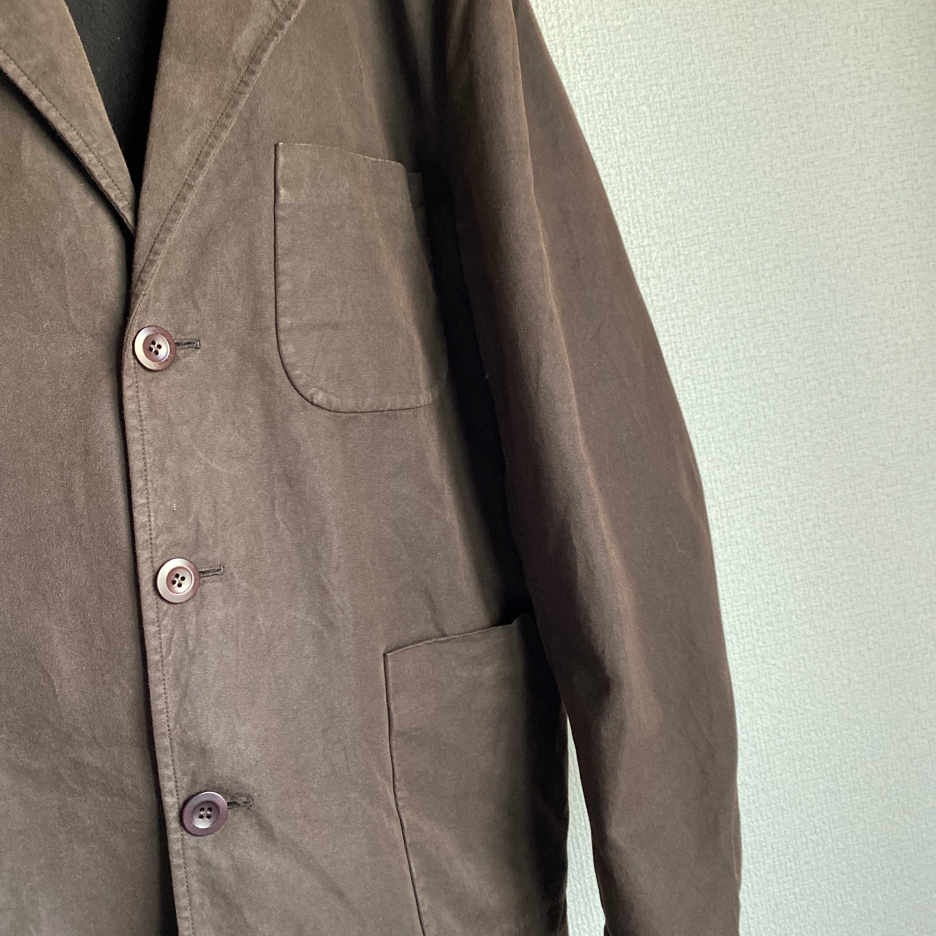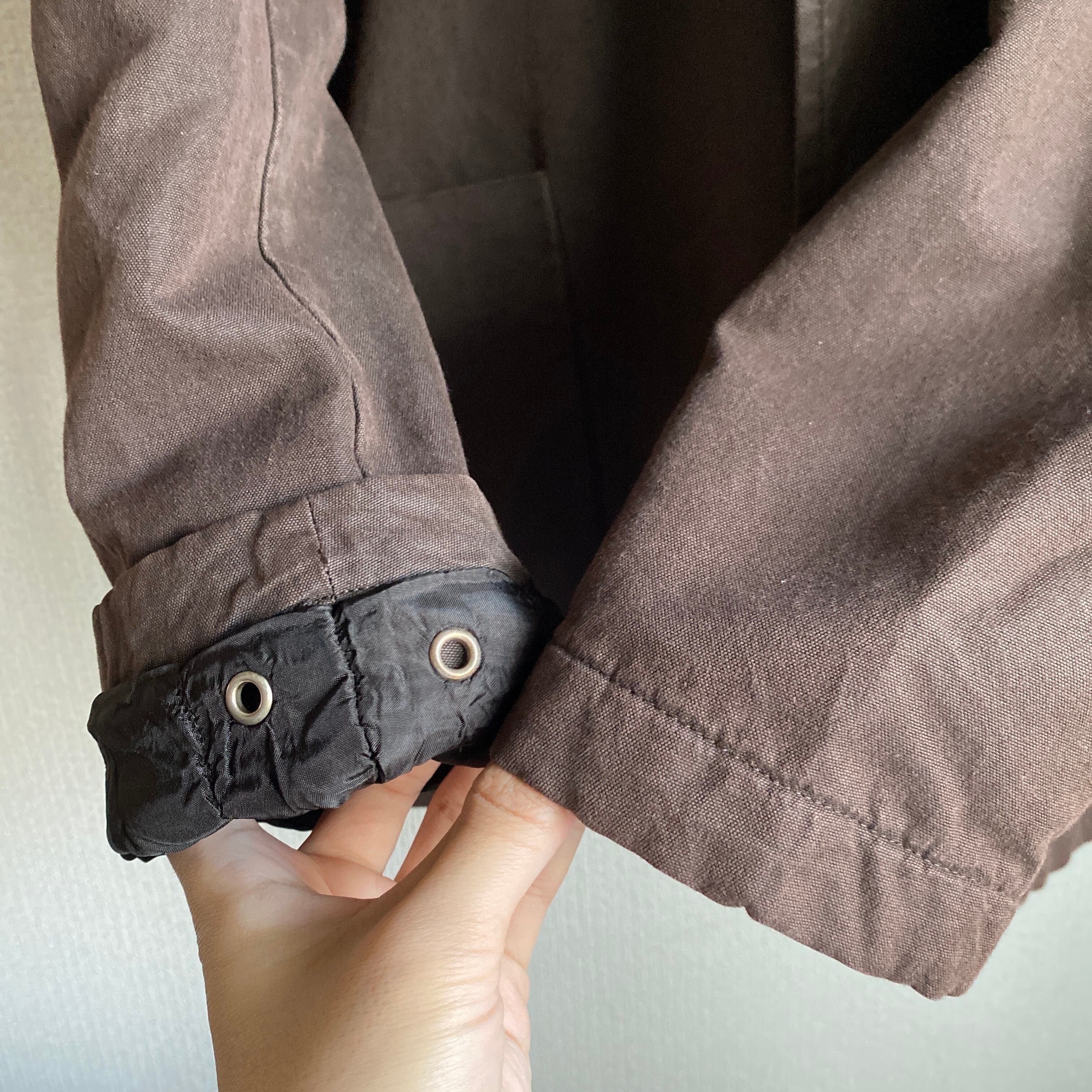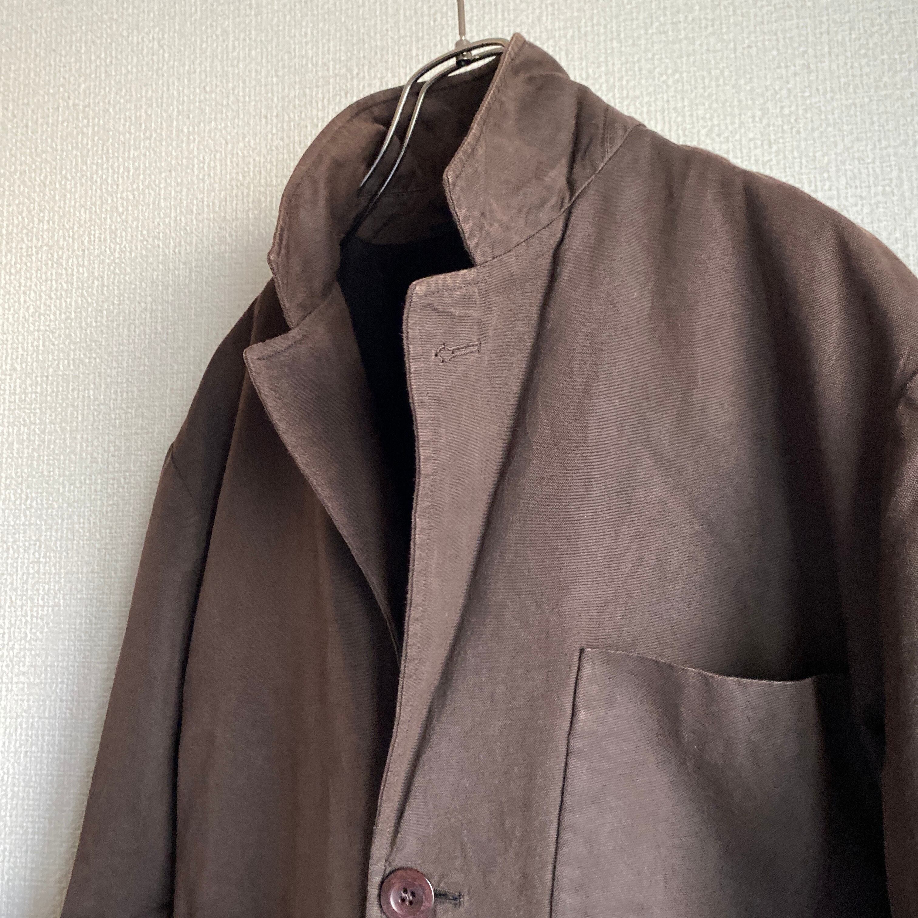 肉厚で程よくハリ感のある平織のコットンナイロン素材に、おそらく泥染め加工が施された雰囲気の良い一着。
